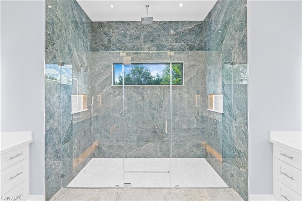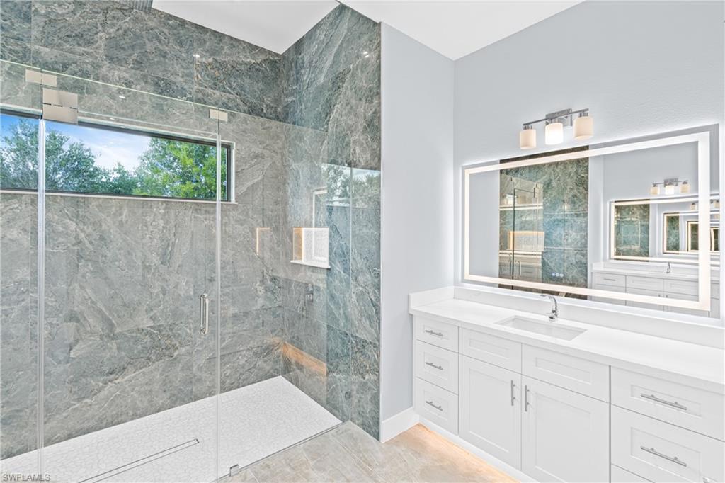 The MAIN RESIDENCE features 3 spacious bedrooms with modern lighting and generous walk-in closets, and 3 luxurious bathrooms — one with access; perfect for a future pool. The primary suite offers a bathroom with dual vanities and a beautifully designed shower. All bathrooms include LED mirrors and high-quality glass doors.