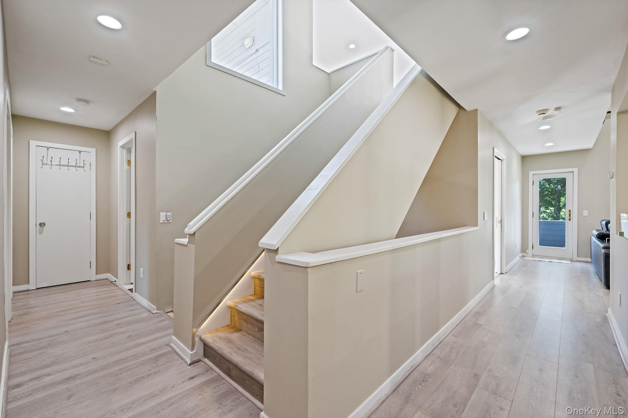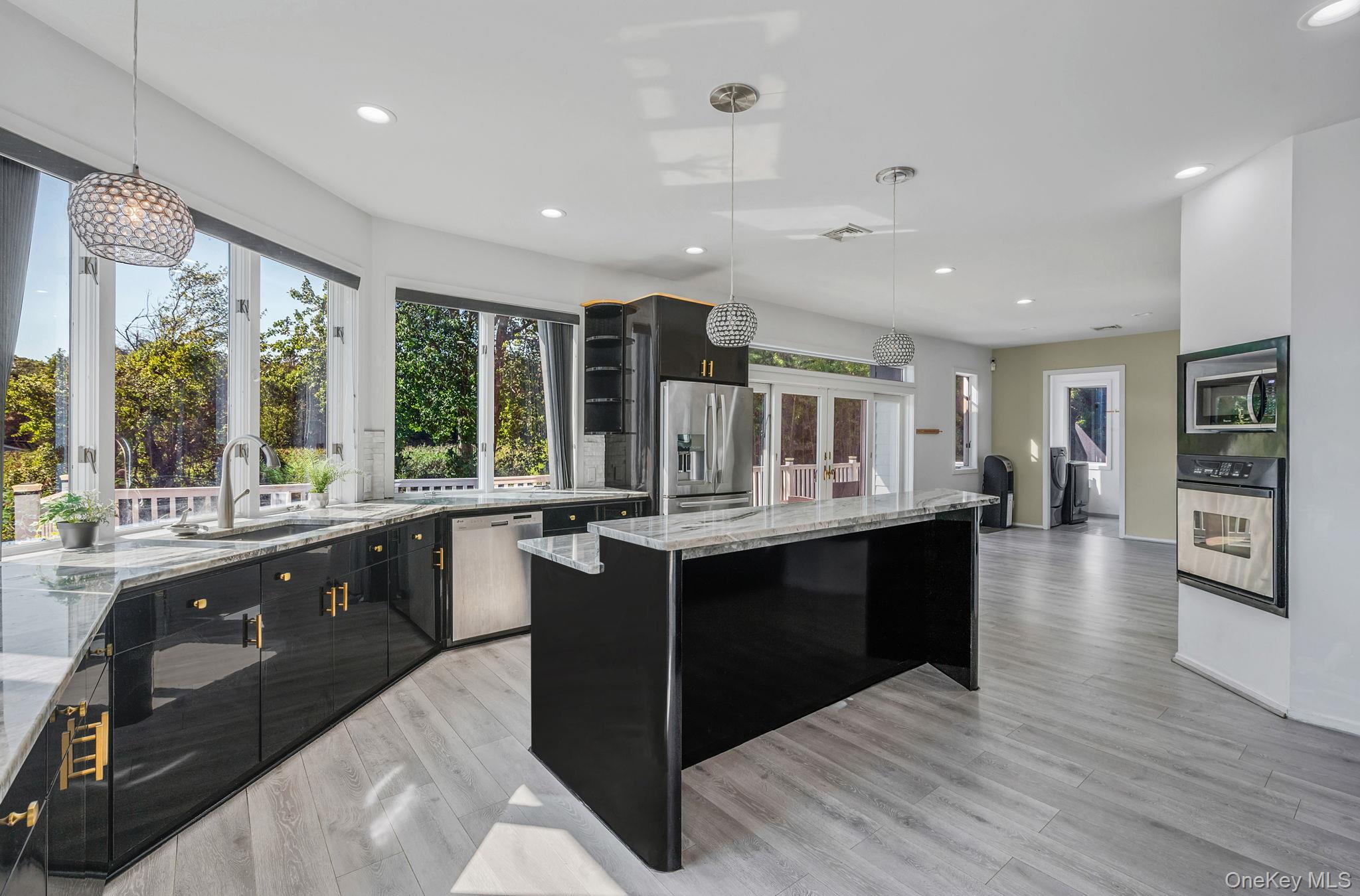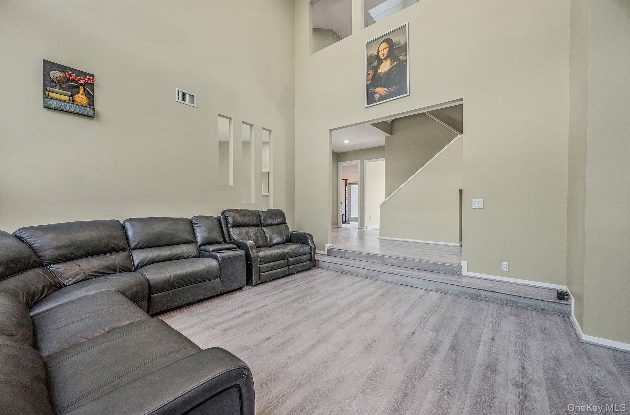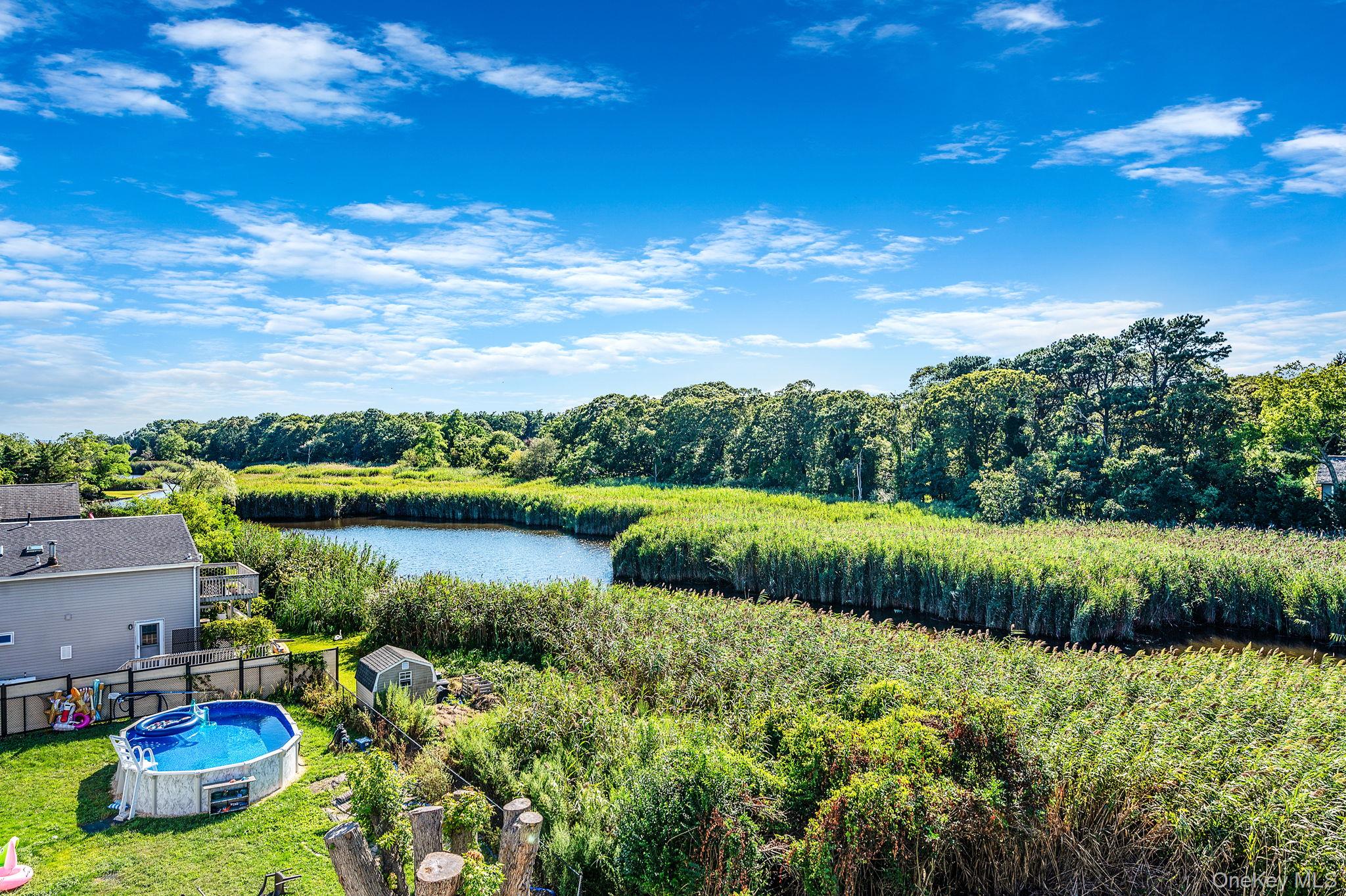 Welcome to Patchogue Shores, a private waterfront community with access to the Great South Bay. Here you can enjoy kayaking right from your own private dock on the creek, or spend time at the residents-only beach—just one of the many perks included with the $1, 200/year HOA. The community also offers a marina for an additional fee. This stunning home spans four levels of open living space, featuring soaring ceilings and five decks—including a rooftop deck with breathtaking water and sunset views. The main floor entry opens to a versatile office or bedroom with an adjacent full bath. From there, step into a dramatic living room with ceilings open to the third floor, a formal dining room, and a spacious kitchen with access to a large deck with panoramic views overlooking the water. The next level offers three bedrooms, a brand-new full bath, and a cozy den or media room with a fireplace. Across the way an Inviting primary suite with a private deck, with sweeping views. On the fourth floor, you'll find An entertainment room, equipt with a top of the line sauna. Access to the rooftop deck for the ultimate sunset experience. The above-ground basement provides a 2–3 car garage, workshop, storage room, and utility space—perfect for all your needs.