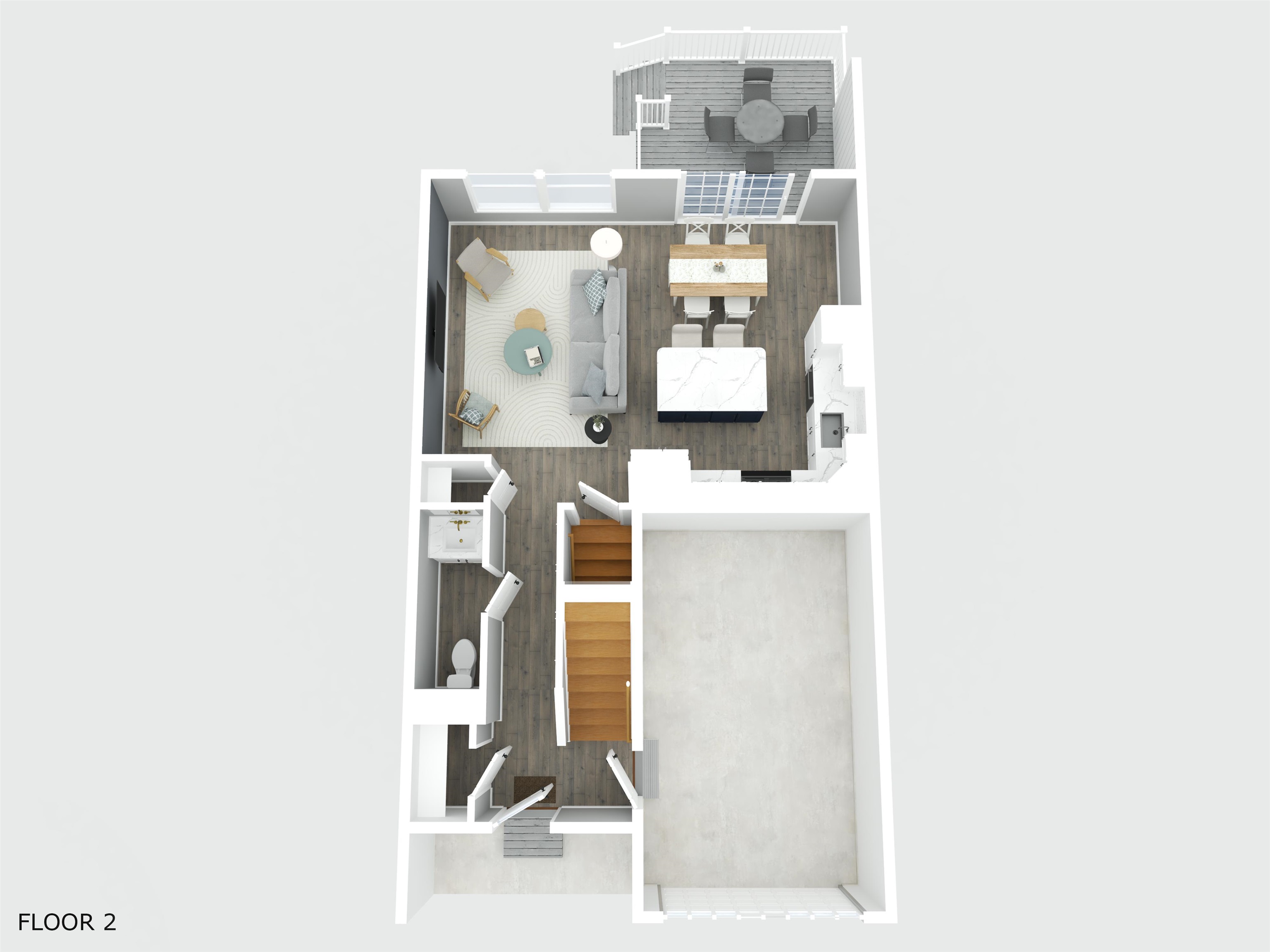 | Living Room | Flooring - Laminate, Deck - Exterior, Open Floorplan, Recessed Lighting, Crown Molding | Main,First |