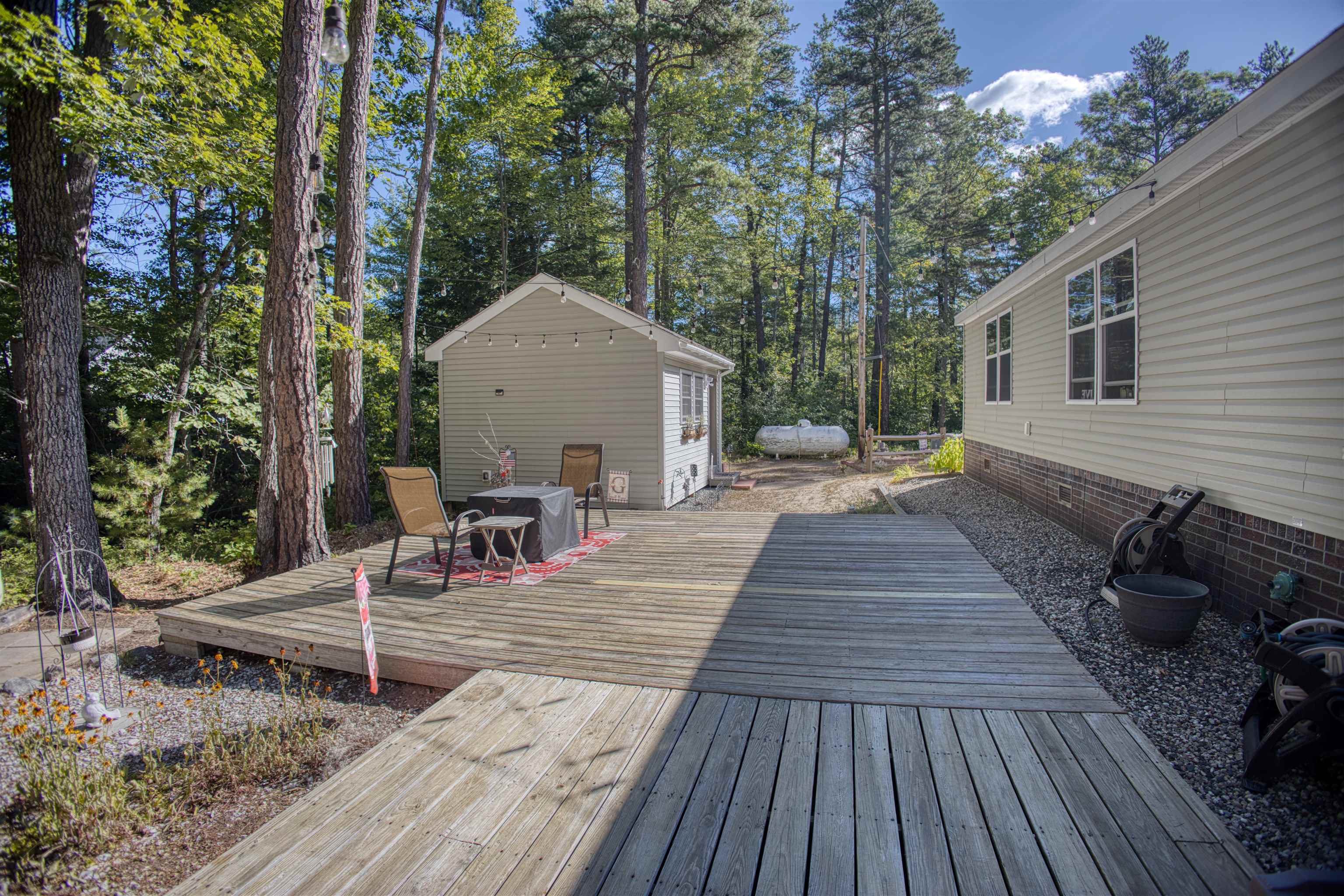 Immaculate, like-new 12 yr old manufactured home set on a private 2. 27-acre lot! Thoughtfully designed and beautifully upgraded, this spacious home features an open-concept kitchen, with center island, dining area and living area with vaulted ceilings that create a bright, airy feel. The large primary suite includes its own private full bath and walk in closet. Central A/C and efficient propane heat provide year-round comfort. Step outside to enjoy the large sunny back deck, perfect for relaxing or entertaining plus a lovely firepit with sitting area. The property also includes a large heated two-car garage and a detached shed that has been transformed into a fully finished office with its own heat and A/C—ideal for remote work, hobbies or workout room. Nicely landscaped and in true turn-key condition, this property offers the perfect blend of comfort, function, and style. Whole house propane generator! All just minutes from the state boat launch on Ossipee Lake—making it a dream spot for year-round living or a getaway retreat. A must-see to fully appreciate all it offers!