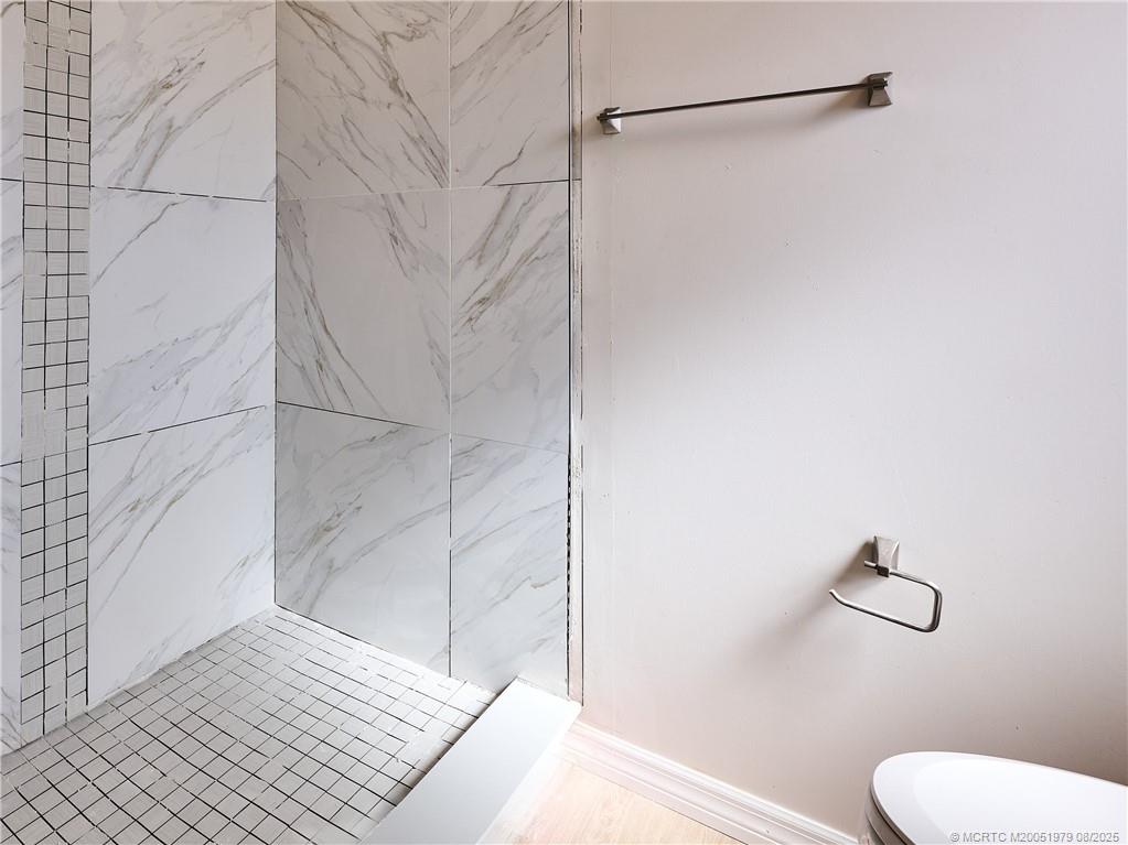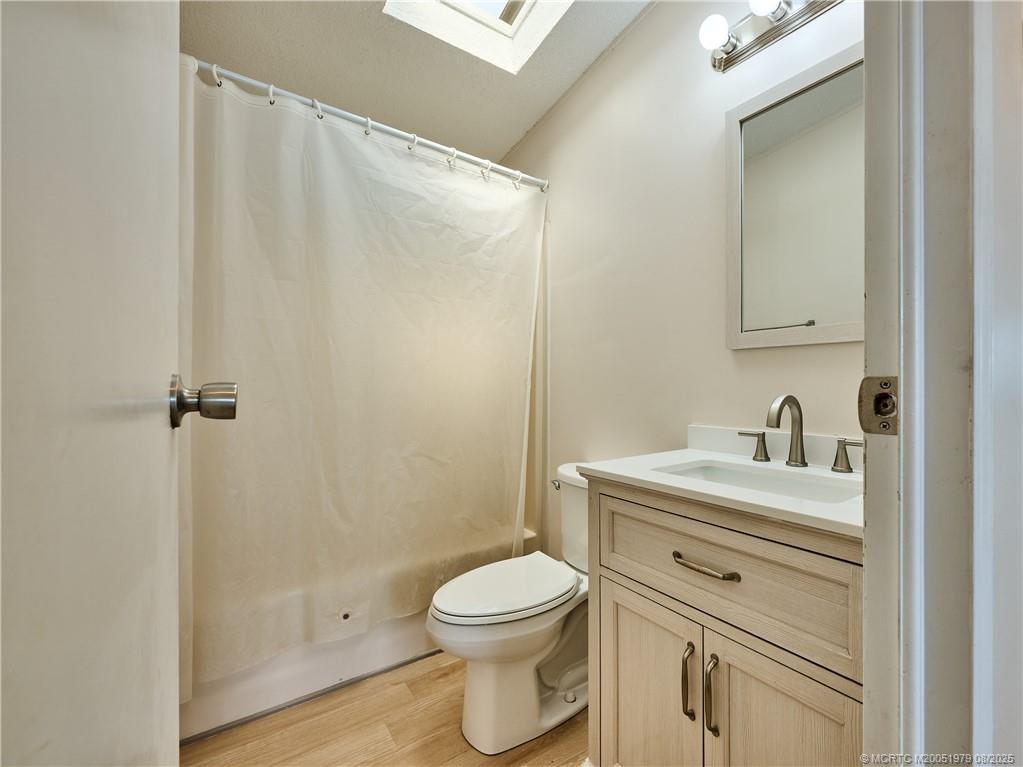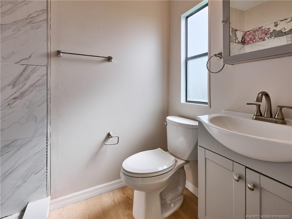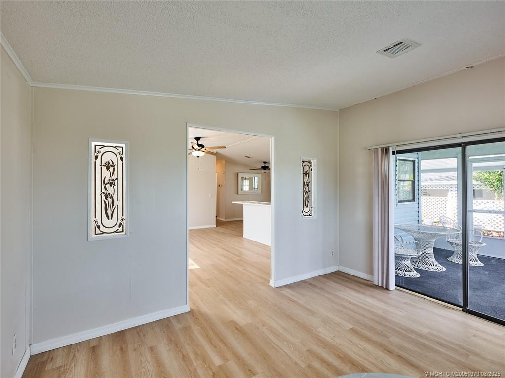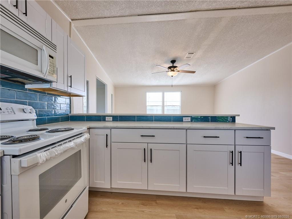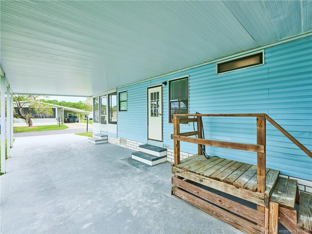 EXTREME MAKEOVER!! Newly renovated 2 Bedrm/2 Bath Manuf Home in Pinelake Gardens & Estates, 55+ Community in South Stuart. WIDE OPEN PLAN - SO LIGHT & BRIGHT. Brand new Kitchen w white Shaker Style Cabinets, New Appliances, new Counters, Blue subway tile backsplash, new Lighting, new extra-large deep sink w upscale faucet w spray. New Luxury Vinyl Plank Flooring throughout the home. Freshly painted in neutral colors, new "knock down" finish on ceilings & new baseboards. Right off the LR is another area which could be an office or den w slider out to the charming front screened lanai. The Master Bedrm is enormous w ensuite full bath w New stylish tile step in shower, new vanity & chair-height toilet. The 2nd Bedrm is also a good size w a new 2nd full bath on the hall. At the end of the long carport is a utility shed w washer/dryer. 2 Community Clubhouses w heated pools/spas, shuffleboard, pickleball & scores of activities. $926/Mo Lot Rent. 2 large dogs allowed. Mins to Ocean Beaches.