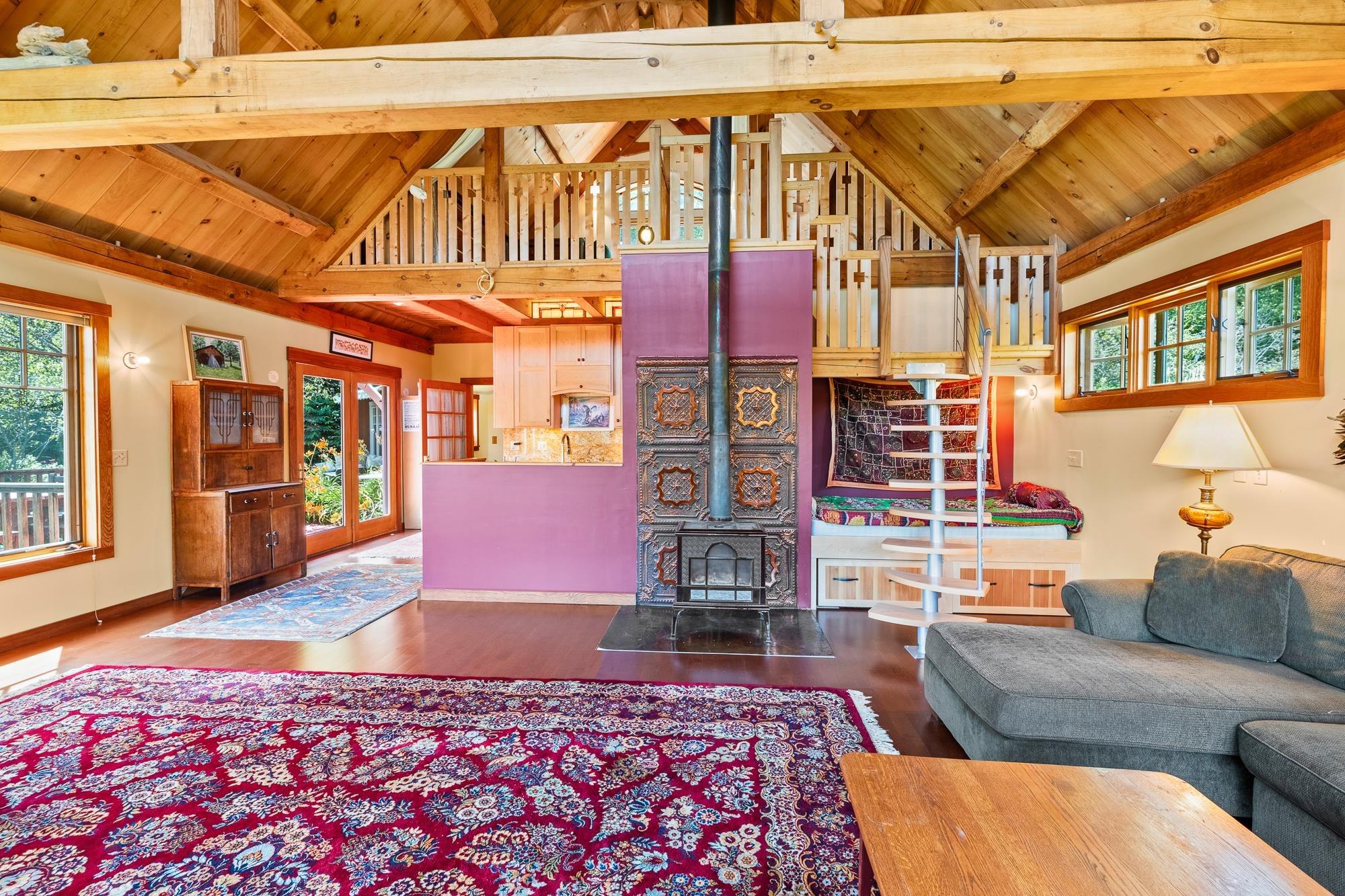 Centrally located among Chelsea, Corinth & Vershire, this home is a haven for nature lovers, artists & creatives alike. With 5 of the 10+ acres in Corinth, tucked away in privacy, the property is decorated with hand-built stone fountains & gardens. Step into the stone-tiled mudroom complete with ample storage & you’ll find yourself in a home where thoughtful design meets timeless beauty. Every room invites nature with garden views - enjoyable all four seasons. To your left: a timber framed open-concept layout & expansive windows create a cozy & spacious feel. The kitchen is a chef’s delight with custom cabinetry, concealed appliances (dishwasher), stone countertops / matching backsplash & a walk-in pantry. A wood stove warms the living area where a reading nook and loft above offer spaces to retreat. Downstairs there’s 2 bedrooms, a full bath & an office. The primary bedroom opens directly to the gardens. To the right: an additional living space with a kitchen, living area, 4 bedrooms & a full bathroom. With a separate entry already in place, this is ideal for multigenerational living OR rental income. Outside, the property unfolds into a sanctuary of rest and renewal. Explore the vegetable gardens & private gardens or simply relax in one of the outdoor nooks. Beyond the home is a building, studio, or upon completion- another home. With its handcrafted touches & artistic soul, this home is more than a residence - it’s a lifestyle.