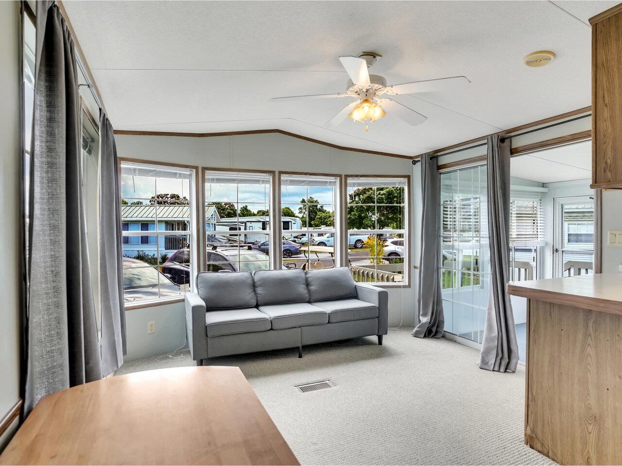 On a generous lot in Apple Island Resort, this furnished 2-bedroom, 1-bathroom seasonal cottage offers an inviting retreat with thoughtful updates inside and out. Step inside to find thoughtful updates, including a new glass-enclosed shower by installed by Bath Fitter in 2024, new blinds in the airy sunroom, and an upgraded front deck perfect for relaxing outdoors. The central AC/heating system, replaced just five years ago, runs beautifully and ensures comfort throughout the season. The sunroom itself is a standout, offering generous space and a side-by-side washer and dryer. The open flow between the living, dining, and kitchen areas enhances the bright and inviting atmosphere, making the cottage feel both spacious and comfortable. Out back, a dedicated storage shed provides plenty of room for all your seasonal gear. Lush perennial plantings frame the front, while garden beds along the sides provide further opportunities for flowers, fruits, or vegetables. Beyond the cottage, Apple Island Resort offers an array of amenities, from a marina with boat slips, a launch, and seasonal pontoon rentals, to a challenging 9-hole par-3 golf course. This cottage happens to be just a few cottages down from the golf club and course making it a desirable location at the resort! Spend summer days by the outdoor pool and hot tub, stop by the general store for essentials, or explore the resort with ease thanks to convenient golf cart rentals. The annual lease amount for 2026 is $9, 047.
