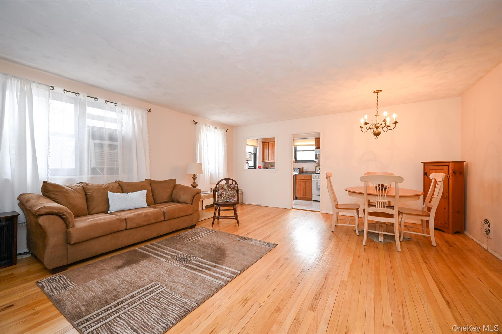 Welcome to this sun-filled two-bedroom, one-bathroom co-op in the highly sought-after Clearview Gardens community. This second-floor unit is one of only six with rare triple exposure on the golf course, flooding the home with natural light throughout the day. Featuring gleaming hardwood floors, an updated kitchen and bathroom along with the convenience of an in-unit washer and dryer, this home combines style and functionality. Enjoy spacious bedrooms, great closet space, and access to a private attic for additional storage. Clearview Gardens offers beautifully maintained grounds, a peaceful residential setting, and proximity to shopping, dining, schools, and transportation — making it an ideal place to call home!