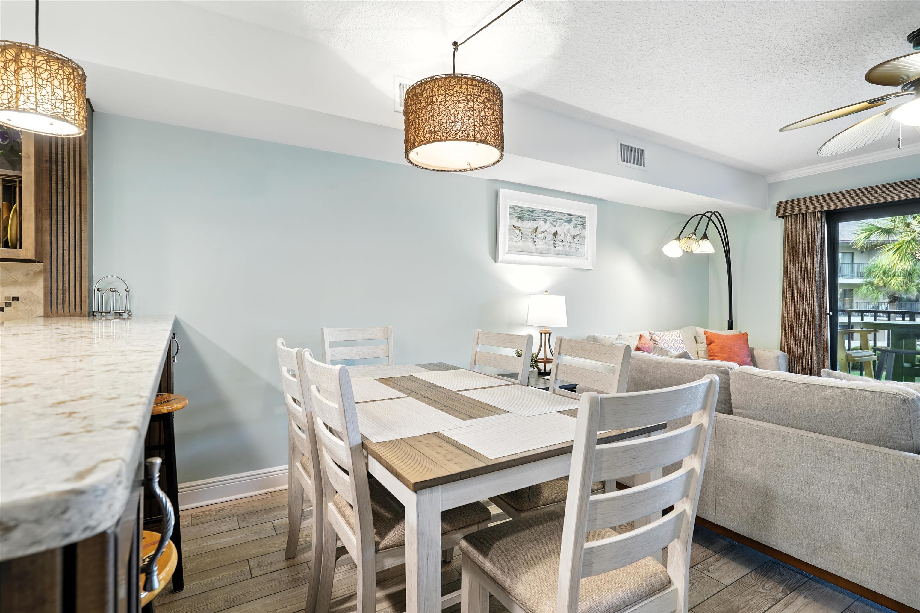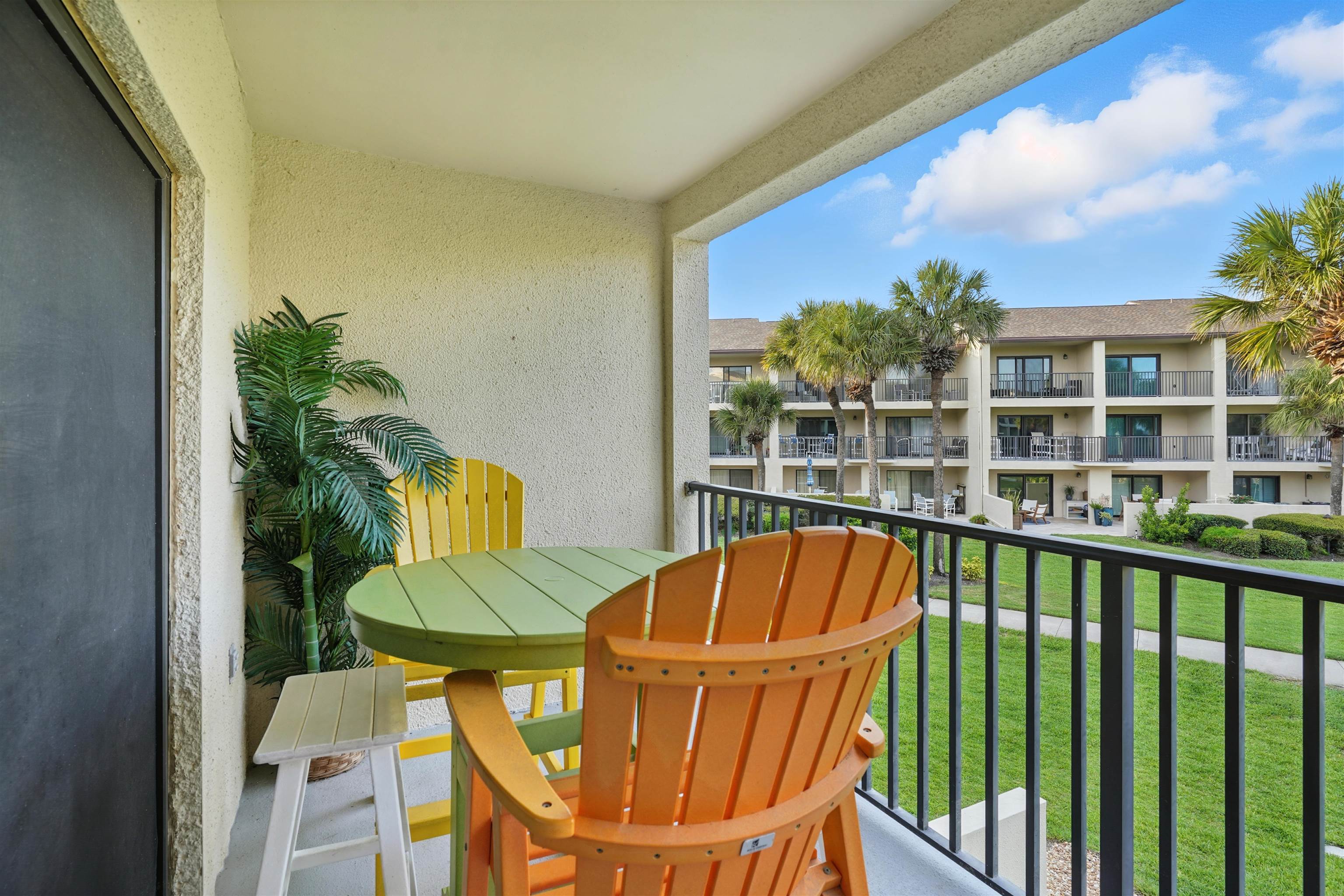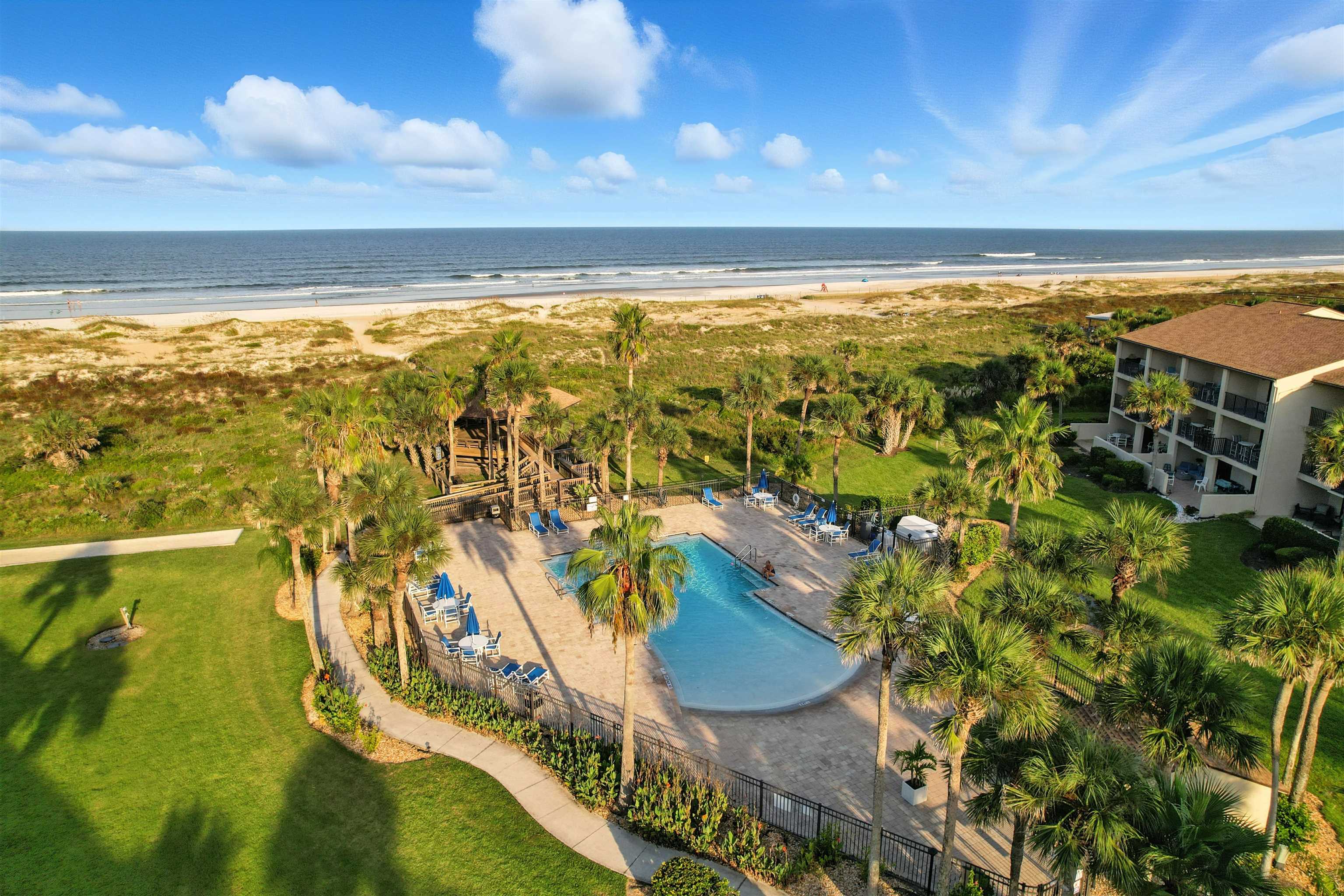 Welcome to ISLAND LIFE on Anastasia Island in your fully renovated, turnkey beachside oasis in Ocean Villas—one of St. Augustine Beach’s most sought-after oceanfront communities! This rare 2-story unit offers ocean views from two balconies, added square footage, and abundant natural light. Enjoy private beach access to Florida’s best beaches. Gated entry, elevator, two pools (one heated, one zero-entry beachside), and lush tropical grounds. Features include a bright modern kitchen, updated baths, new floors, washer/dryer, newer AC, hot water heater, and 2023 glass sliders. Spacious balconies with high-end furniture are perfect for sunrise coffee or sunset drinks. Parking is just steps away with nearby handicap access. Sold fully furnished with a very strong rental history and bookings into 2026. Minutes to historic downtown, shopping, and dining. Ocean Villas offers the perfect blend of coastal comfort and investment opportunity. This is the definition of Island Life!