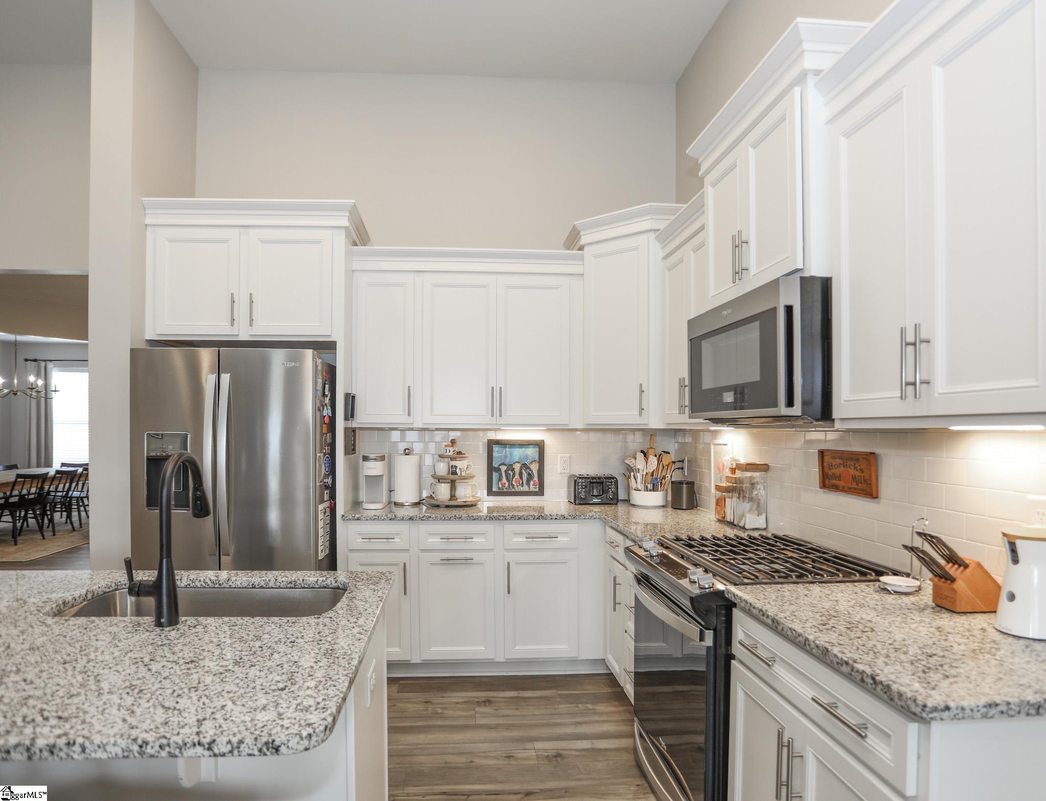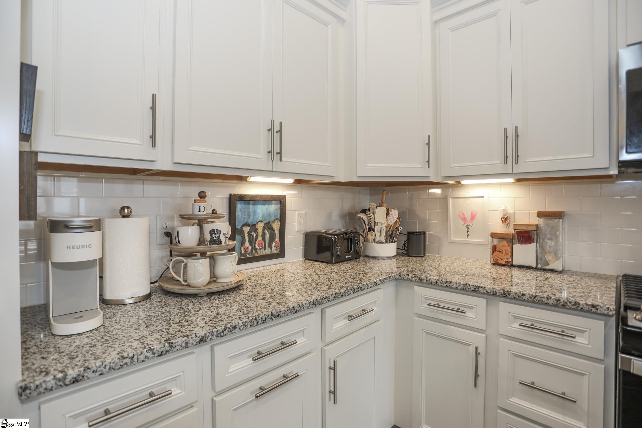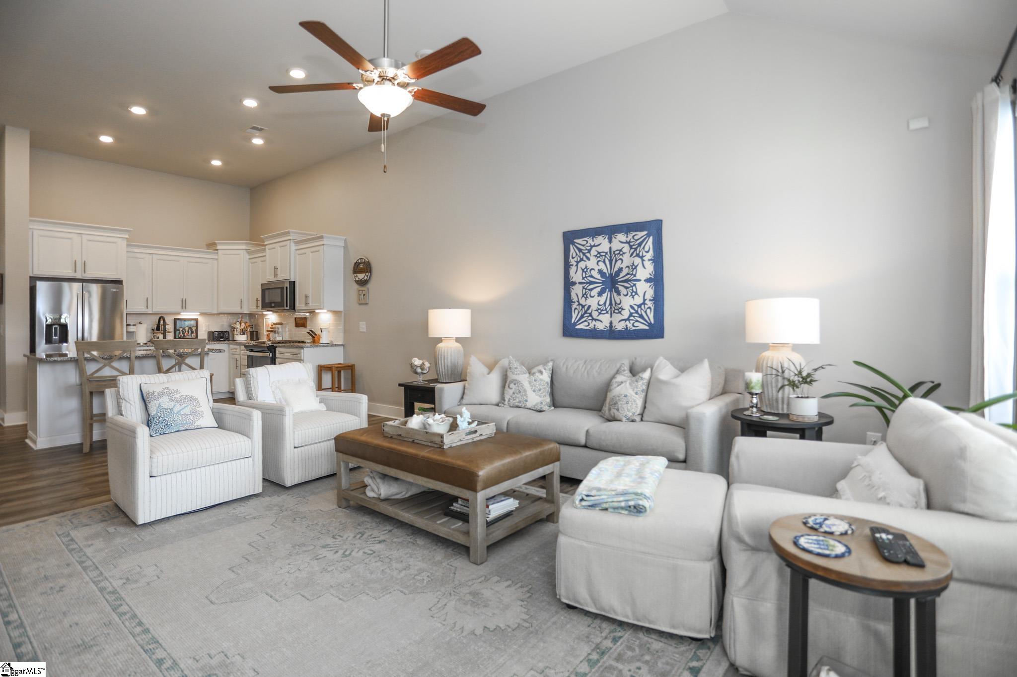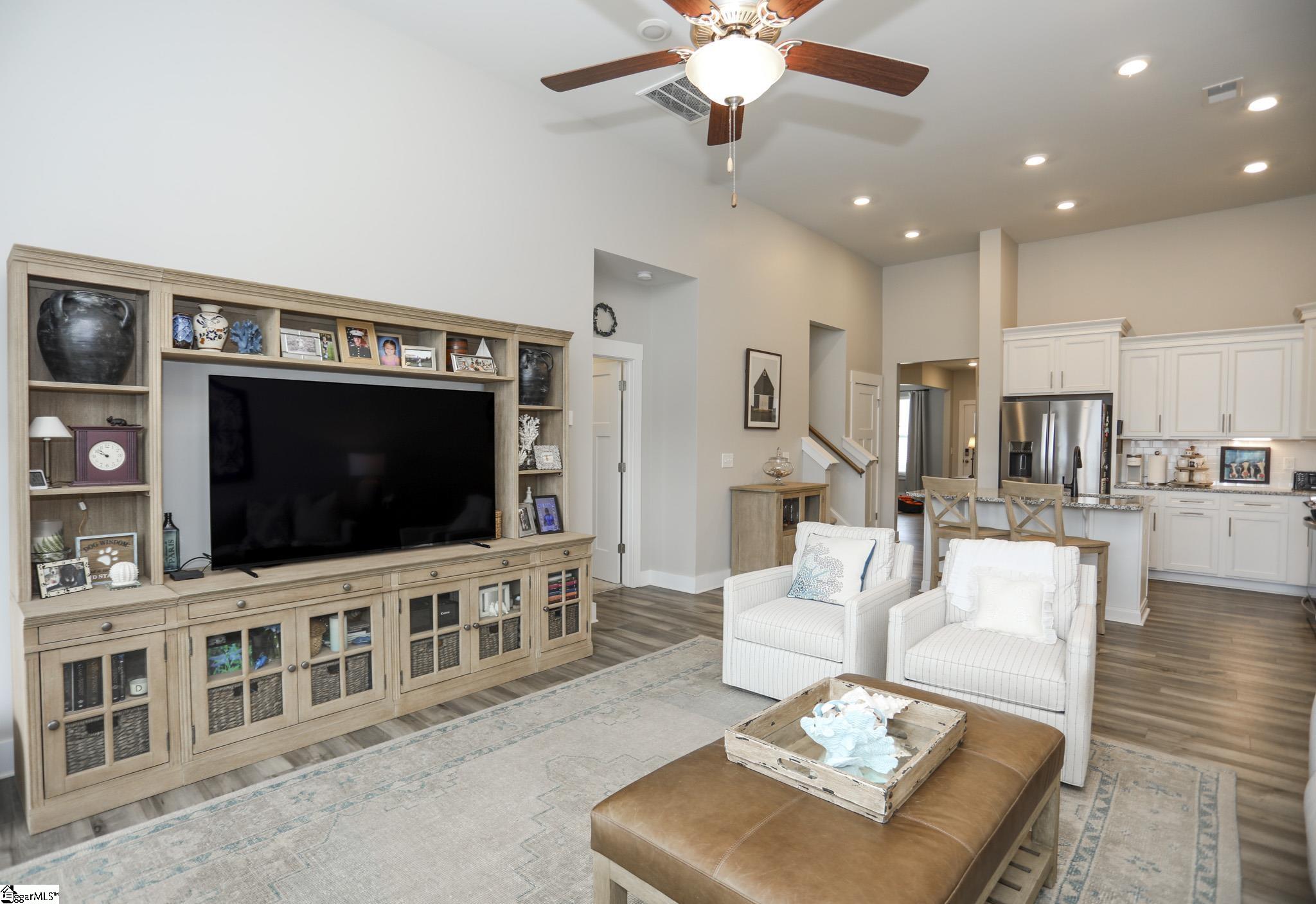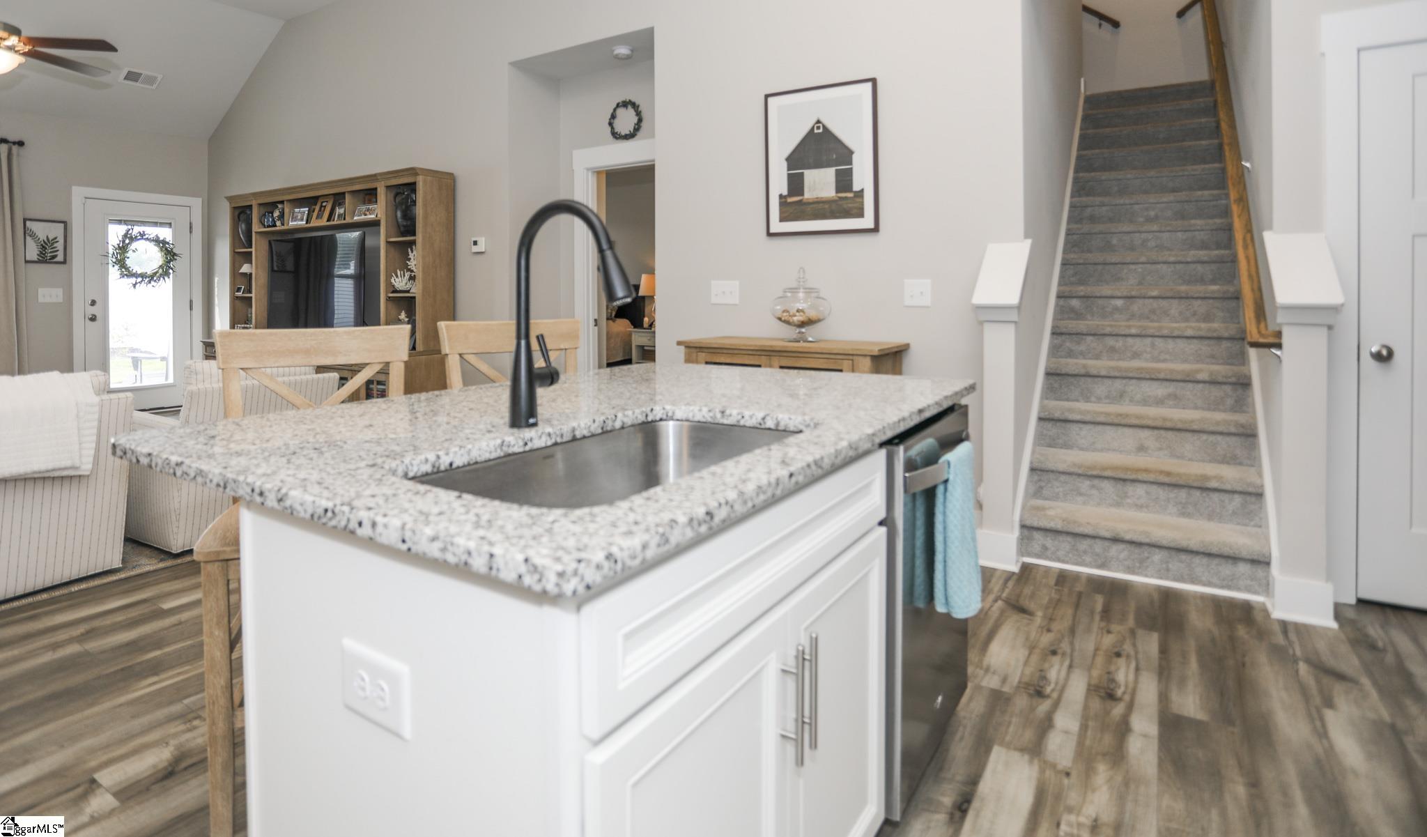 Charming Craftsman-Style Townhome in Boiling Springs Interior Features This homeowner fell in love with the Craftsman-style details found throughout the home, both inside and out. The care taken is apparent the moment you arrive. Garden beds are lined with beautiful river rocks and trimmed bushes, highlighted by a striking red Japanese maple. Despite being an inner unit, the home is filled with natural light that brightens every room. Neutral luxury vinyl flooring extends throughout the main living areas. Upon entry, you’ll find a spacious 14x11 dining room, which would also make a great office. Powder and laundry rooms are tucked away down the hall for privacy. Step into the kitchen. It features white cabinets with elongated slim handles and under-cabinet lighting. The tiled backsplash complements stainless steel appliances, including a gas stove. There is ample counter space and an island with granite countertops. A double-door pantry offers generous storage, and recessed lighting is installed throughout. The 12-foot cathedral ceiling creates a welcoming atmosphere in the central living area, where three large windows frame a gateway to the backyard oasis. The open floor plan allows for flexible arrangements to suit your needs. The 15x13 primary bedroom is set apart from the family room for added privacy. It features recessed lighting and two large windows. The ensuite bath includes a double sink vanity with high faucets and white cabinetry accented by slim handles. The walk-in shower showcases large square tiles, a double niche, and smaller tile flooring, with ample space for a seating bench. Upstairs, there are two bedrooms, each approximately 13x12. One features a large walk-in closet, and both have double windows and recessed lighting with separate switches for ceiling fans. A spacious 16x10 bonus room offers a Cape Cod window niche and access to attic storage. Additionally, a 10x7 storage room with a closet provides extra storage space. Recent Upgrades Recent improvements include a whole-home surge protector installed by a local electrical company in 2023, fresh paint throughout the downstairs in 2023, a new dining room light purchased in 2023, blinds installed in 2022, and a high-end kitchen faucet replaced in 2024. Additional updates include dimmers, a motion light in the powder room, new garage glides, and rear gutter covers for added protection. The home is maintained regularly to ensure everything is in working order. Outdoor Spaces A local landscaper created the stunning outdoor spaces, complete with stone pavers, rock-filled beds, and neatly trimmed shrubs. The backyard is a private retreat featuring a covered patio, custom paver patio, and a six-foot white vinyl privacy fence with gates. Location Highlights Boiling Springs is a thriving town offering convenient access to I-26 and I-85. Spartanburg is just 15 minutes away, and Greenville only 40 minutes by car. This townhome is close to all Boiling Springs amenities—doctors, hospitals, Lake Bowen, shopping, restaurants, a newer Publix and Target, as well as parks featuring pickleball courts, walking areas, playgrounds, picnic tables, Frisbee golf, and District 2 schools located just minutes away.