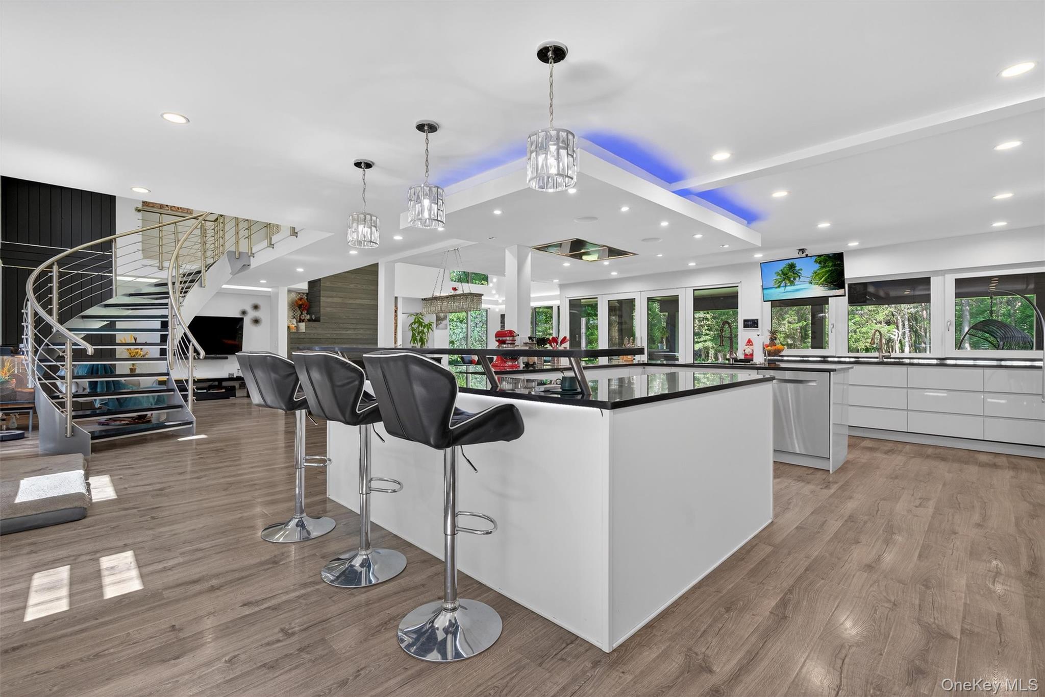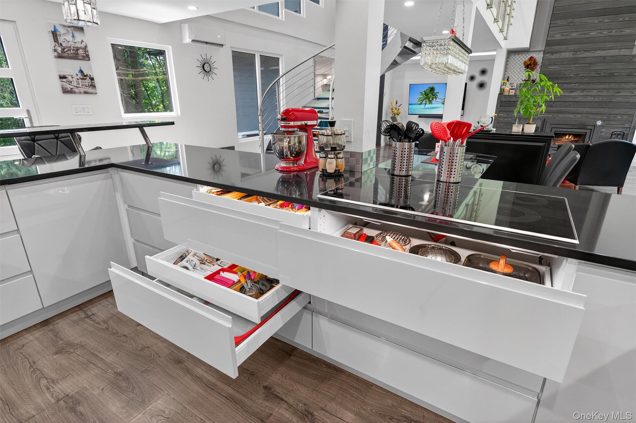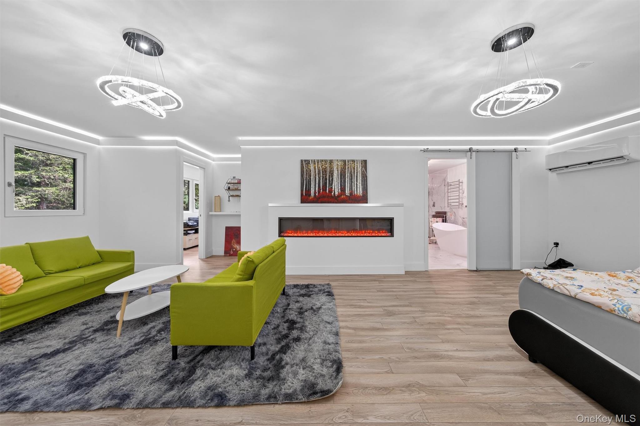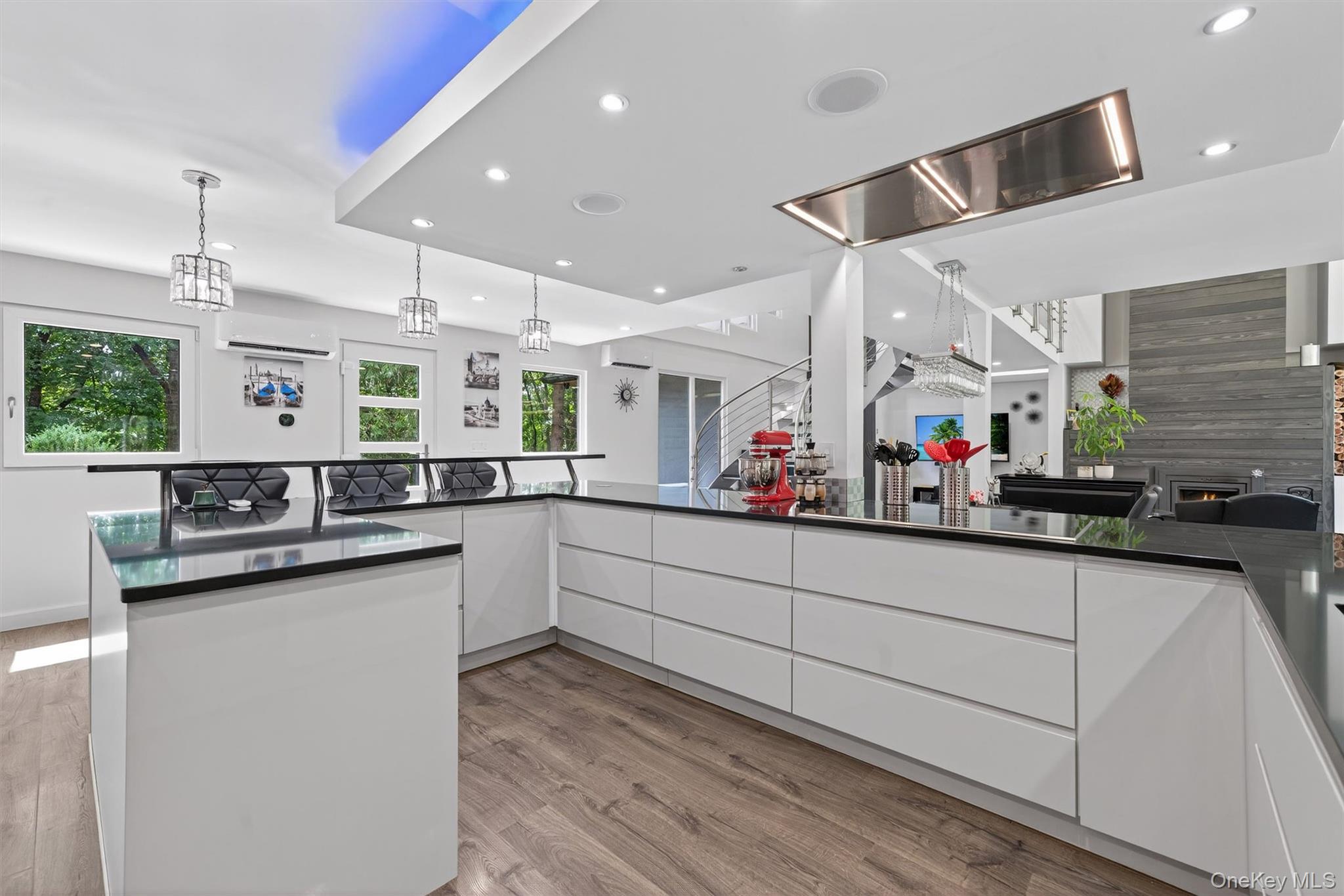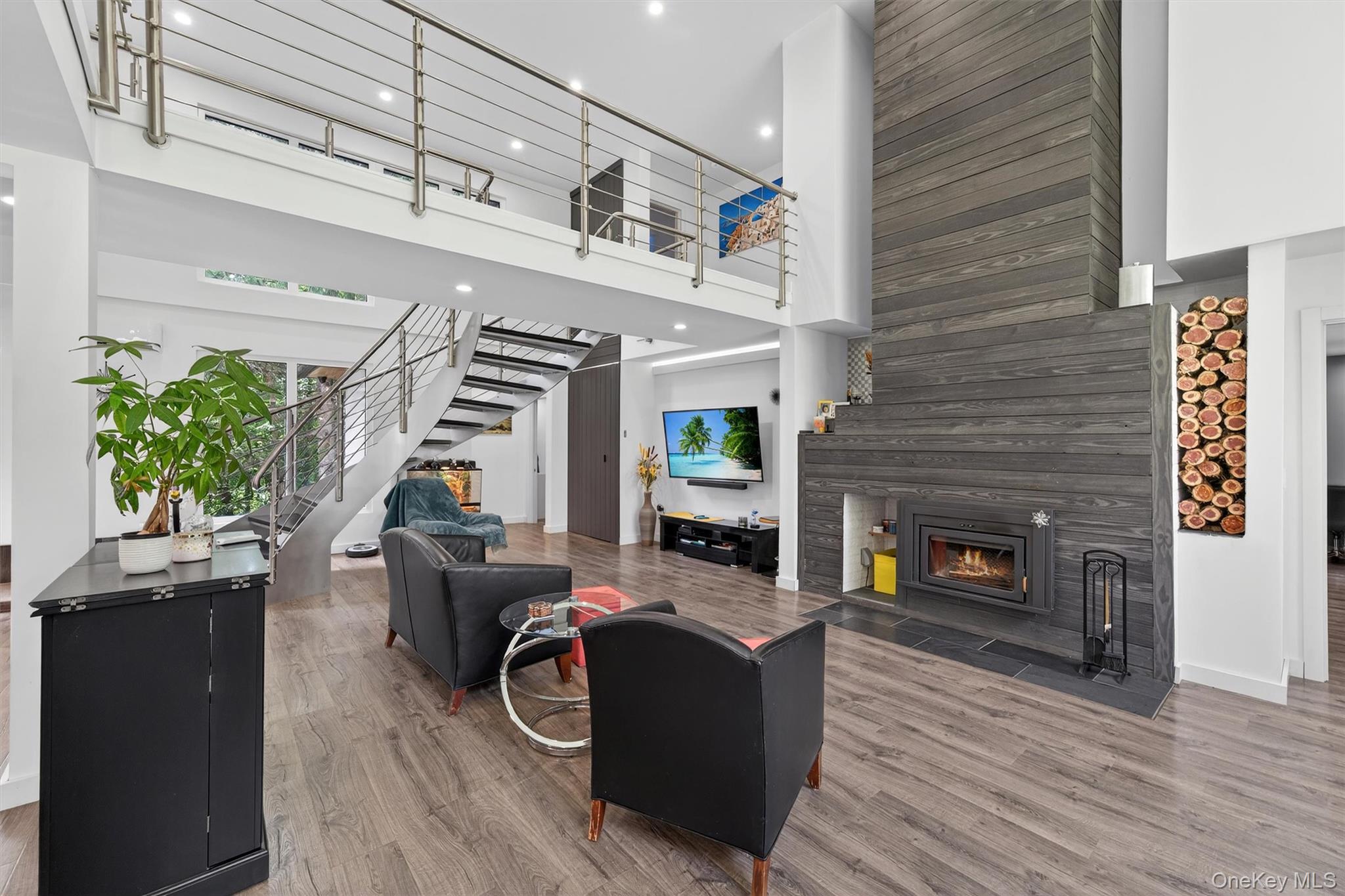 Experience refined contemporary living in this stunning five bedroom, five bathroom estate. Originally a ranch style home it was totally rebuilt from the foundation up by the builder/owner using new construction materials and techniques. With over 4, 740 sq. ft. of thoughtfully designed living space, this home offers the perfect balance of modern sophistication and natural serenity nestled on a private 3. 9-acre wooded lot in the picturesque town of Warwick, NY. Step inside to find a sleek, open layout to entertain your guests from your custom gourmet kitchen with top-of-the-line appliances, an induction cooktop and lighted, soft close drawers. This home was designed for comfort and efficiency with owned solar panels, high-end European triple-pane windows and doors, radiant heated floors and highly efficient mini splits to help with heating and cooling. Control your home with smart technologies such as an intercom to your electronically operated entry gate along with exterior security cameras. You’ll have plenty of room for your vehicles in an oversized two-car garage with an EV charging station and epoxy floors, plus an additional attached one-car garage, also with epoxy floors and easy access to kitchen. Enjoy entertaining guests from your custom gourmet kitchen with top-of-the-line appliances, an induction cooktop, lighted soft close drawers and cabinets or have a BBQ under the covered patio. Afterwards spend a peaceful evening next to the cozy wood burning fireplace or outside by the firepit. The spacious interiors and expansive outdoor surroundings provide a truly exceptional living experience. Ideally located just minutes from the historic Village of Warwick and Village of Florida with their vibrant shops and restaurants. Garnet Medical Health and Crystal Run Healthcare facilities are only 20 minutes away. This property also offers easy access to the area's best attractions such as West Point Military Academy, Woodbury Common Outlets and Legoland. Explore local wineries, breweries, hike the famous Appalachian Trail, skiing, and boating—all within a 20-minute drive. Perfect as a weekend retreat or full-time residence, this extraordinary home is your gateway to the very best of Hudson Valley living.