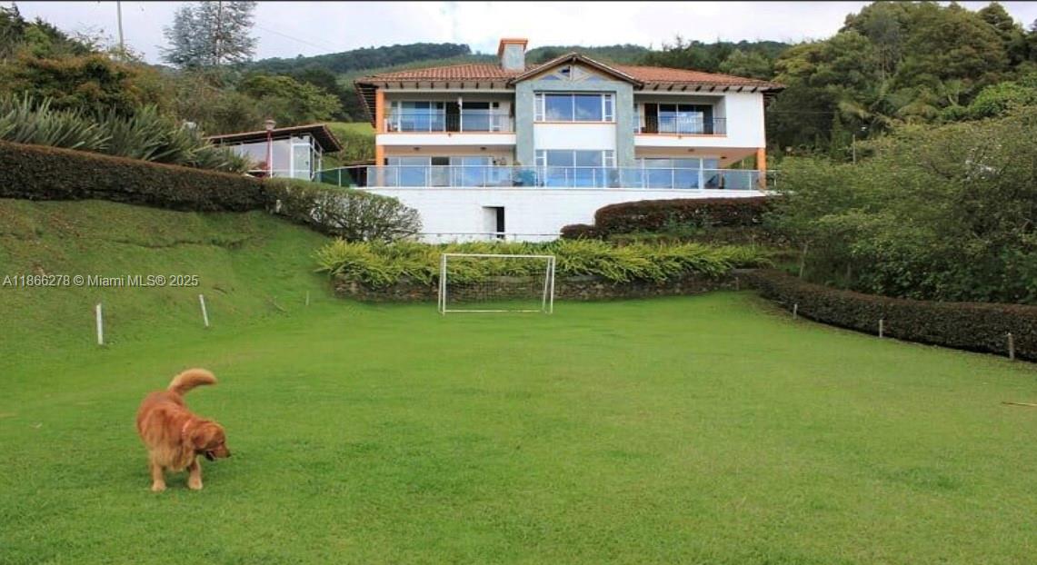 This stunning villa in Medellín- Colombia, combines luxury, nature, and comfort in one place. Located in a peaceful setting and surrounded by green landscapes, this property is ideal for those seeking privacy and exclusivity without sacrificing proximity to the vibrant city of Medellín. The villa features contemporary architecture that blends harmoniously with its natural surroundings. Its façade features natural stone details and large windows that allow natural light to flood in, creating spacious and bright spaces.