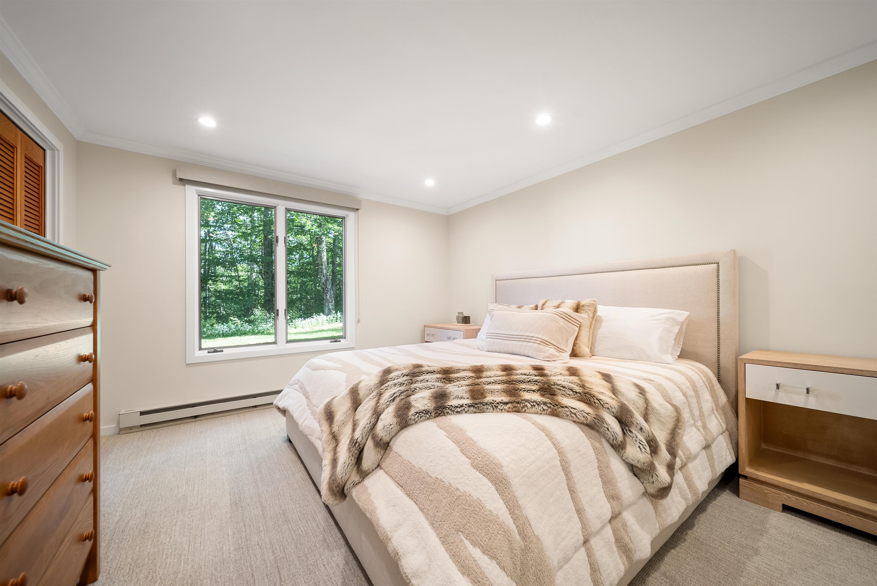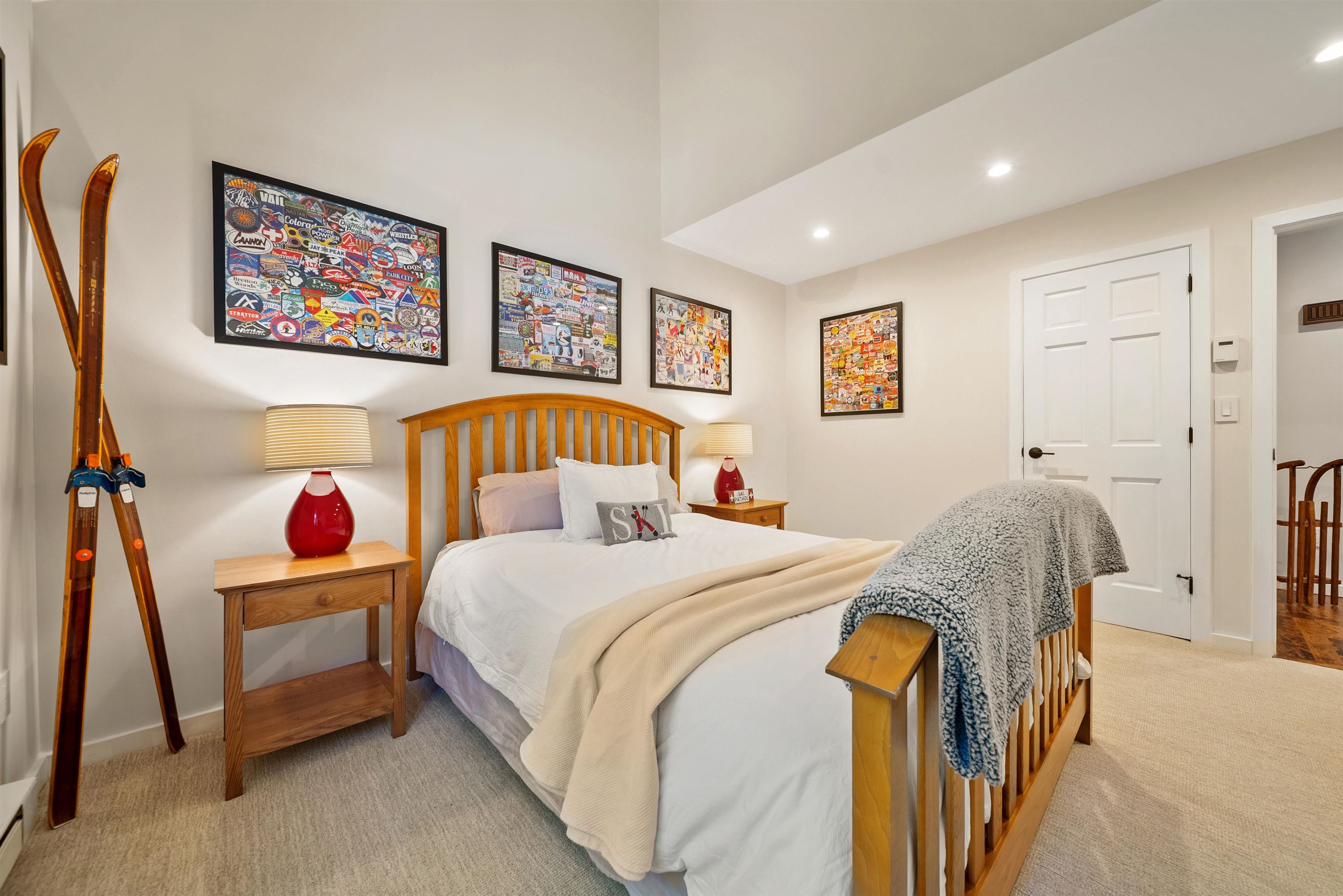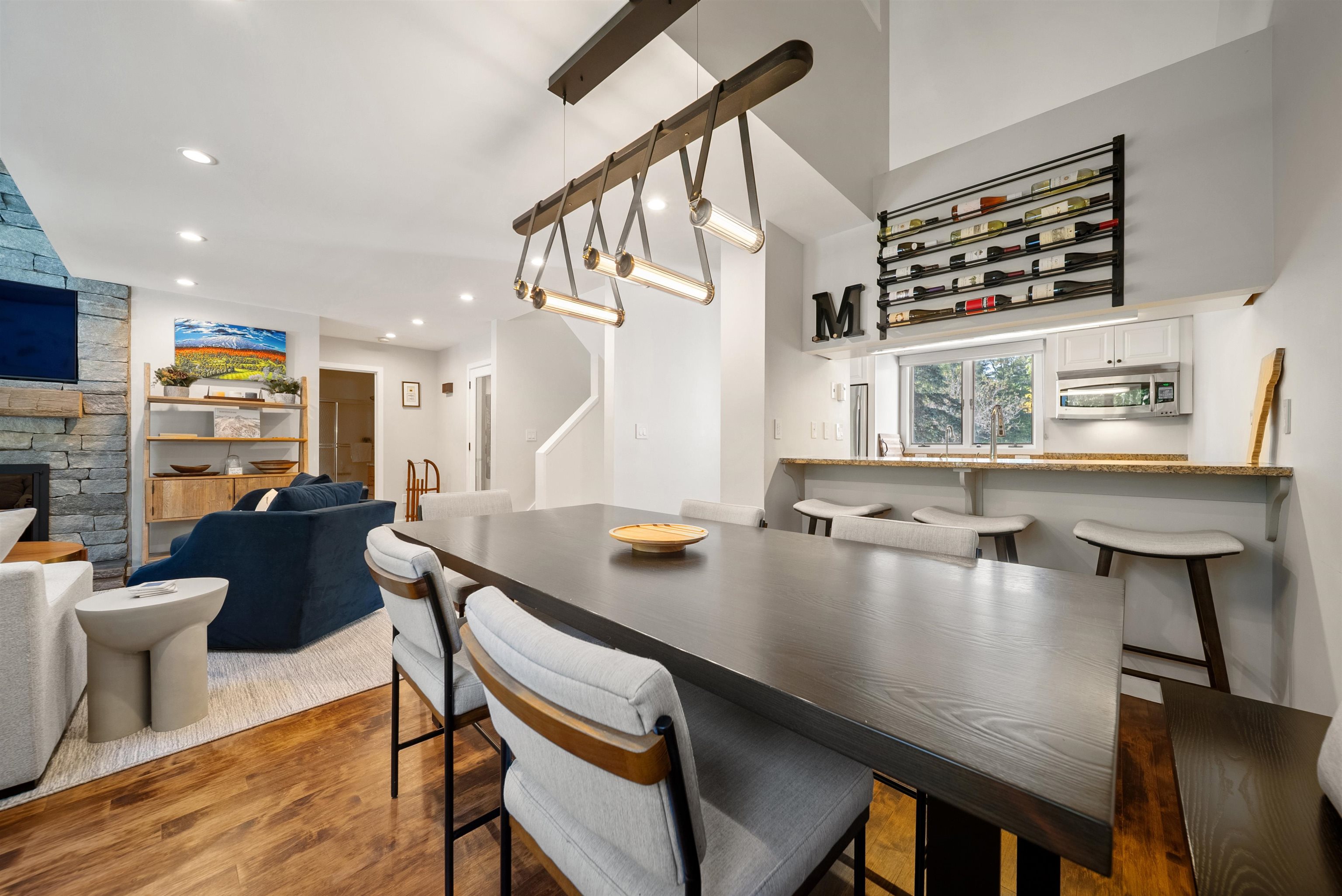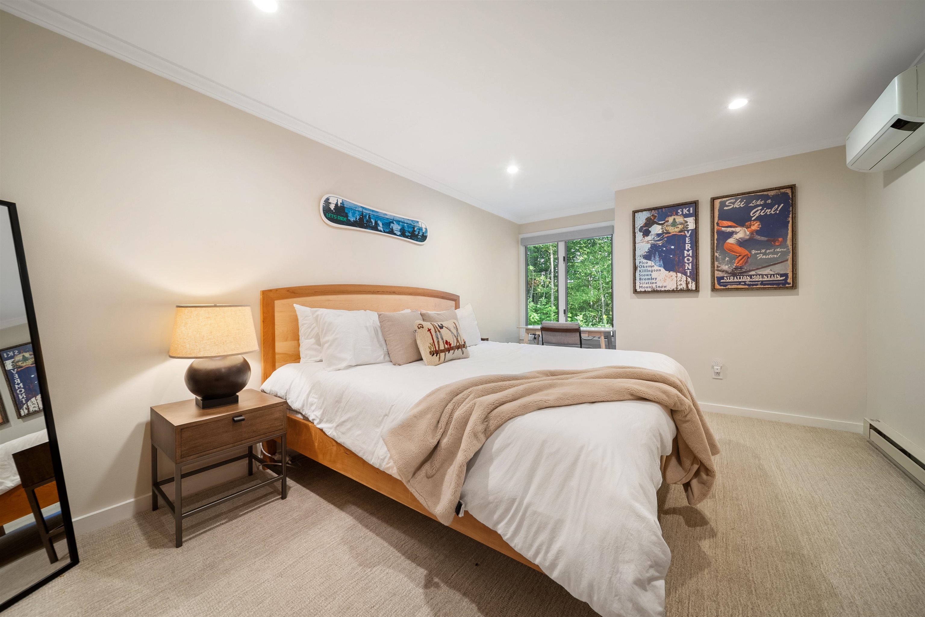 Rare 5BR/4BA Stratton Townhome | Ski-Back Access | Designer Furnished | Spacious, fully renovated 5-bedroom, 4-bath townhome at Stratton with ski-back access. Professionally designed and furnished by ACK Design, this move-in-ready home blends mountain charm with modern finishes. The main level features hardwood floors, a stunning floor-to-ceiling stone fireplace, and a granite kitchen with breakfast bar. Three levels of living include an en suite bedroom on each, offering comfort and flexibility for family and guests. Stay comfortable year-round with new mini-split systems in the living area and all bedrooms for efficient, customizable heating and cooling. Enjoy high-end upgrades like stone vanities, tiled baths, solid wood doors, and updated appliances. A dedicated ski room with custom lockers and ample storage keeps gear organized and out of the way. Step onto the deck to relax in your private hot tub surrounded by serene woodland views. In summer, enjoy access to the pool, paddle tennis, and clubhouse. In winter, hop on the shuttle at your door—or ski back via trails just across the street. An active Stratton Sports Center bond is in place and transferable with buyer-paid fee, offering access to premium fitness and recreation. This turnkey property offers rare space, comfort, and location—perfect for all-season Stratton living.
