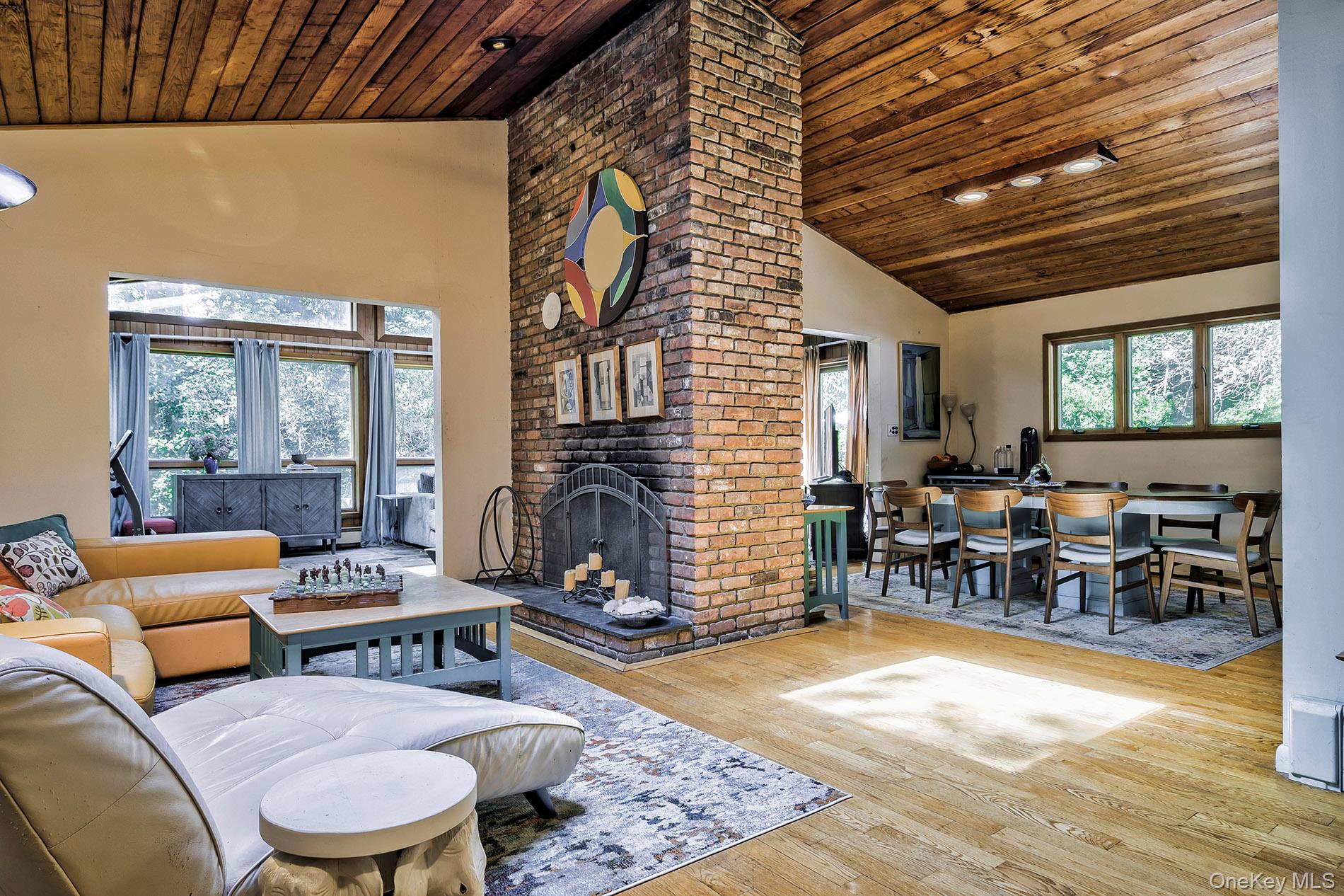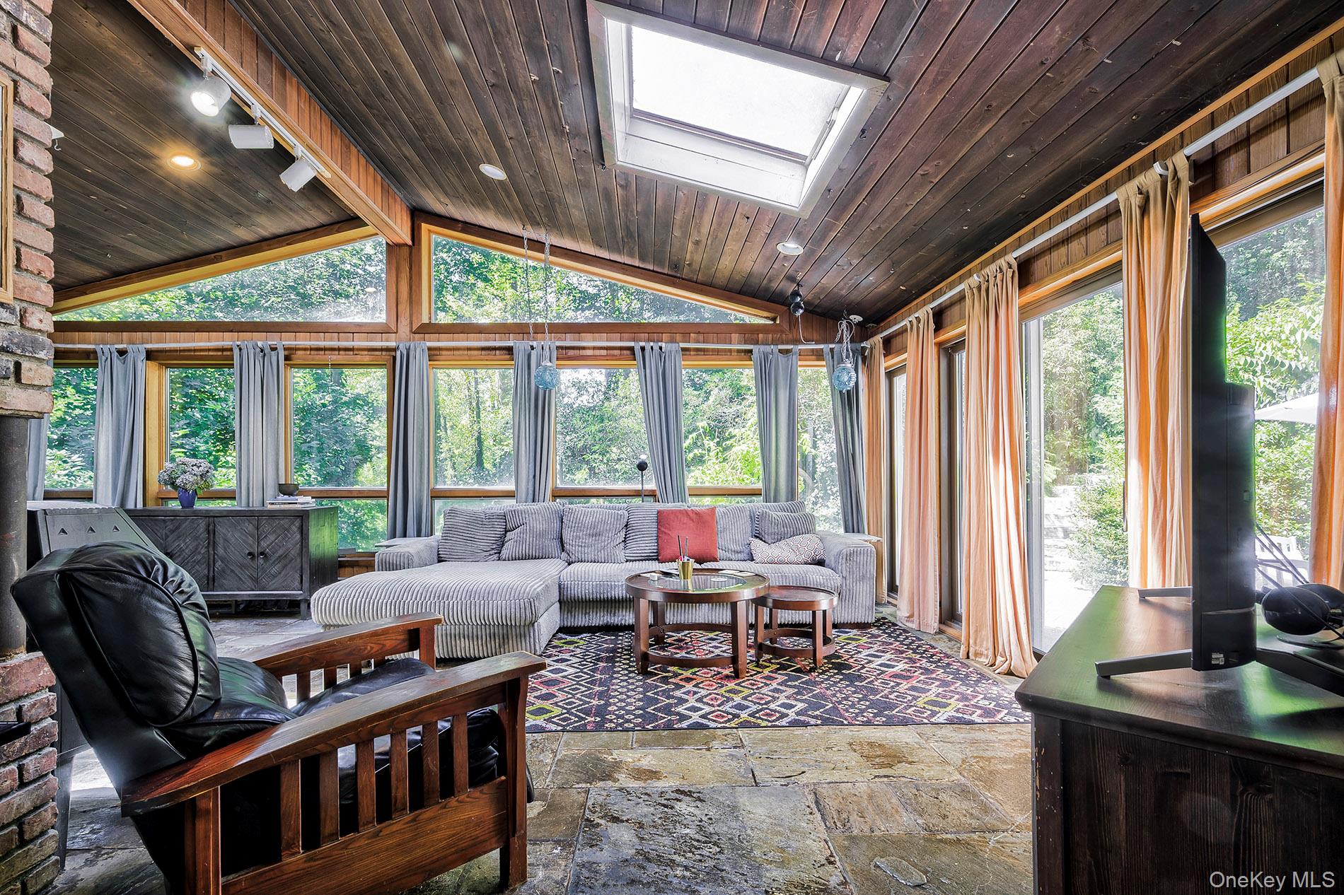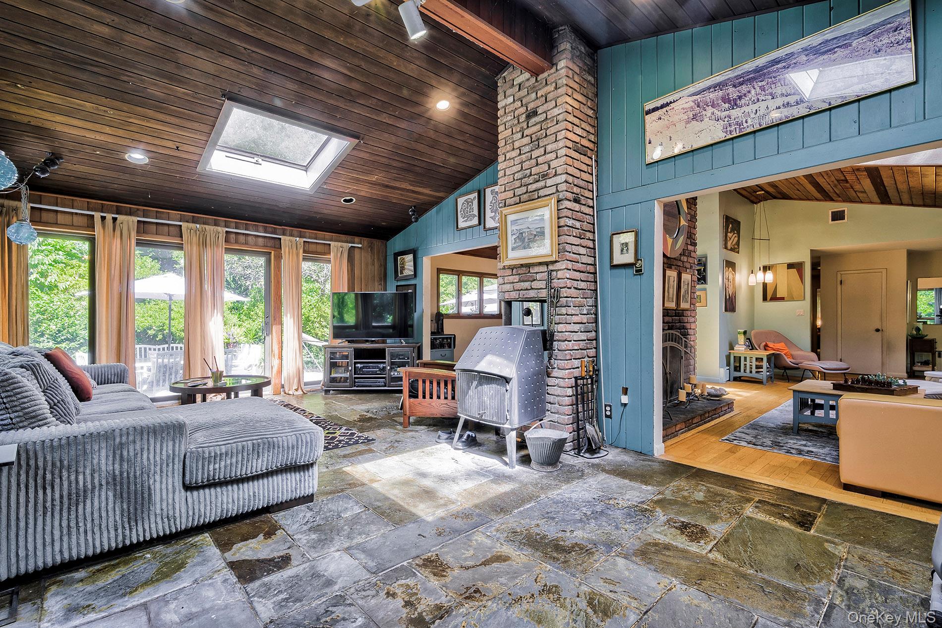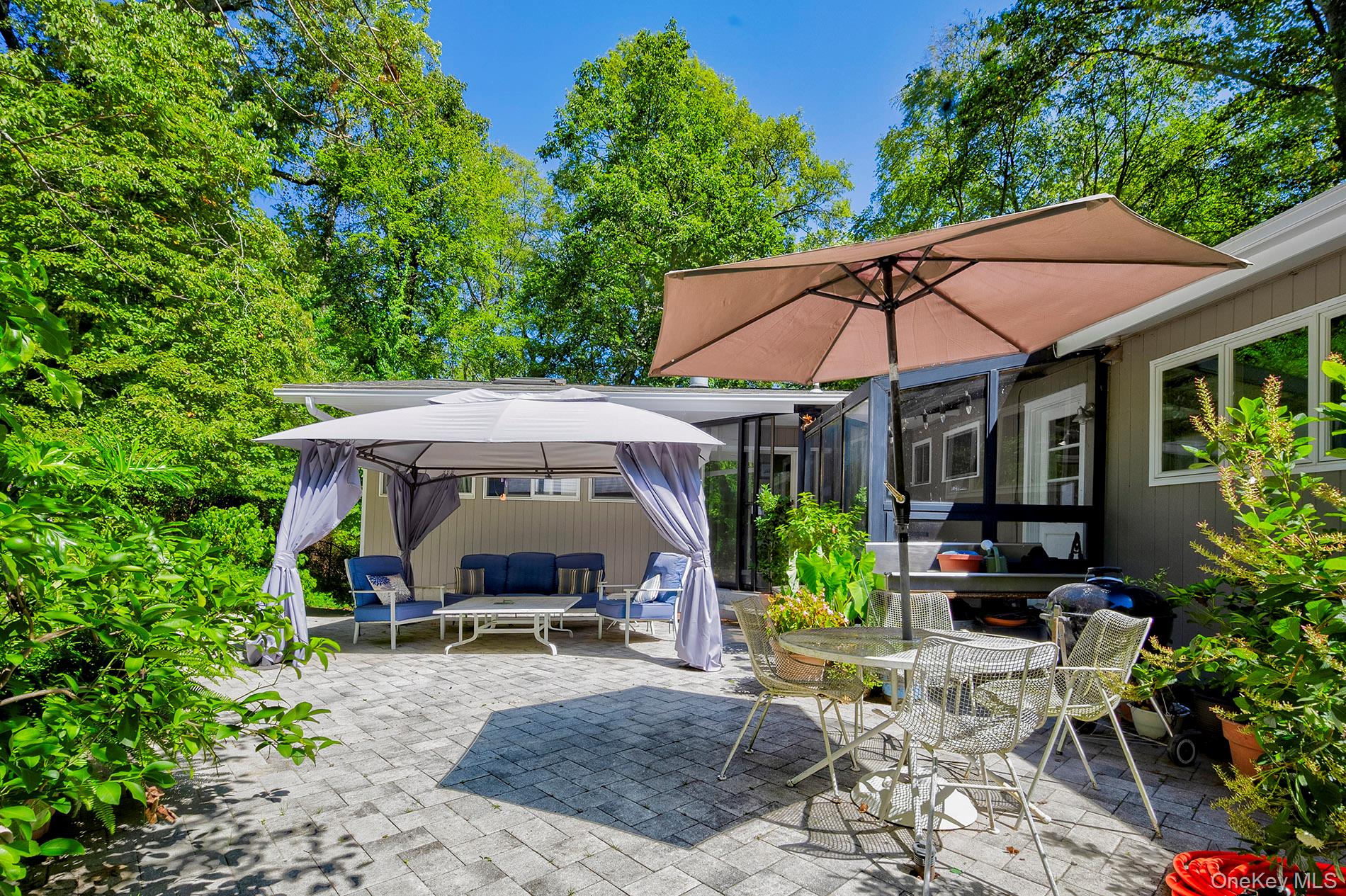 Welcome to this exceptional Expanded Ranch featuring 4-5 bedrooms and 4 bathrooms, nestled on 1. 95 acres of serene beauty in Oyster Bay Cove's (Cove Neck section). A long private driveway can accommodate multiple vehicles, leading you to this remarkable residence, which includes a two-car attached garage with ample storage. Step inside to discover a stunning open floor plan accentuated by vaulted ceilings and walls of windows that showcase breathtaking views. The living room boasts hardwood floors and a cozy wood-burning fireplace, while the dining room also features hardwood flooring. The family room is adorned with beautiful natural stone floors and another fireplace, with additonal vaulted ceilings creating a warm and inviting atmosphere. The spacious, updated eat-in kitchen is equipped with granite countertops, making it ideal for entertaining. You'll find multiple living areas throughout the home, including a expansive second great room complete with vaulted ceilings, walls of windows, a full bath, and a separate outside entrance. For added convenience, there's a separate in-law suite or home office featuring its own entrance, full bath, and a summer kitchen/wet bar. The tranquil, secluded backyard is an entertainer’s dream, featuring a gunite inground pool and plenty of seating areas on a beautiful paver patio for family gatherings and social events. As a bonus, the community offers a private beach with parking, perfect for kayaking, swimming, sunbathing, or simply enjoying the stunning sunrises and breathtaking views of cold spring harbor. This home also comes with deeded mooring boat rights. Located close to restaurants, shopping, town beaches, and the LIRR, this property is truly a perfect place to call home!