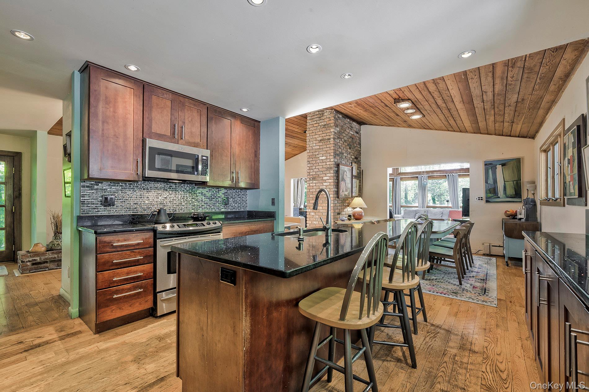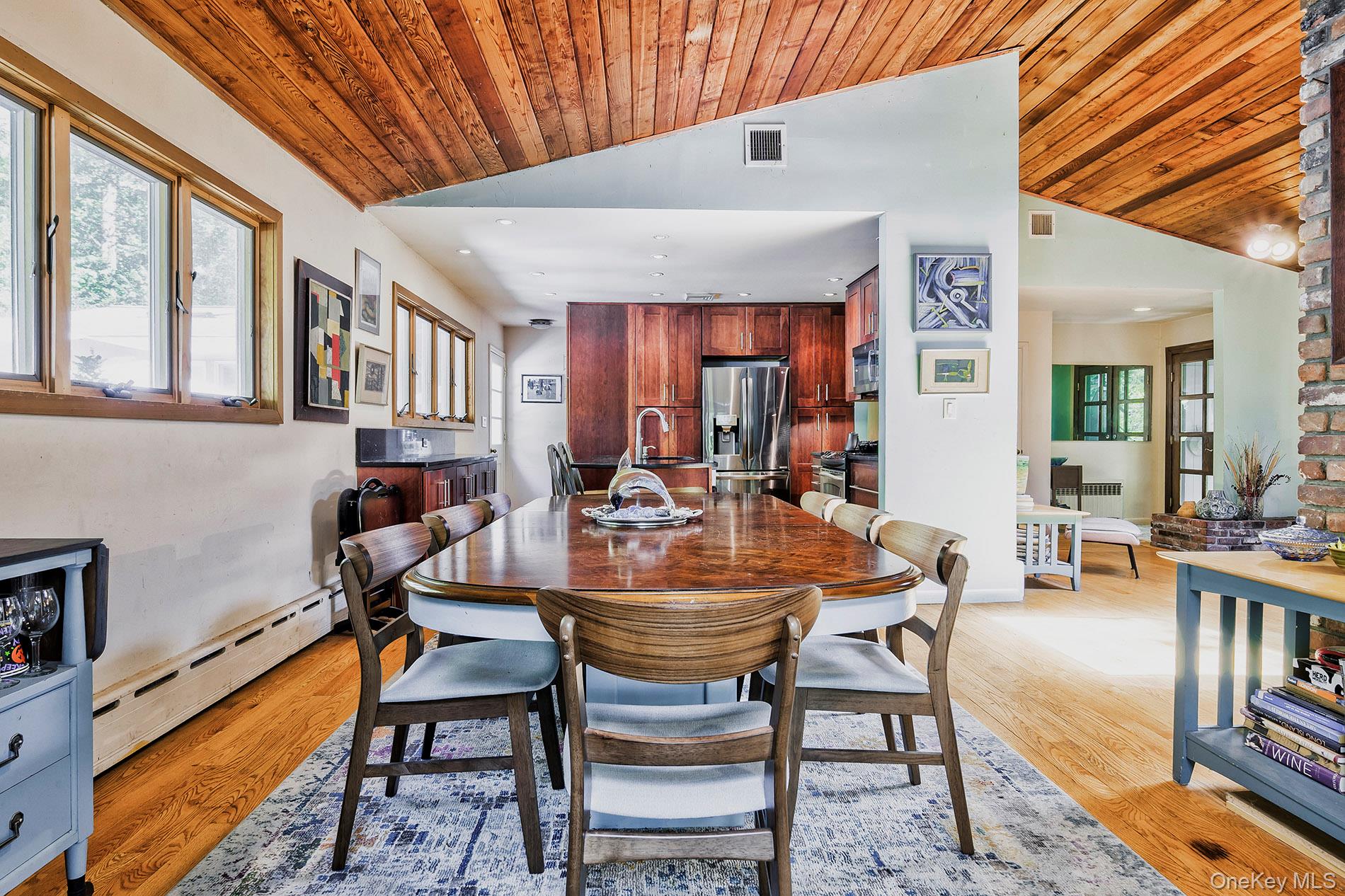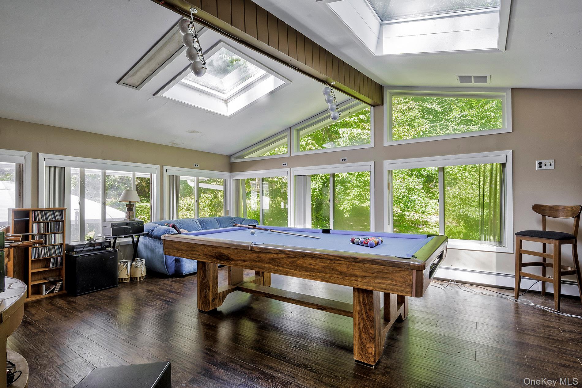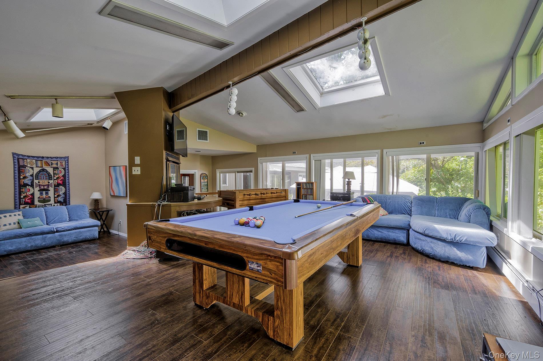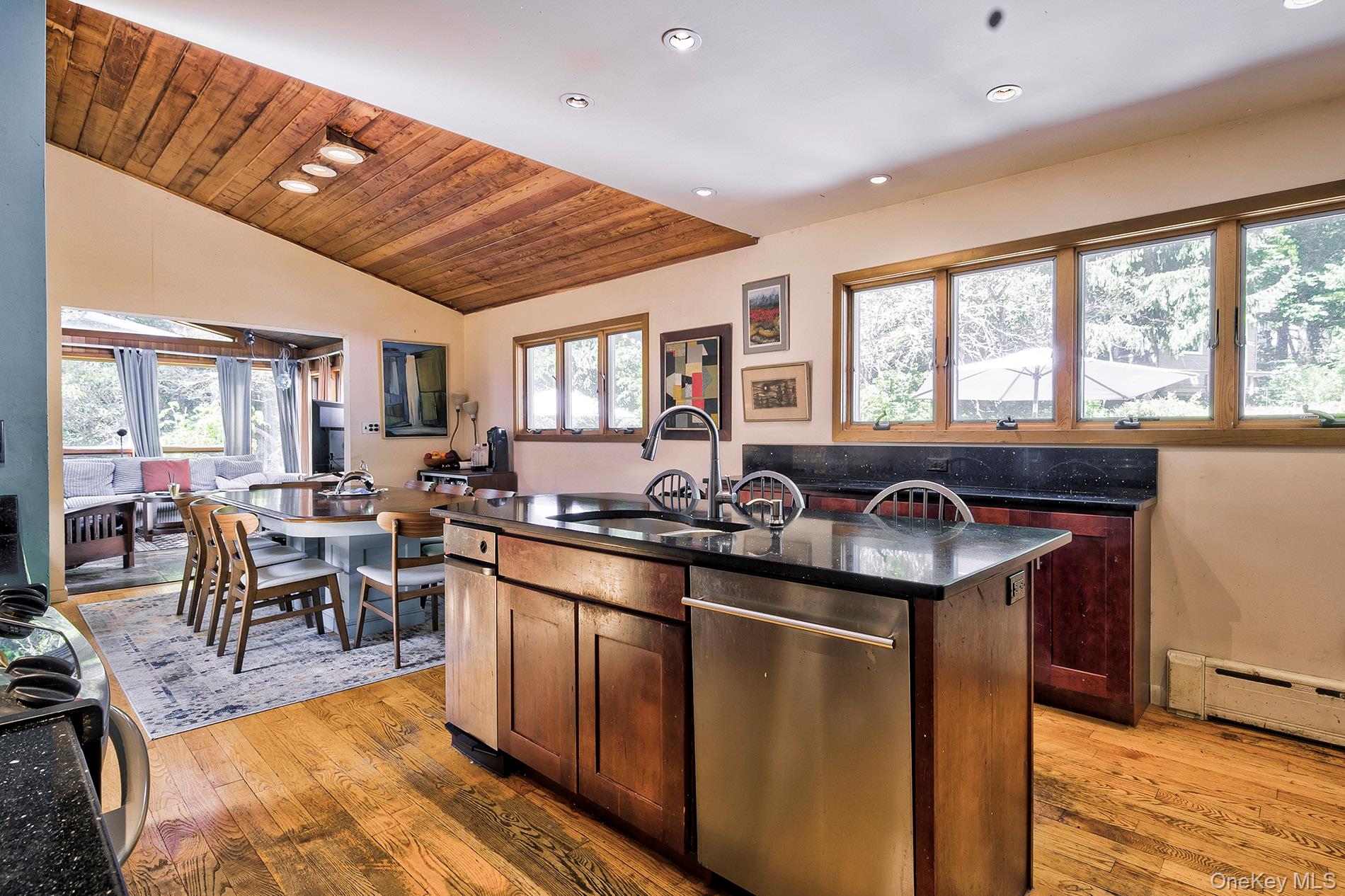 Welcome to this exceptional Expanded Ranch featuring 4-5 bedrooms and 4 bathrooms, nestled on 1. 95 acres of serene beauty in Oyster Bay Cove's (Cove Neck section). A long private driveway can accommodate multiple vehicles, leading you to this remarkable residence, which includes a two-car attached garage with ample storage. Step inside to discover a stunning open floor plan accentuated by vaulted ceilings and walls of windows that showcase breathtaking views. The living room boasts hardwood floors and a cozy wood-burning fireplace, while the dining room also features hardwood flooring. The family room is adorned with beautiful natural stone floors and another fireplace, with additonal vaulted ceilings creating a warm and inviting atmosphere. The spacious, updated eat-in kitchen is equipped with granite countertops, making it ideal for entertaining. You'll find multiple living areas throughout the home, including a expansive second great room complete with vaulted ceilings, walls of windows, a full bath, and a separate outside entrance. For added convenience, there's a separate in-law suite or home office featuring its own entrance, full bath, and a summer kitchen/wet bar. The tranquil, secluded backyard is an entertainer’s dream, featuring a gunite inground pool and plenty of seating areas on a beautiful paver patio for family gatherings and social events. As a bonus, the community offers a private beach with parking, perfect for kayaking, swimming, sunbathing, or simply enjoying the stunning sunrises and breathtaking views of cold spring harbor. This home also comes with deeded mooring boat rights. Located close to restaurants, shopping, town beaches, and the LIRR, this property is truly a perfect place to call home!