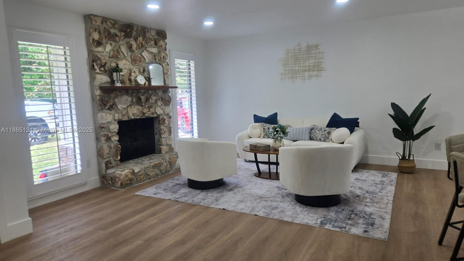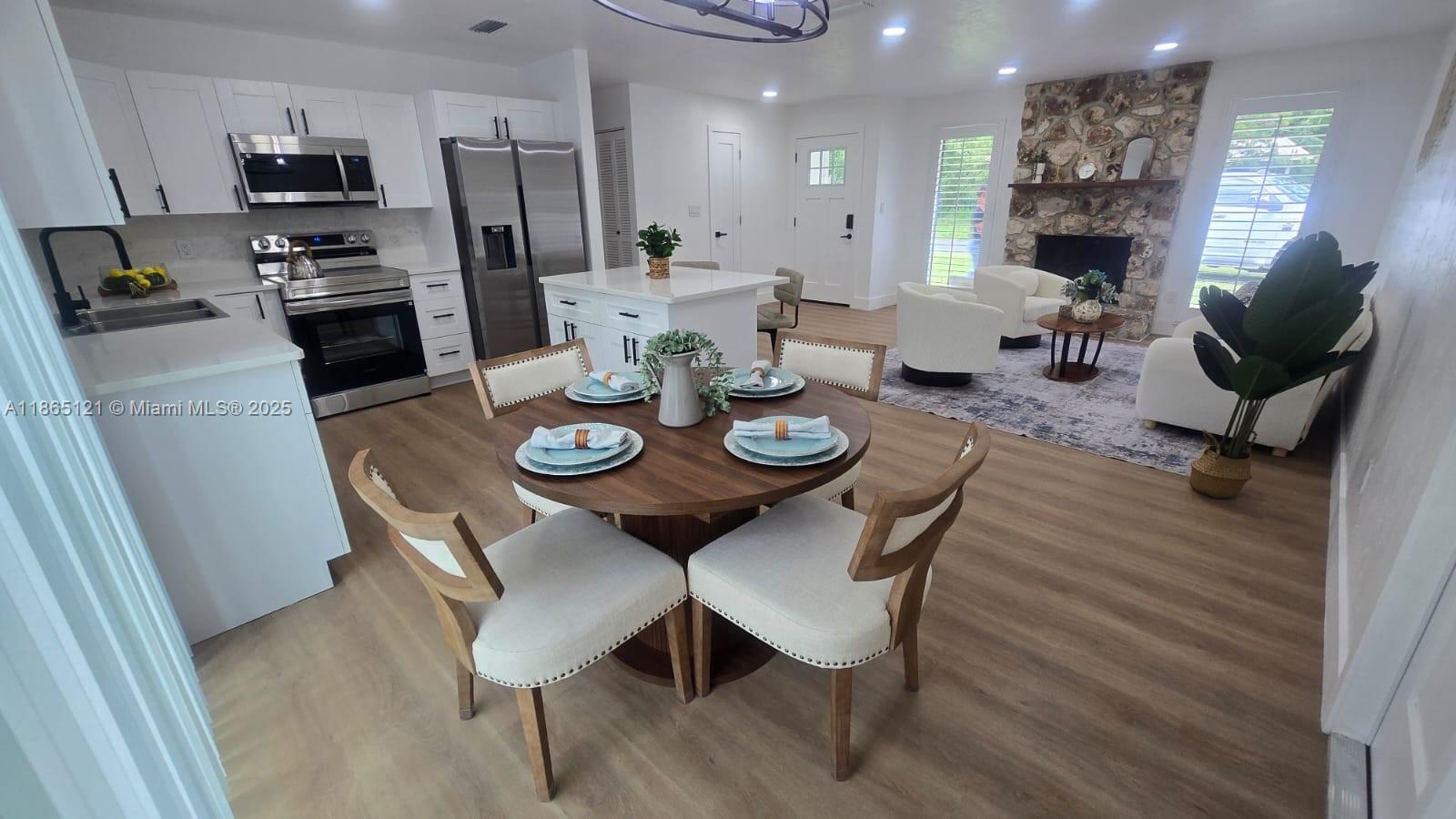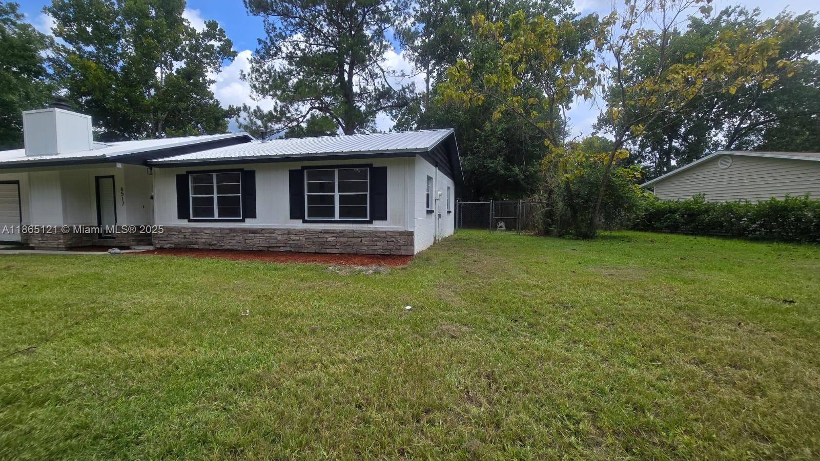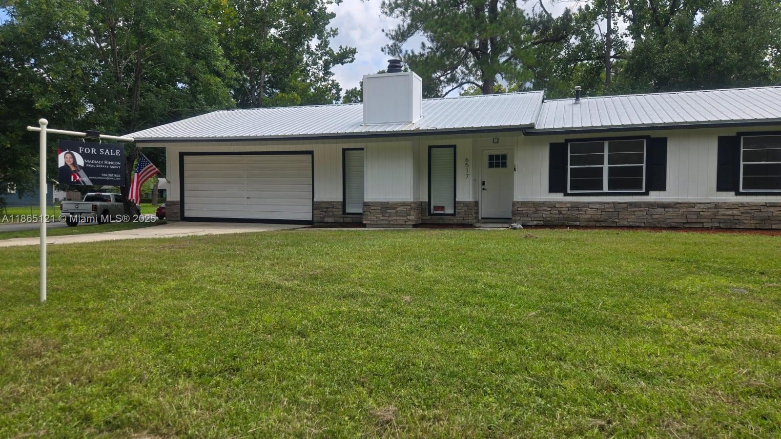 Welcome to this fully remodeled corner concrete block home surrounded by nature and tranquility. Featuring a new metal roof(2016), new gas water heater(2022), and a brand-new A/C(2025)with 10-year warranty, this property blends quality construction with modern upgrades. Inside, enjoy a stylish kitchen with sleek cabinets, stone countertops, new stainless steel appliances, and a separate dining area. The spacious living room highlights a cozy fireplace, creating warmth and charm. Outside, the large fenced backyard with mature trees is perfect for family gatherings or relaxing, 0. 26 acres lot. . Two covered garage spaces, Plus a new washer and dryer add extra convenience. A true move-in ready home!