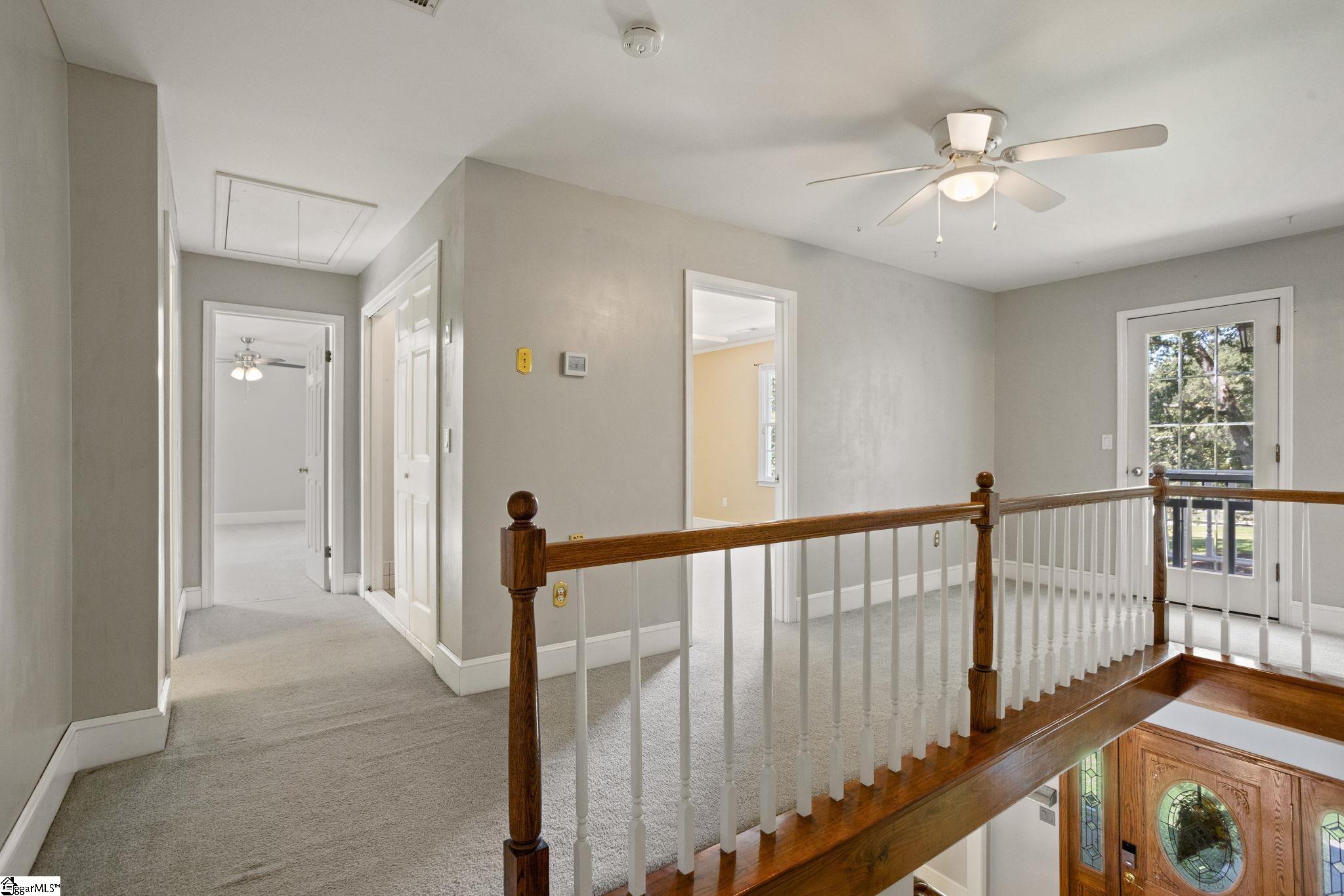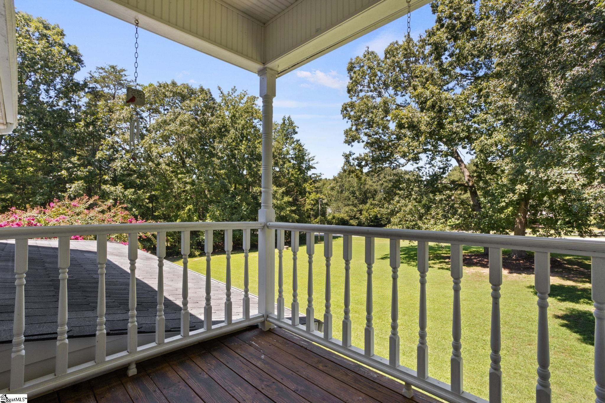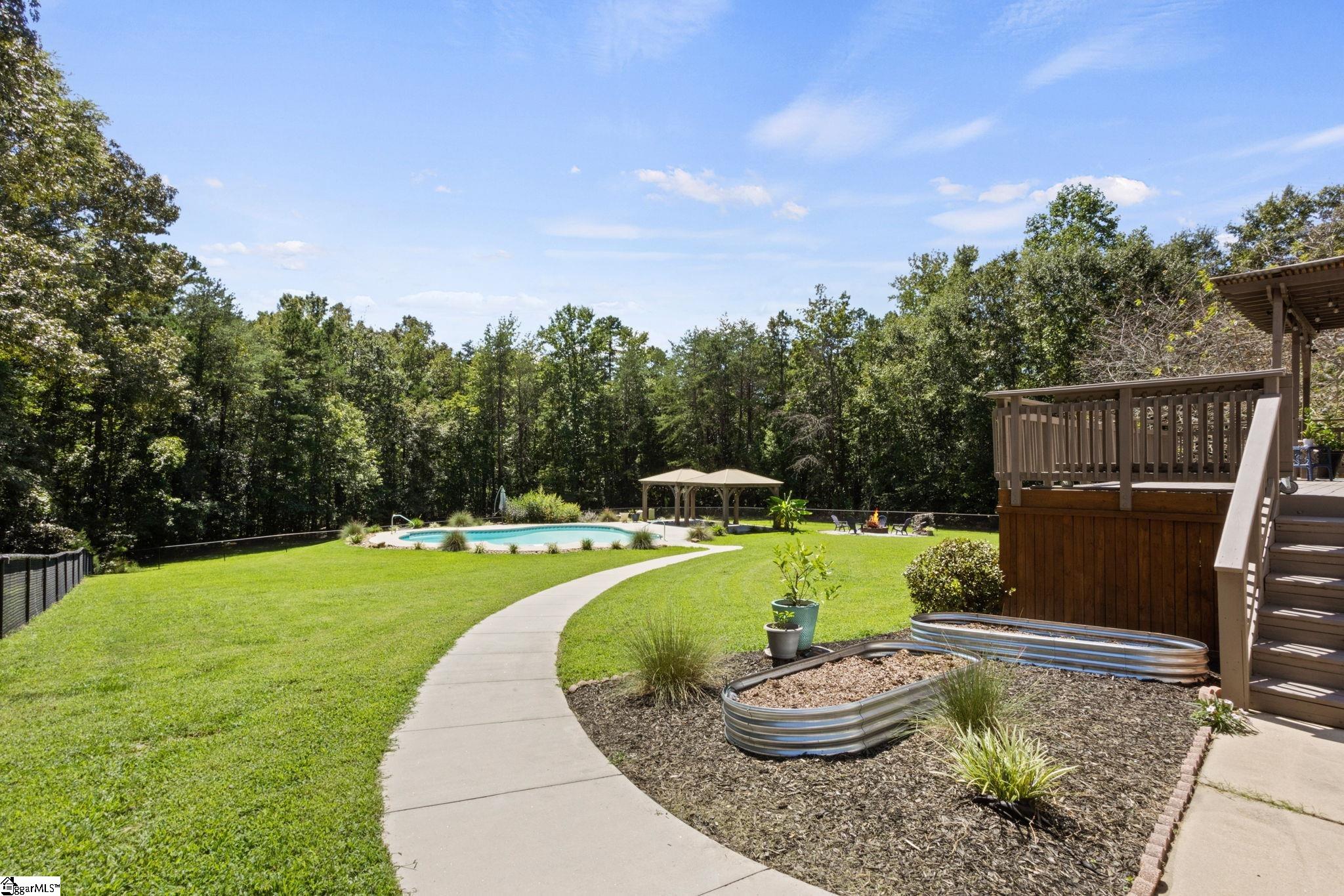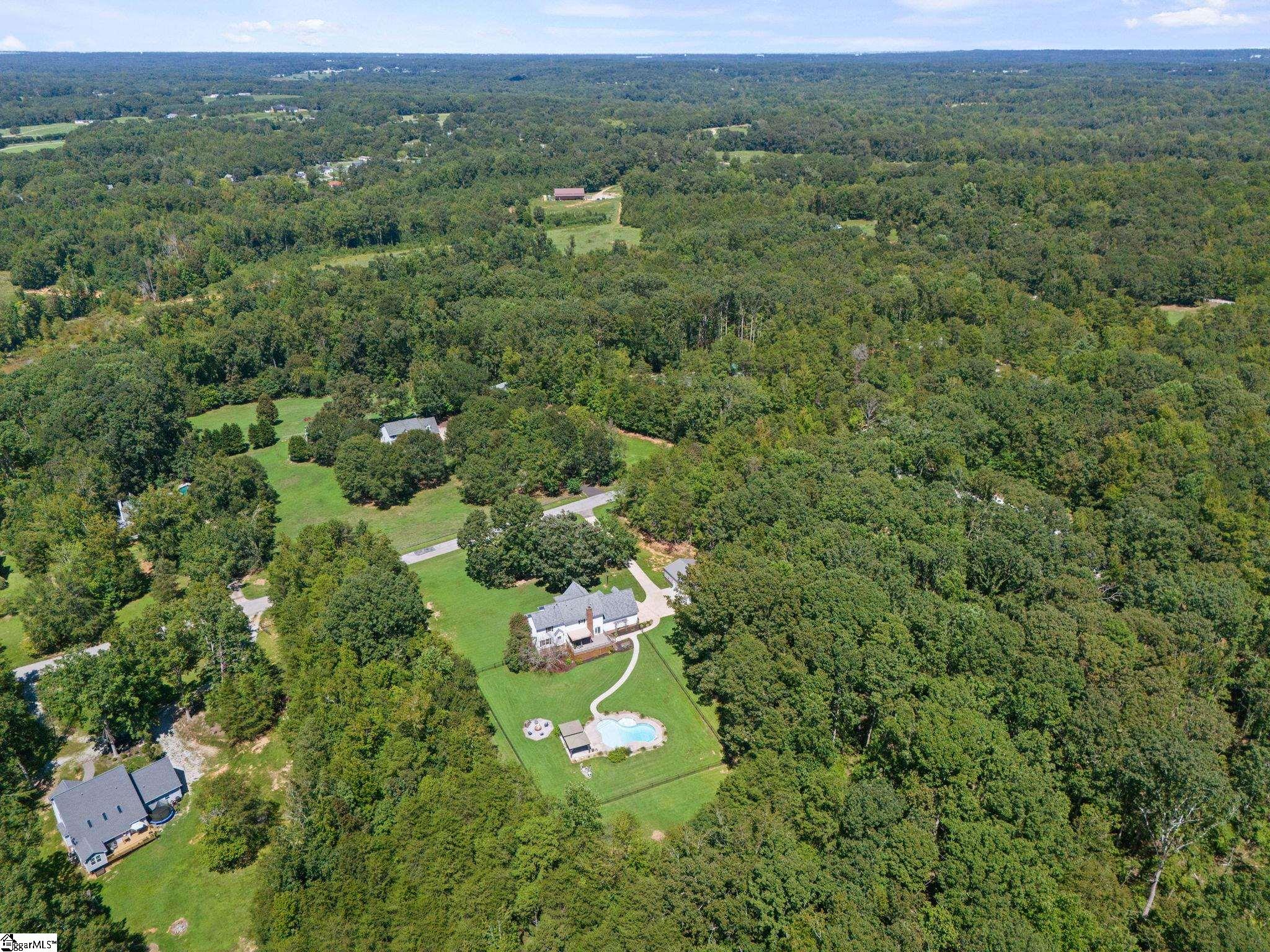 Do Not Miss this opportunity to own this Southern home nestled on an Approximately 5 ACRE lot and loaded with charming quality features. Escape the chaos and enjoy the serene privacy from the covered wrap around front porch. The traditional floor plan offers a foyer entry and a FormalLiving Room, . Dining Room is a nice size and features picture moldings and tons of natural light. Kitchen has been transformed into a modern oasis with a nice garden window, neutral paint, and beautiful white cabinets. Stainless appliances complete the space along with a pantry and breakfast area. Enjoy the open Great Room with gas logs, the perfect place to entertain and be part of all the action in the kitchen or on the deck. Office could also be used as a 4th bedroom with easy access to a full bath on the main level. Upstairs has the large master suite with an inviting SITTING AREA, full bath, and generous size walk in closet. Flex space / Bonus is located off the master with plenty of room and excess storage. Covered Balcony access near master is a great place to sit and take in all the gorgeous wildlife in the area. Two additional bedrooms, bathroom, and laundry closet complete the upstairs living space. THe attached two car garage is oversized with work bench and storage. The oversized garage will accommodate 2 large vehicles Outside is equally nice as the inside the large back deck features a covered PERGOLA and overlooks the gorgeous flat wooded, private back yard with inground Salt Water Resort style pool built in 2021 that is heated for swimming year around. Around the pool are 2 pergolas and fire pit area for the fall evenings. Featured also is the 30x50x10 Building built in 2021 with electricity that is fully insulated with 2 bay garage doors. Great for at home mechanical business or wood working shop. Never be without power as this home is equipped with whole house Generac Generator less than 3 years old. Water heater and upstairs HVAC replaced in 2021. Fairview Forest is an excellent community offering larger tract homesites for its homeowners. Horses are permitted. Just a short drive to all the conveniences of Simpsonville at Fairvew Rd, this is an excellent opportunity to MOVE RIGHT IN to your own quiet retreat.