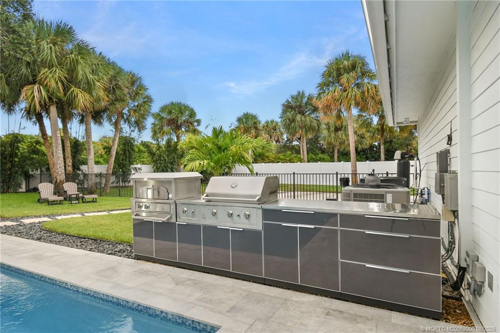 Step in??de this ?e? West–?tyle, custom-built c?ncr?te block home, complete with a full-length front porch and timeless curb appeal. This 3-bedroom, 2. 5-bath home sits on a half-acre lot and is built with quality in mind, featuring soaring 12-foot ceilings, 8-foot doors, and luxury plank flooring throughout, spray foam insulation and impact glass. The chef’s kitchen showcases white shaker cabinetry, an expansive island, coffee bar, and quartz countertops—perfect for both entertaining and everyday living. The primary suite is a true retreat with oversized walk-in closets, a sauna, and an impressive spa-style shower. Step outside to a screened-in porch with retractable screen overlooking a brand-new saltwater pool and spa. The outdoor living area includes a full summer kitchen with pizza oven, bar, outdoor shower, and lush professional landscaping—creating a serene, private oasis. With room to store your boat or RV, residents also enjoy access to a private day dock with fishing pier.