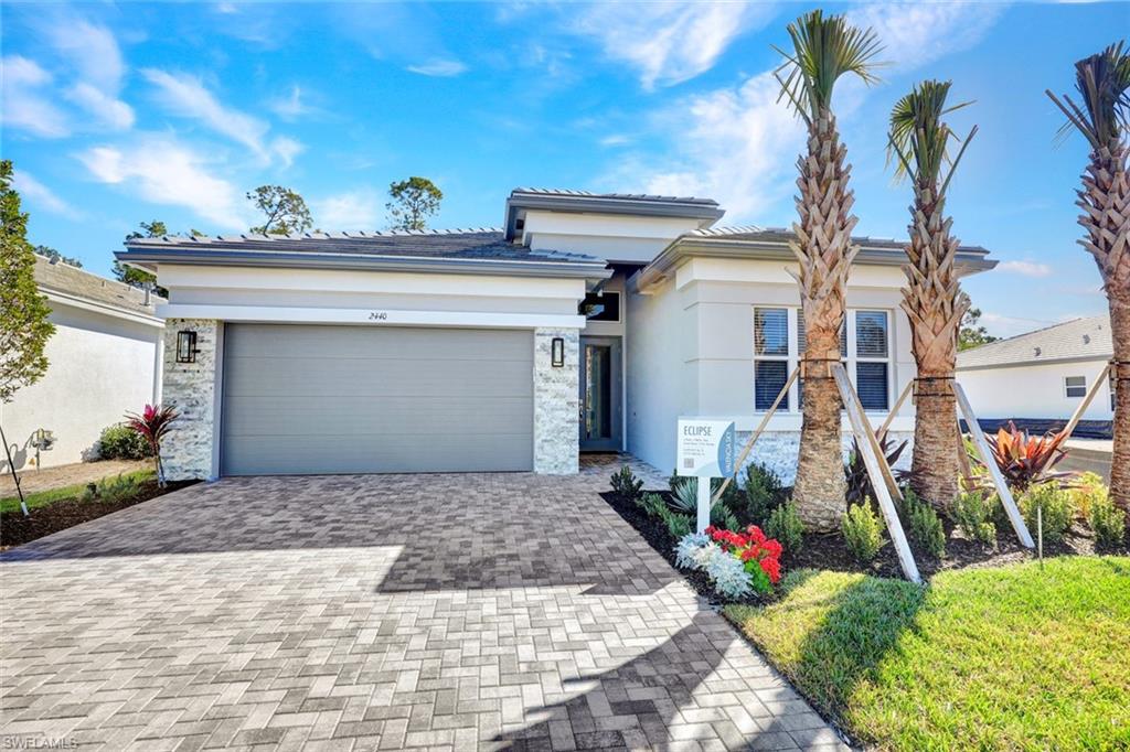 New construction Pool Home Now Available for Immediate Occupancy! This "Eclipse" floor plan offers a glass front entry door and impact resistant windows throughout with 3 Bedrooms, Great Room, and Den with 3 Baths, and 2 Car Garage. Enjoy an Upgraded Open Kitchen with stainless steel GE appliances, quartz countertops and cabinet pantry. Gas Tankless water heater, 24x24 Tile Flooring in main areas and Baths and more! Valencia Sky is located just minutes away from Downtown Naple’s Famous 5th Avenue where you will find wonderful beaches, shopping and dining and provides a new standard of 55 plus living by offering an exciting vacation-inspired lifestyle that rivals the finest resorts. The opulent Clubhouse and Lifestyle Complex offers hundreds of exciting events including Broadway style shows, matinees, cocktail parties and galas. A full-time, on-site lifestyle staff ensures that there is something for everyone to enjoy. Please Note: Photographs are the Eclipse Model, not the actual home.