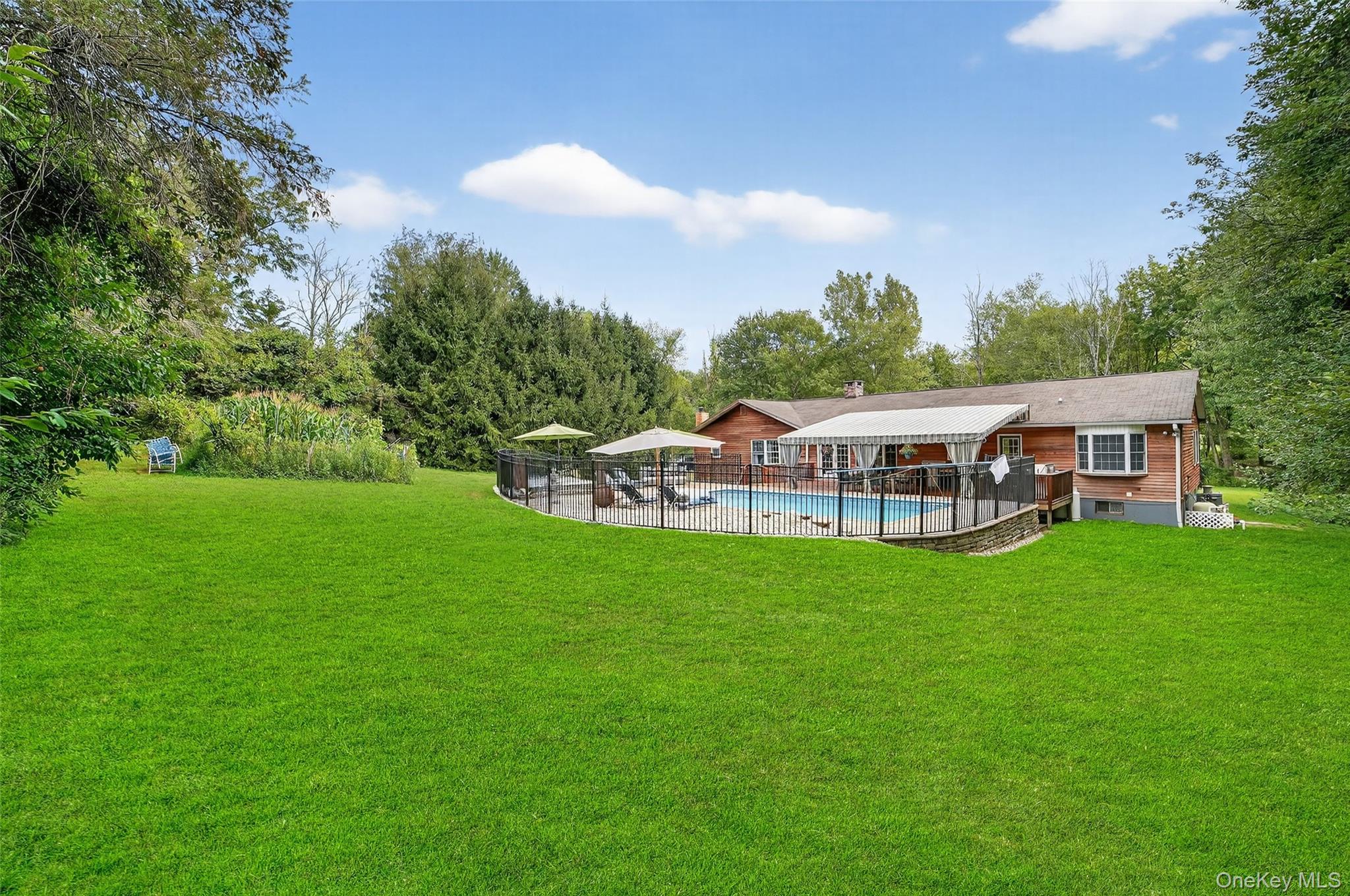Exceptional residence featuring a fully legal accessory apartment, offering rare flexibility for multigenerational living, extended family, guests, or private professional space. The thoughtfully designed additional living area includes its own entrance, kitchen, bath, and living quarters, creating a comfortable and private environment while maintaining the character of a single-family home. Approximately 900 sq ft of finished lower-level space enhances the home’s functionality beyond the main living area reported in municipal records. Tucked away at the end of a semi-private road in a peaceful neighborhood, this property combines privacy, versatility, and elegant design. The main residence features 3 bedrooms, hardwood floors throughout the living areas, spacious living and dining rooms, and a dramatic vaulted fireplace that serves as a warm and inviting centerpiece. The chef’s kitchen boasts a Wolf range with built-in grille, double oven, and Sub-Zero freezer—ideal for both everyday living and entertaining. Step outside to the expansive Ipe Brazilian walnut deck with a large overhead awning for seasonal indoor/outdoor comfort. The resort-style backyard is a private oasis with a heated pool, Caldera spa, and lush landscaping—perfect for relaxing or entertaining. A 3-car garage with a workshop area provides ample space for vehicles, storage, and hobbies. Central air conditioning ensures year-round comfort. Located just 5 minutes from the Croton-Harmon Metro-North Station with a 40-minute express ride to NYC, this home offers the ideal balance of luxury, convenience, and tranquility in one of Ossining’s most desirable hidden neighborhoods.