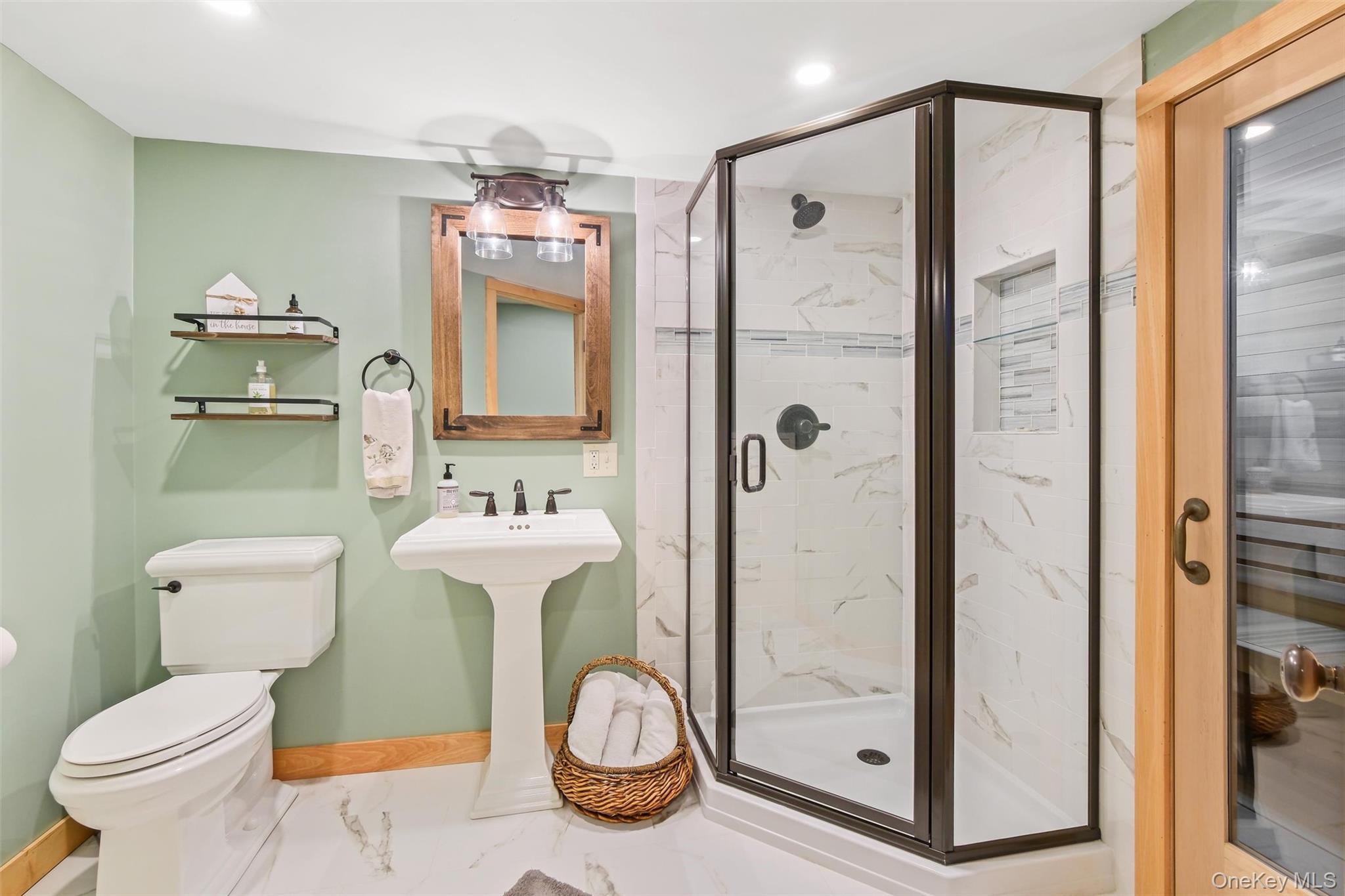 Just 90 miles from New York City, at the end of a winding, tree-lined drive, a world unfolds where time slows down, and life takes on a different rhythm. This is the Hudson Valley escape you’ve been waiting for. A custom-built home with detached workshop on nearly five private acres, where every detail was designed to bring comfort, inspiration, and beauty into daily living. The moment you arrive, the energy shifts. Towering trees, blooming perennials, and the sound of quiet define the landscape. The rocking-chair front porch sets the tone as you step through the handcrafted wood door and into a sun-drenched interior, where gleaming wide-plank hardwood floors and a dramatic stone fireplace immediately command attention. The open-concept floor plan flows effortlessly. The chef’s kitchen is both functional and social, with Brazilian UbaTuba granite counters, custom cabinetry, stainless appliances, and a generous eat-in area. French doors open to a 20x40 deck overlooking the property, perfect for summer nights under the stars, dinner parties, or quiet mornings with coffee. A ground-floor primary suite offers total privacy, with a spa-like bath featuring an oversized soaking tub, walk-in shower, and generous custom closet. Upstairs, three additional bedrooms, a lounge area, and a media room provide space to spread out. With its own separate entrance, this level can easily function as private guest quarters or an in-law suite. The finished lower level extends the living experience even further: a game and family room, cedar-lined wood sauna, full bath, and direct walk-out access to the backyard complete with outdoor shower. It’s a space built for play, wellness, and year-round enjoyment. A heated saline pool carved into natural stone, complete with diving rock and firepit lounge, becomes the centerpiece of warm-weather living. Whether it’s long afternoons with family, evenings by the fire, or celebrations under the sky, this is where memories are made. Beyond the pool, the two-story detached carriage house stands ready for its next chapter. Over 3, 000 square feet of radiant-heated, raw space, this structure is the blank canvas buyers dream of. Whether envisioned as an artist’s dream studio, a gallery, a workshop, a collector’s garage, or even a creative retreat compound, the potential is limitless. Already generating $80, 000 annually in Airbnb income, it offers a lifestyle of luxury and seclusion with the ability to offset ownership through short-term rental opportunities. A Hudson Valley retreat where you can live, create, and play without compromise. Where weekends stretch into seasons, and every return feels like an escape.