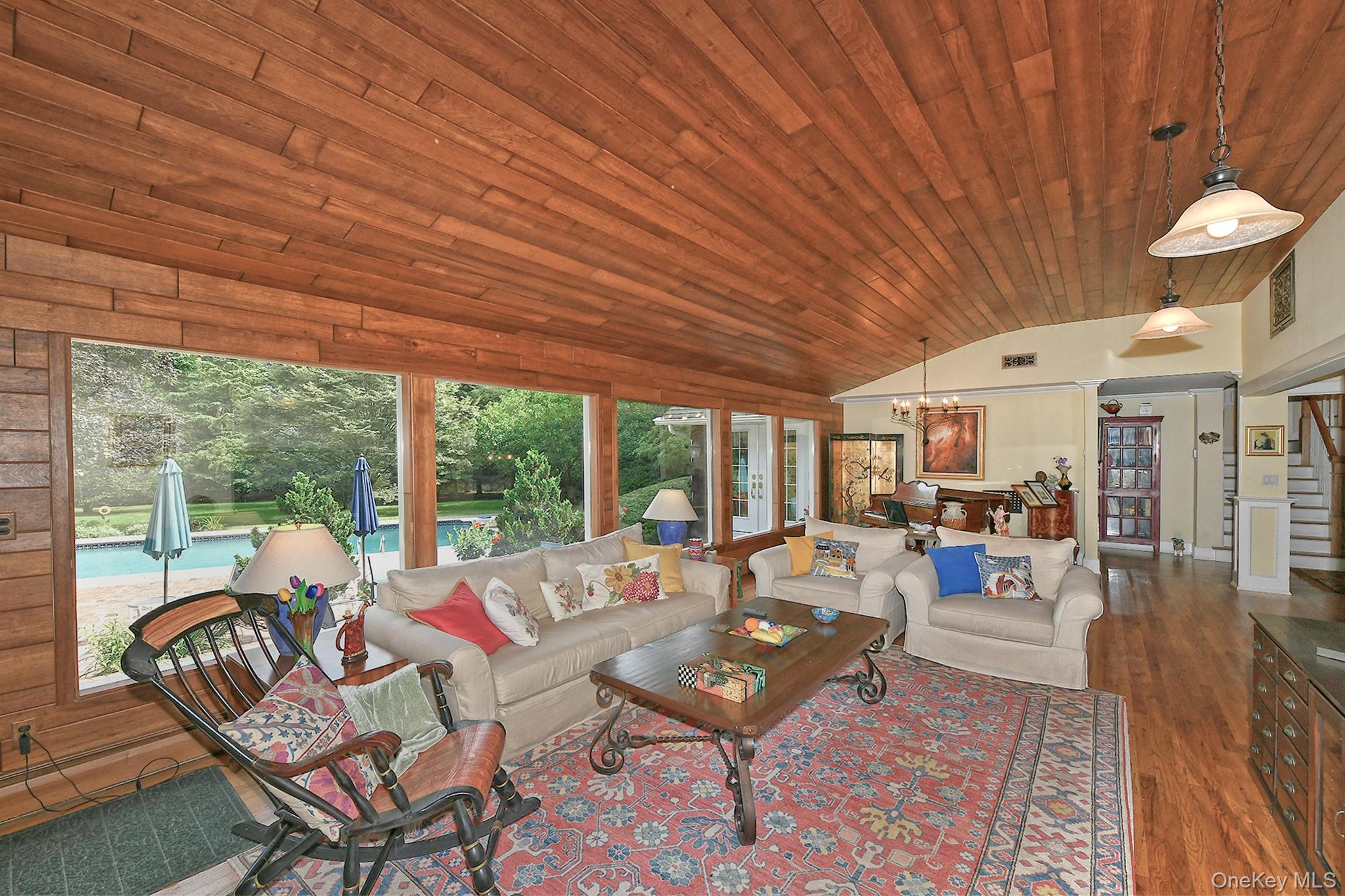Welcome to 21 W Mall Drive – A Truly Magnificent Retreat in West Hills! Nestled on a private, tree-lined acre, this stunning 4-bedroom, 3-bath Farm Ranch in the desirable West Hills area offers the perfect blend of elegance, comfort, and privacy. Step into a dramatic double-height foyer that leads into a spacious family room, featuring a soaring fireplace and serene views of the lush backyard. The open layout, enhanced by vaulted ceilings, rich hardwood floors, and walls of windows, floods the home with natural light and warmth. This thoughtfully designed home is equipped with all the modern amenities you desire, including 3-zone heating and central air, a 2-car garage, private driveway, inviting front porch, and an 8-zone in-ground sprinkler system. Recent upgrades include a brand-new whole-house generator and new water heater for worry-free living. Perfect for both everyday living and entertaining, the seamless flow extends outdoors to a resort-style backyard with a large patio and a sparkling in-ground gunite pool, all set within a picturesque, park-like landscape. Located in the highly acclaimed South Huntington School District, this home checks every box. Don't miss this rare opportunity—schedule your private showing today, because this one won't last!