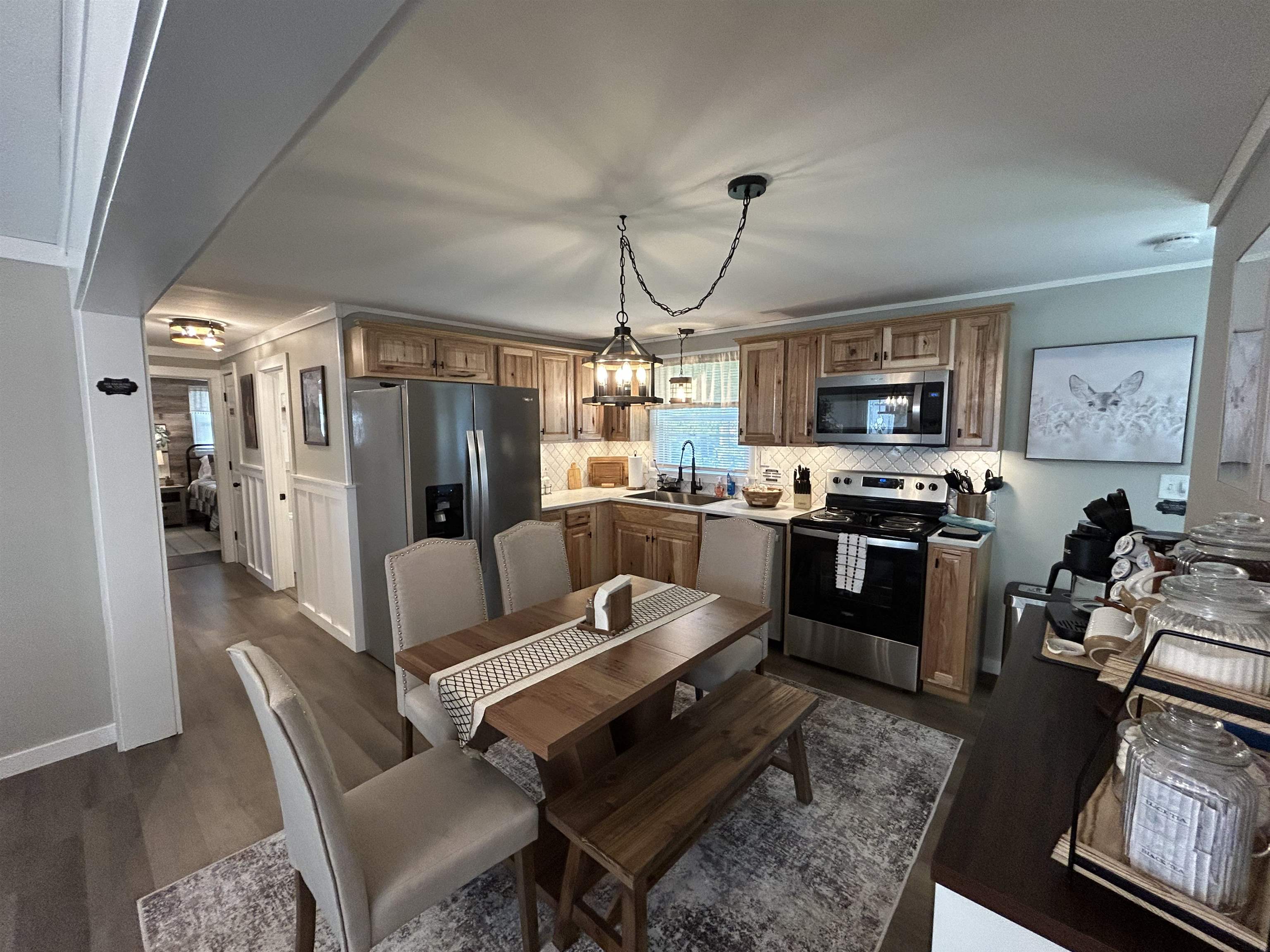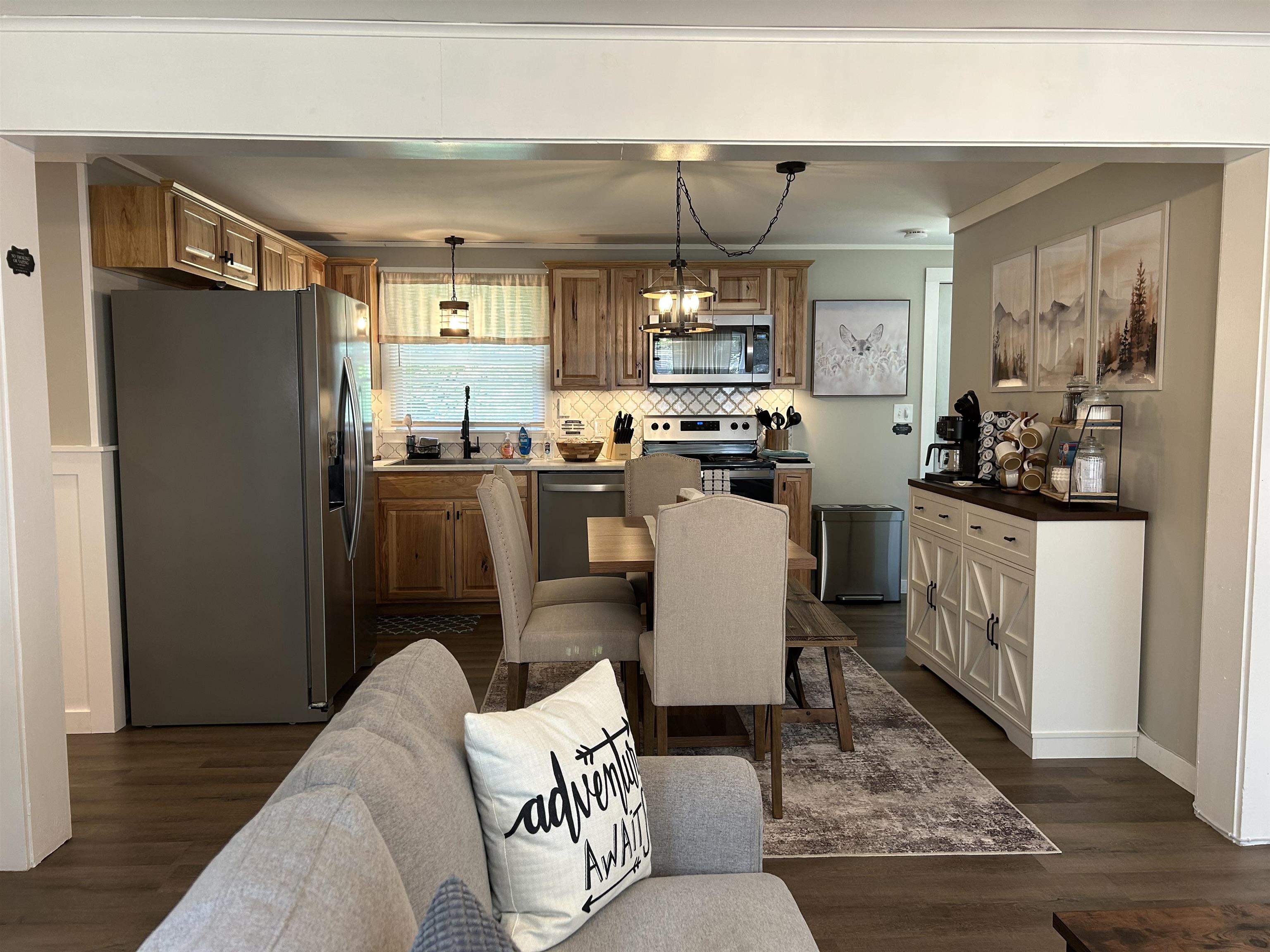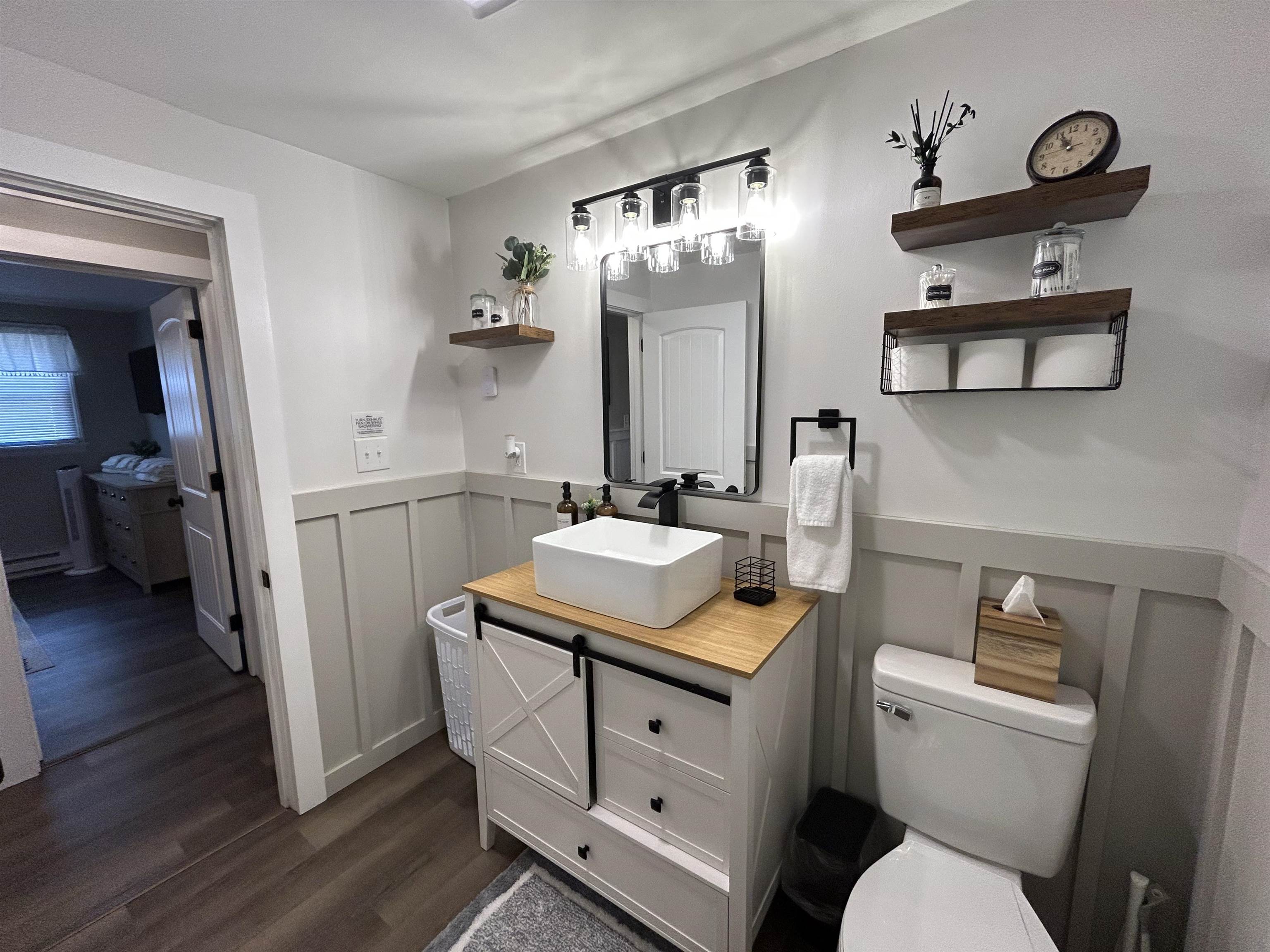 Just outside Conway Village in a quiet neighborhood, this 3 bedroom ranch has been given a full make over! From kitchen to bathroom, lighting to appliances, and custom shelving to trim this home has had everything upgraded! The entire first floor has new scratch-resistant vinyl flooring, along with new trim and modern lighting fixtures. The eat-in kitchen is beautifully redone with all new stainless steel appliances, warm hickory cabinets, fresh counter tops, and a deep stainless steel sink. The living room has been transformed with a custom-built fireplace wall featuring built-in shelving, accent lighting and storage. The main bathroom is completely new as well, including the vanity, shower, and toilet. And if all that wasn't enough, the house received a brand new septic system in May of this year! Coupled with the community water system, the new homeowner has very little to worry about going forward. Outside, both front and back yards are spacious and flat for your cookouts and enjoyment. The basement is finished with a pellet stove for additional heating, a 3/4 functional bath, carpet and a drop ceiling. It could be used as additional guest space, an entertainment or game room, or even home office. Bring your imagination and transform this large basement into a beautiful and fun space! All furnishings are negotiable for a truly turn-key opportunity.