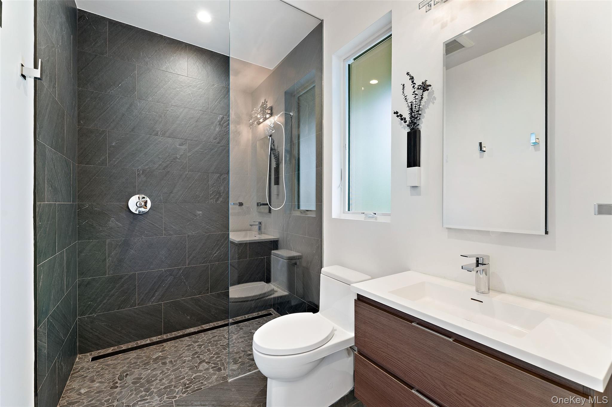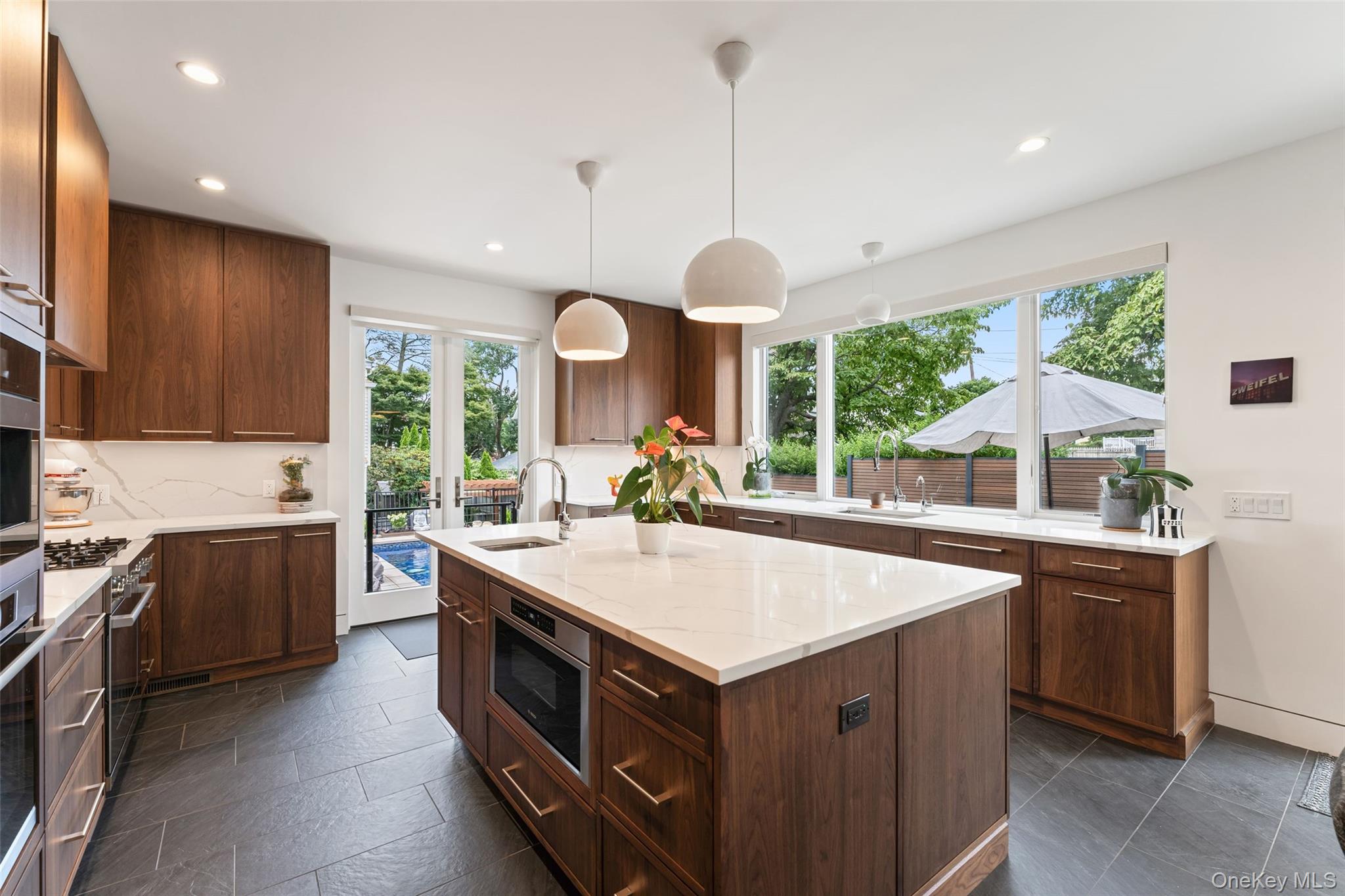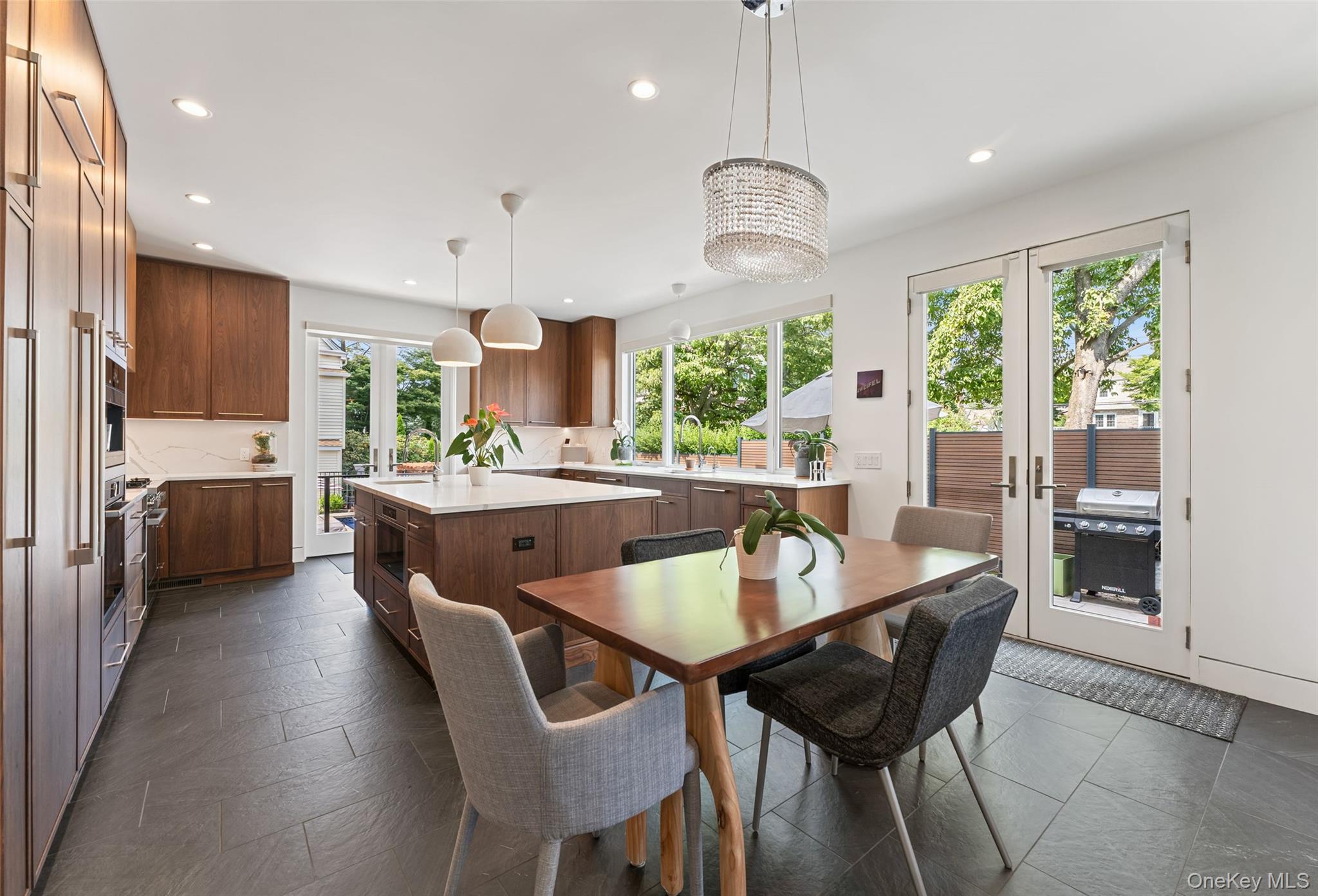 A rare opportunity to own a brand-new California-modern masterpiece in Bronxville PO. Completed in 2024, 11 Castle Street combines striking architecture, luxury finishes, and a seamless indoor-outdoor flow—just moments from the Metro North and the heart of Bronxville Village. The home’s clean lines and warm materials create an inviting yet modern aesthetic, crafted with no-maintenance NewTech siding and fencing, Andersen 400 windows, Hardie Board siding, and a designer Thermatru front door. From the radiant heated floors on every level to the state-of-the-art Ring alarm system and Alexa-enabled multi-zone HVAC, every detail has been thoughtfully considered. Inside, the main level offers an expansive open-concept design anchored by a chef’s kitchen with custom walnut Crystal cabinetry, Thermador fridge/freezer columns, Bosch appliances, Miele coffee system, quartz countertops, and custom pendant lighting. A flexible guest/office suite and full bath with zero-entry shower complete this floor. The second level is highlighted by a dream primary suite—spa bath with freestanding BAIN tub, glass shower, dual vanities, private water closet with bidet, custom closets, and access to a terrace. Two additional bedrooms (one with private balcony), a full bath, and a stylish laundry room with butcher block counters and utility sink make the upstairs as functional as it is beautiful. The lower level provides a playroom, gym space, custom closets, and full bath with dog wash, plus radiant heated concrete floors for year-round comfort. Step outside and discover your private resort: a Latham saltwater fiberglass pool ($100K investment) with Pentair heater, Cambridge paver patios and bluestone steps, automated pool robot, and multiple decks and sitting areas. A turf lawn, sprinkler system, and architectural outdoor lighting ensure the grounds are as easy to maintain as they are stunning. Additional highlights include a radiant heated garage with WiFi-enabled custom door, an electric charging station, seamless black gutters with guards, a 5, 000-gallon buried propane tank (owned, not leased), flush-mounted modern mailbox with house numbers, an imported Hartley Tissier stair runner, and custom window treatments throughout. This home is an architectural standout offering luxury, efficiency, and lifestyle in one extraordinary package.