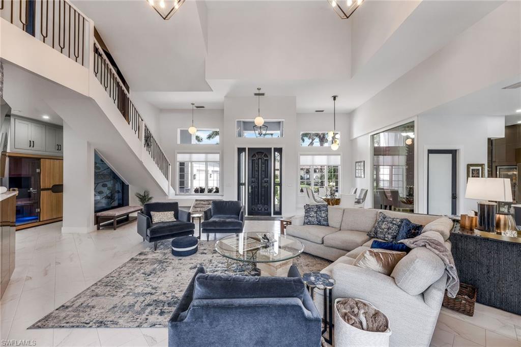 Welcome home to this luxurious, reimagined estate in the Vittoria neighborhood of Renaissance! Entirely remodeled, this home showcases a modern, bright and sleek design. As you enter the home, you are welcomed with soaring ceilings, a gorgeous living space featuring a dynamic 500-plus bottle temperature-controlled wine cellar, a magnificent two-story water wall feature, a beautiful open staircase and impressive views of the outside living space. Flowing effortlessly from the living space is the state-of-the-art gourmet kitchen complete with Thermador appliances, quartz counters and custom cabinetry. The property features a 2. 5-car garage, separate in-law quarters, Sonos system, new roof with solar panels, sauna, whole-home generator and a 500-gallon propane tank. The outdoor living area features two covered areas, a custom pool and spa, outdoor kitchen, fire pit and fenced pet area all overlooking the amazing golf, lake and sunset views. The Renaissance lifestyle includes an Arthur Hills championship golf course, resort-style pool and pool pavilion, children’s play area, full-service spa and fitness center, six red clay tennis courts, two pickleball courts and two bocce courts.