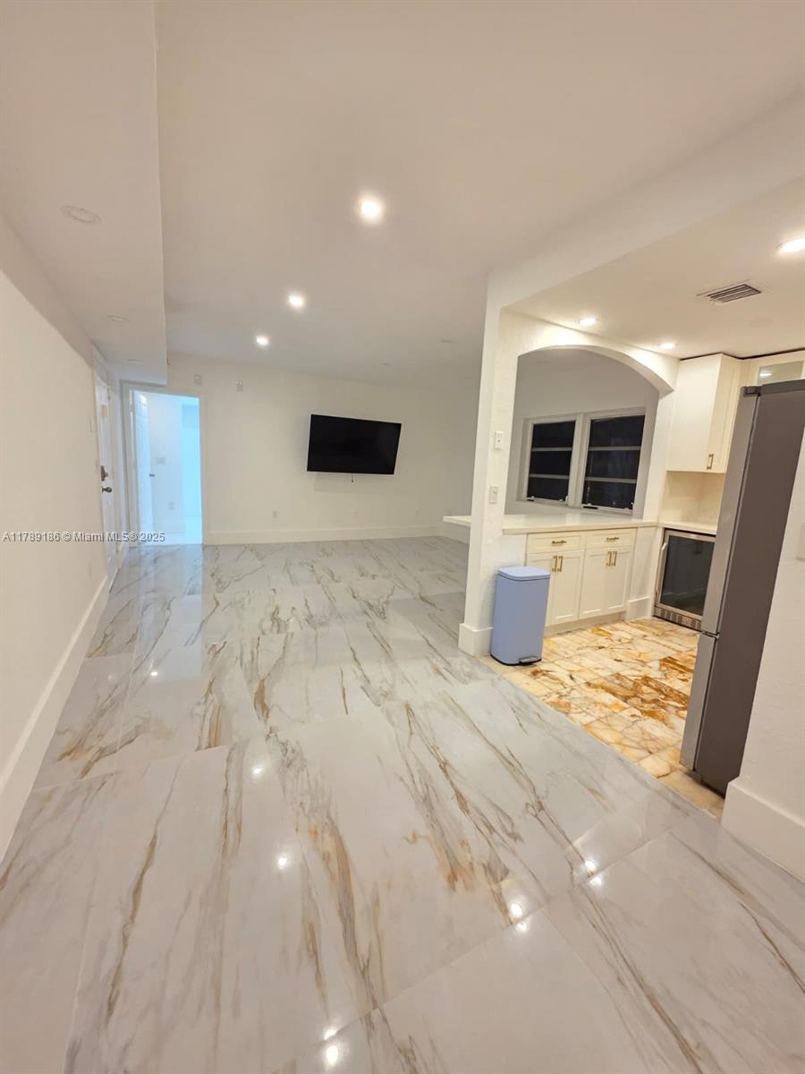 Spacious, open-concept living area with abundant natural light, EXQUISITELY REMODELED MODERN KITCHEN close to Flaming Park and the beach, modern bathrooms with designer fixtures
