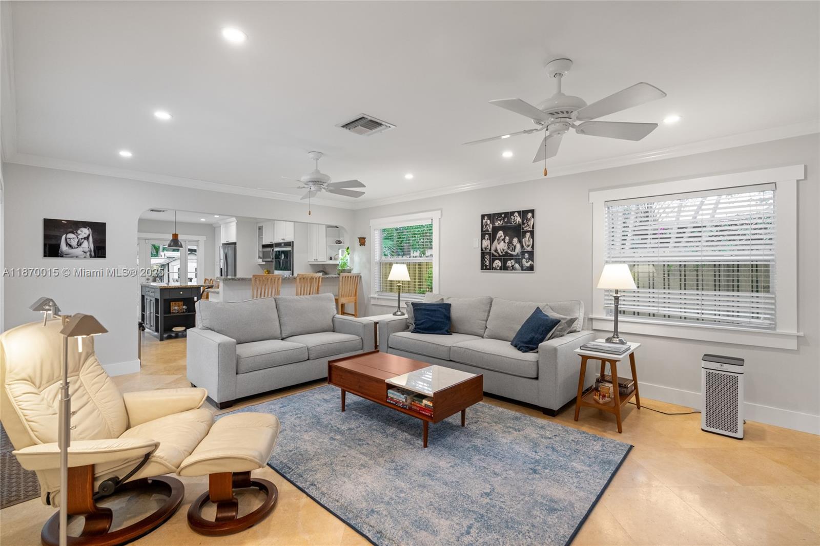 Welcome to this beautifully remodeled 3-bedroom, 2-bath home, and be instantly surprised. Designed with modern comfort and calmness in mind, the open layout features bright living and dining spaces flowing seamlessly into the kitchen, perfect for gatherings. Elegant floors, soft color tones, and quality finishes create a peaceful atmosphere throughout. Large fenced backyard with 2 paver patios and plenty of room for a pool. 2023 roof. Impact windows & doors, updated electrical 2023. The WH is about 3 years old. Laundry room with built-in shelving adds convenience. Located minutes from FLL Airport, Las Olas, beaches, and the world-class Snyder Park pickleball facility. No HOA. Pets welcome. A hidden gem that offers both tranquility and access to everything Fort Lauderdale has to offer!