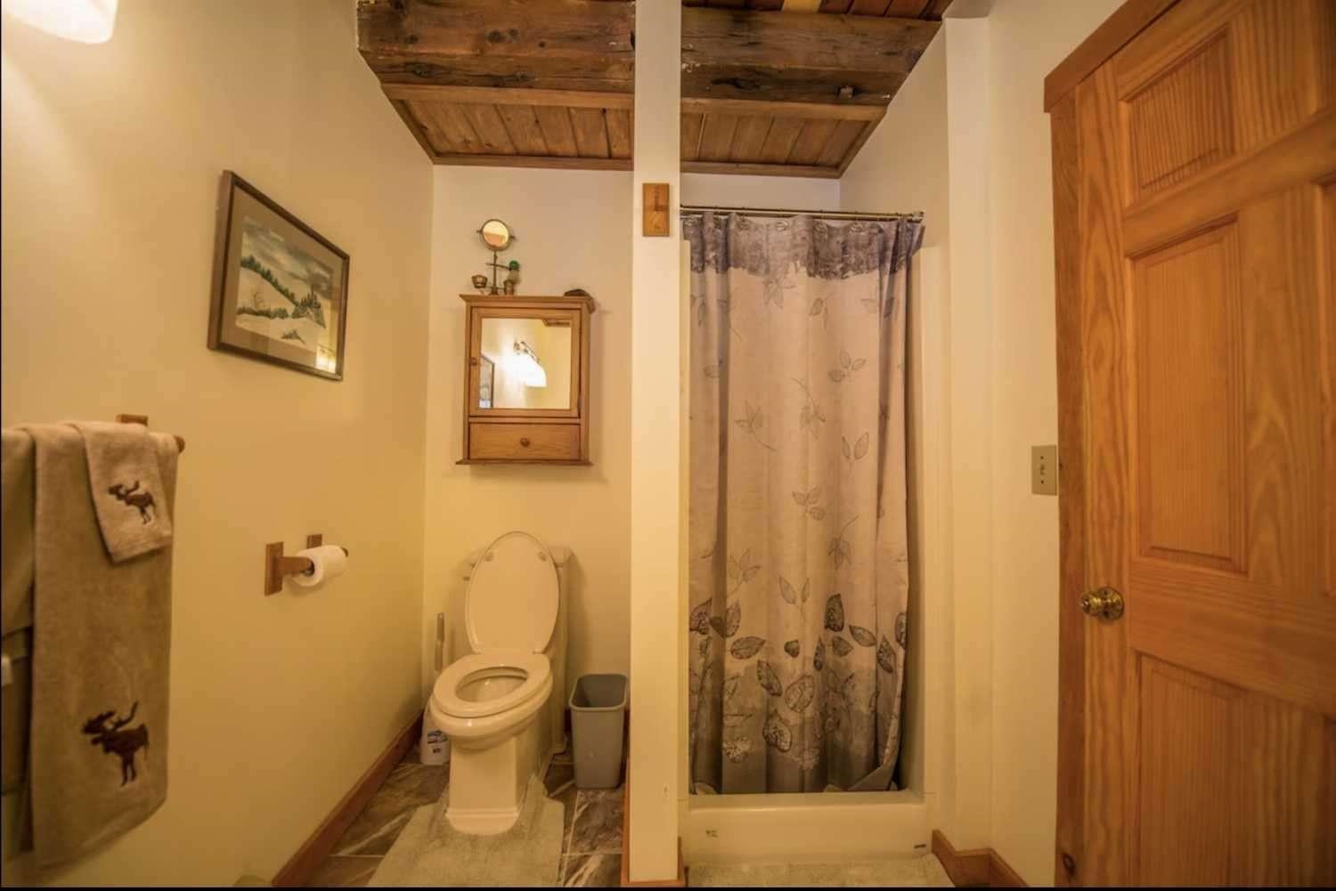 Private Mountain Top Lodge with breathtaking 180-degree views surrounded by town forest and wildlife. This vintage recently rehabbed post and beam lodge has an open floor plan downstairs with a wood stove in the great room/dining room, a kitchen fireplace, two levels of back porches for viewing the white mountains, a front porch for outside dining, full dry basement with W&D, two full baths, 3 bedrooms, (2 double sized with attached porch), 2 cozy day bed nooks for extra guests, gated driveway, satellite internet, garden shed, plenty of parking and complete privacy.