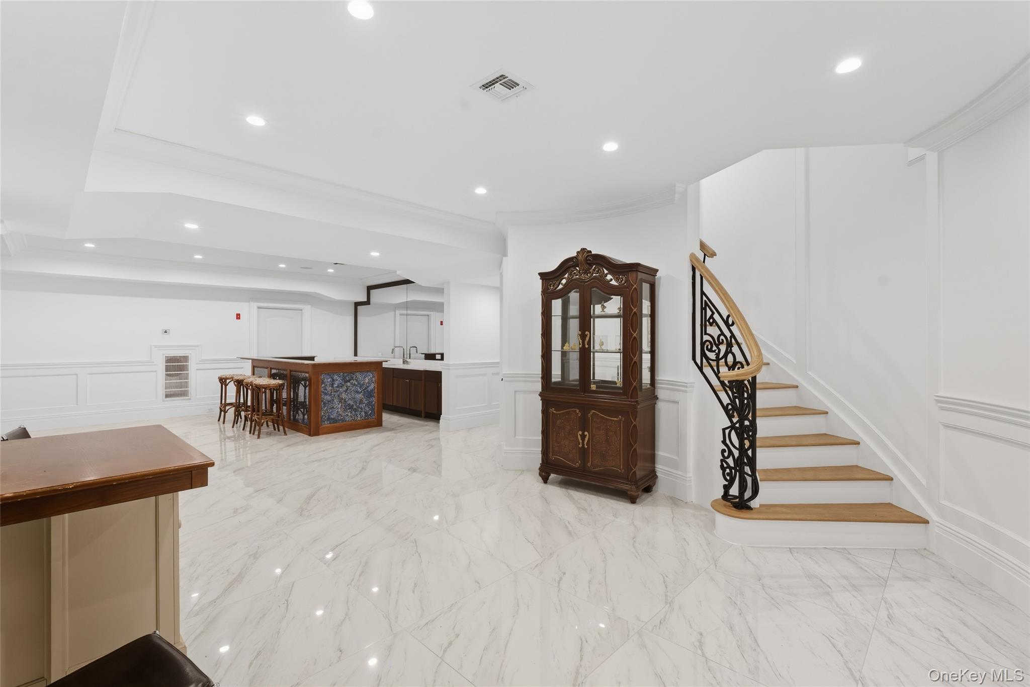A spectacular construction home, with 5 bedrooms, 7 baths, Located in the heart of Great Neck Estate, this 5100 sq. ft masterpiece showcases custom elegance, modern sophistication, and unparalleled craftsmanship throughout. Step through the grand front doors into a soaring 20 plus ft. ceiling foyer with a sweeping winding staircase and dazzling chandeliers. This home offers a private elevator, a gourmet open-concept designer Chef's kitchen, a formal dining room, and elegant studies. The lower level is an entertainer's dream, featuring a full-service bar, gym, and walkout access to the backyard. Additional highlights, include a 3-car garage and a whole-house generator. Top-rated Great Neck school.