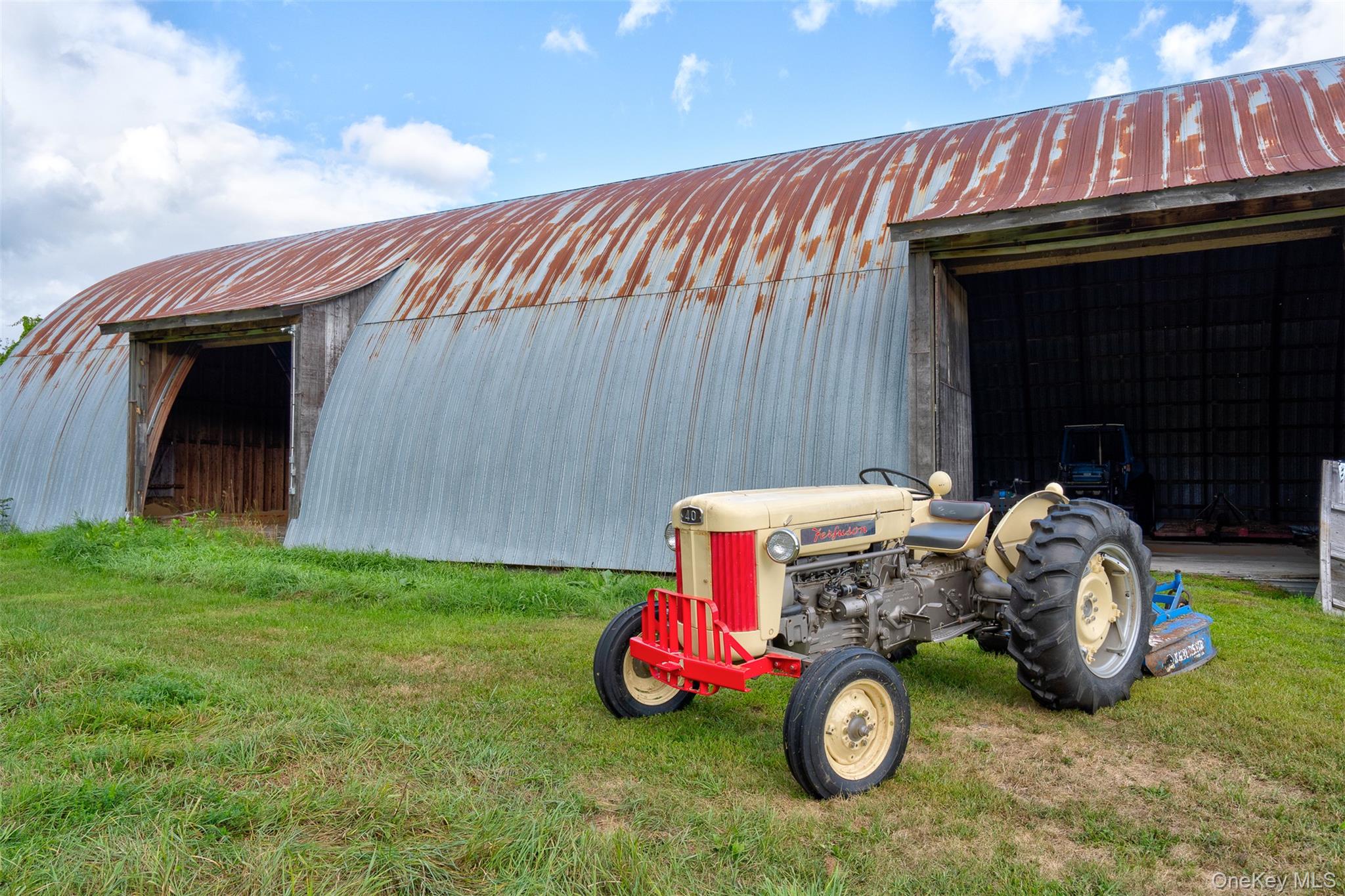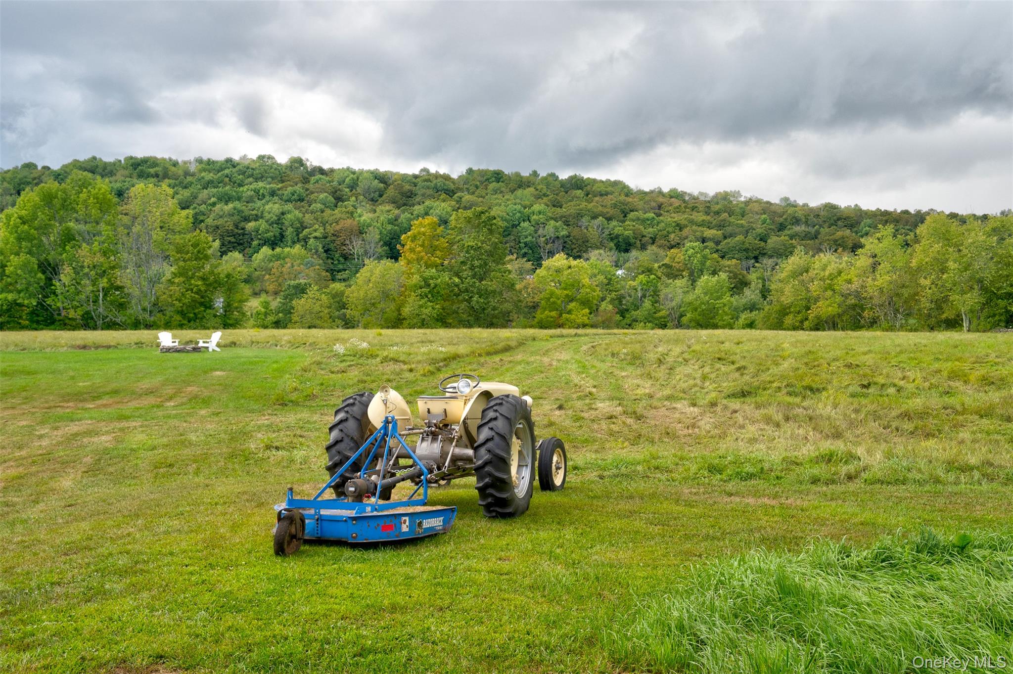 Ensconced in the rolling hills of Obernburg, in the township of Fremont, this 93-acre expanse may be one of the most enchanting blends of forest and pasture to come to market in years. Once the heart of Hillside Dairy, the land carries a quiet legacy of working fields and open sky. • The farmhouse dates to 1909 and is ideally situated, tucked away in its own private world at the end of a long driveway off a quiet, dead-end road. A beautiful wrap-around porch provides a perfect perch for gazing dreamily out over the verdant rolling hills and sunlit meadows. • The property spans across three tax parcels. A local farmer hays the fields, providing agricultural assessments which help keep carrying costs low. There are two ponds, one located in front of the house and the other closer to the driveway. With a little vision, the smaller pond could be expanded, creating an even more dramatic foreground to the farmhouse’s porch-side view. • The home itself is the picture of a country farmhouse: simple, warm, and welcoming. A generous dining room, open to the renovated kitchen, serves as the natural gathering place, equally suited for lively dinners with friends or the ease of an everyday meal. The adjoining family room offers a cozier retreat for reading, quiet evenings, or a favorite series. Off the back of the house is a mud room with a wood-burning stove. An enclosed porch also would be a great spot for making into a 3-season hangout. • A barn, built in the late 1980s to replace an older structure, recalls its past as the hub of the dairy operation, with a lower level once used for milking and the old milk house still intact. Today, it easily houses tractors, ATVs, or equipment, while also offering space for a new purpose. • As for the land itself, it welcomes both vision and restraint. One might carve out equestrian fields, plant an orchard, or allow the retired pastures to remain untouched, a pastoral canvas preserved in its natural beauty. However it is held, this property offers a rare chance to live within history and landscape at once—private, generous, and deeply rooted in the Catskills countryside.