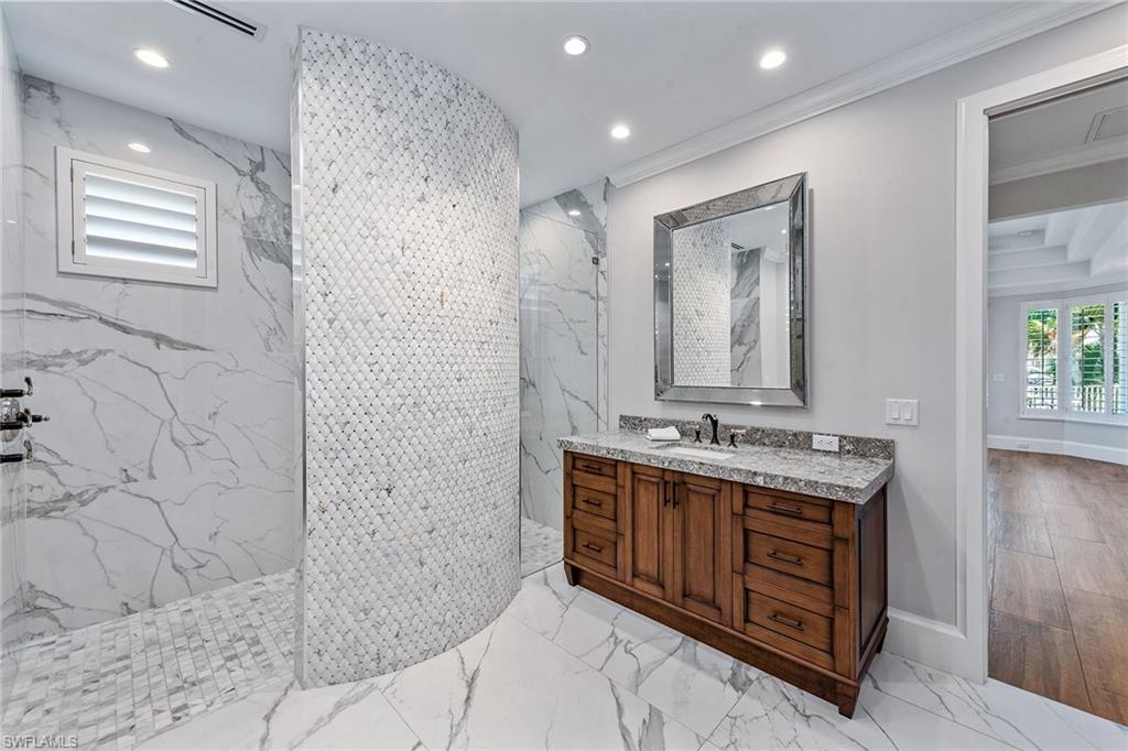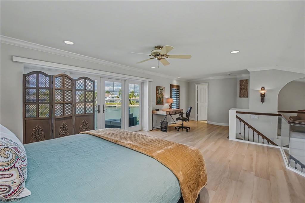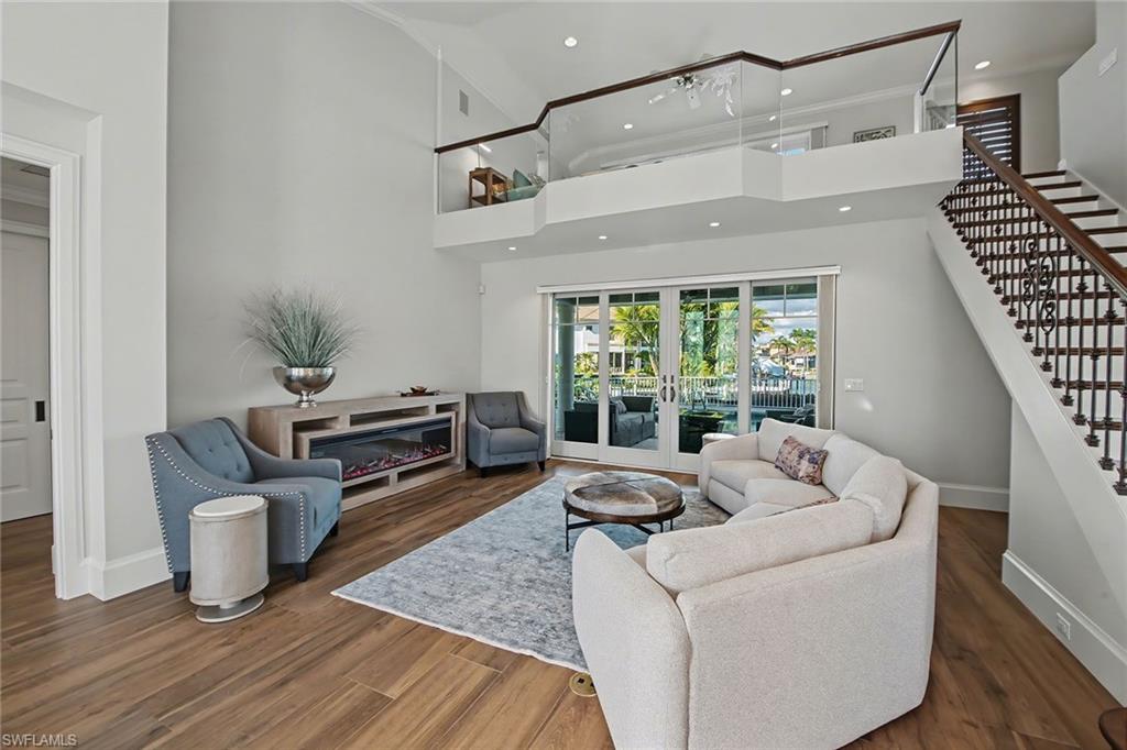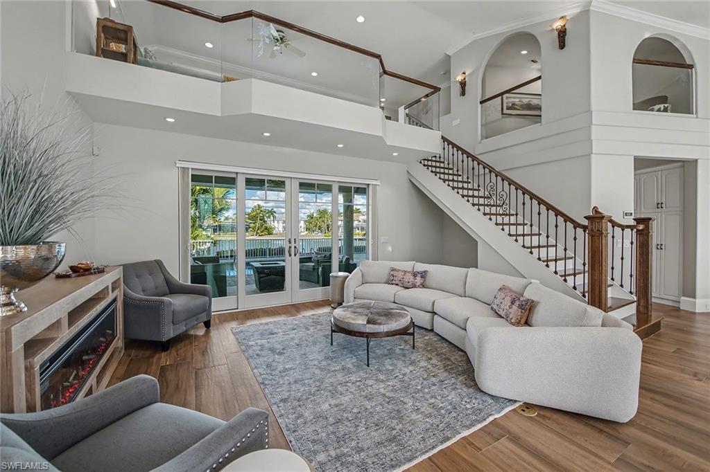Exquisite water direct tip lot estate. Rising with timeless presence on 162 feet of wide water frontage, this Marco Island estate captivates with soaring volumes, walls of glass, and design that celebrates both luxury and light. Set on an extraordinary tip lot just minutes to the Gulf of Mexico, this remarkable residence blends architectural grandeur with refined upgrades, creating a home designed for both luxurious entertaining and private retreat. Upgraded in 2018, the dramatic entryway reveals soaring 30-foot ceilings and a sweeping staircase, while walls of glass frame ever-changing water vistas. A formal dining room, enhanced with a coffered ceiling and sparkling chandelier, sets the stage for elegant gatherings. The chef’s kitchen is fully reimagined with top-of-the-line finishes and a light-filled breakfast nook perfectly positioned to take in serene waterfront views. The owner’s suite is a sanctuary, offering direct lanai access and a spa-inspired bath with designer details throughout. Upstairs, a versatile loft or bedroom opens to its own balcony overlooking the wide waterway — an ideal perch for morning coffee or sunset relaxation. A private guest suite provides walk-out access to the lanai and its own beautifully appointed bath, ensuring comfort and privacy for visitors. On the lower level, a flexible bonus room offers endless possibilities — whether a game room, fitness studio, or additional storage. The outdoor living environment is the crown jewel. A sweeping wraparound lanai embraces the sparkling pool and spa, seamlessly blending indoor and outdoor living. From this vantage point, panoramic water views stretch endlessly, creating a spectacular backdrop for entertaining or quiet reflection. A private dock and lift provide effortless access to open waters, completing a lifestyle defined by boating, leisure, and luxury. A rare offering, this estate embodies the very best of Marco Island — grand in scale, exquisite in detail, and designed for a life well lived! (Some photos are virtually staged. )