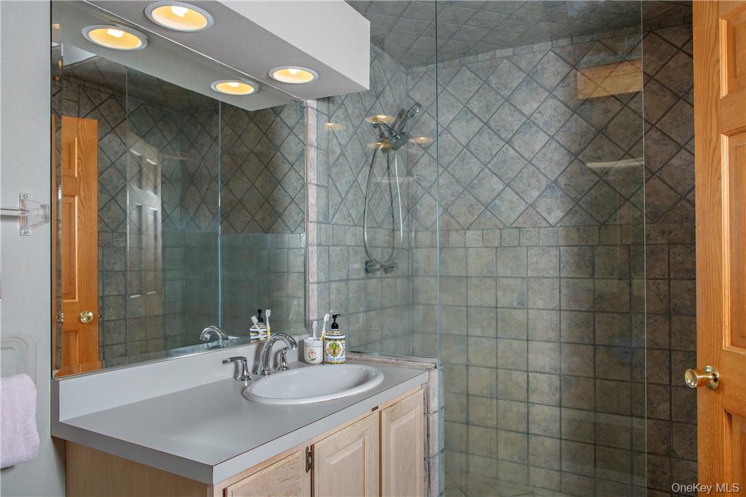 Harmony Woods, an enclave of beautiful homes on the outskirts of the Village. This contemporary home has so much living space. Meticulously & continuously maintained by the current owners, there is nothing to be done! The 2 story foyer w/tile floors leads to the sunken LR which has high ceilings, a 2 sided fireplace, large windows & w/w carpet. There is formal DR, 2 powder rooms, then on to the spacious chef's kitchen which is stunning & continues to encompass the family rm which shares the fireplace with the LR. Granite counters, a Wolf stove (gas) DW, Fridge, a dining area, 2 pantries & sliders to the comfortable deck outside. There is a mud room & laundry. The triple garage is accessed here. Upstairs, the main BR w/ bathroom suite, office & closets. There are 3 additional BR's w/carpet, & a full bath. The expansive lower level has sliders to a deck, a huge family room, a library, guest room, full bath, laundry & storage. Hard wood floors as seen. Landscaped w/mature plantings, and a shed w/electricity. Only 90 min to NYC, by car or train. Close to schools, houses of worship, the village, restaurant and shops.
