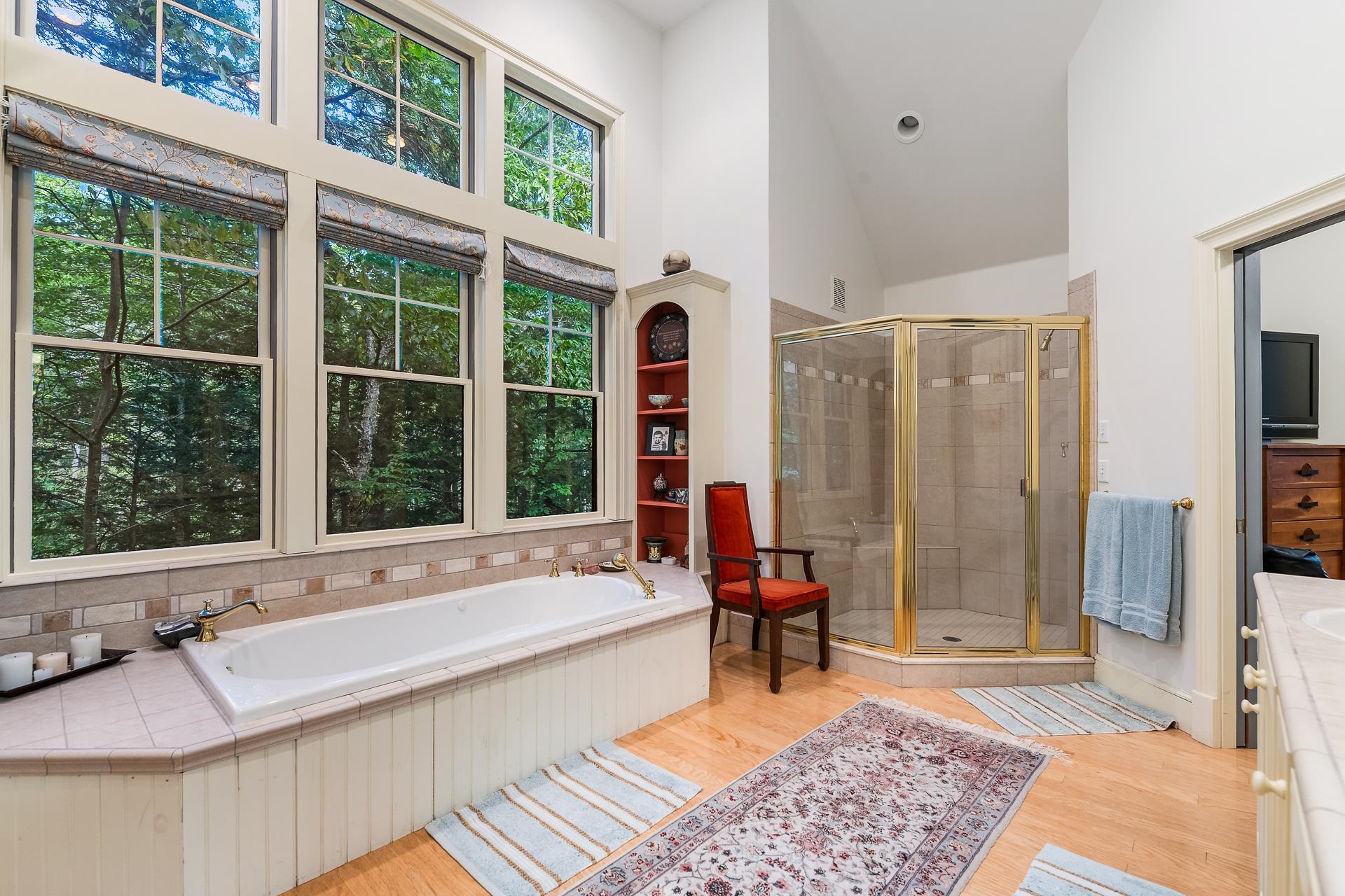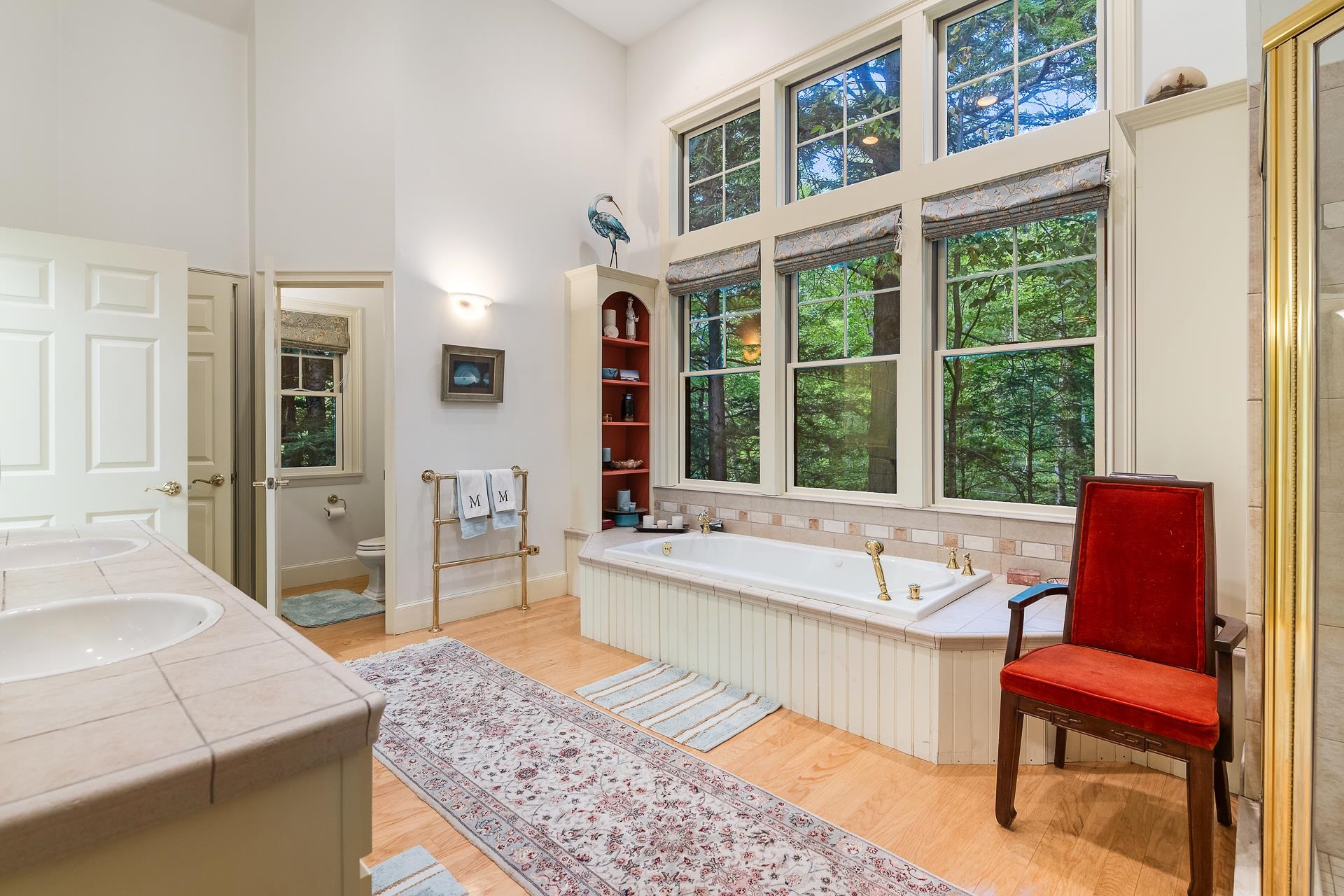 Stunning Luxury Home in Eastman Community! This elegant 4BR/4. 5BA home offers exceptional craftsmanship and flexible living spaces, including a beautifully appointed in-law suite/ADU above a detached garage. The main residence features a grand living room with vaulted ceilings, red brick double-sided fireplace, and French doors leading to a sun-drenched three-season sunroom with gas stove and access to the back deck. The formal dining room connects to a chef’s kitchen with cherry cabinets, abundant storage and expansive counters. A separate wet bar beverage station is perfect for morning coffee or evening entertaining. The first-floor primary suite is a retreat with spa-like bath, soaking tub, oversized shower, and walk-in closet. Additional highlights include a cozy library with built-ins, 2 en-suite bedrooms upstairs, plus a 4th bedroom that could also be used as a den or office, and a craft room/playroom. Warm hardwood floors, built-ins and 3 fireplaces add charm throughout. Outside, enjoy two 2-car garages: one with the in-law suite/guest quarters, the other with a generous office or rec room. All this privately situated back from the road on 2+ acres. Just minutes from South Cove Activity Center to easily access all the incredible amenities Eastman offers throughout the year. Lake activities, golf, tennis, pickleball, XC ski trails, ice skating, an indoor pool, fitness center and more. A truly special property in a sought-after community!