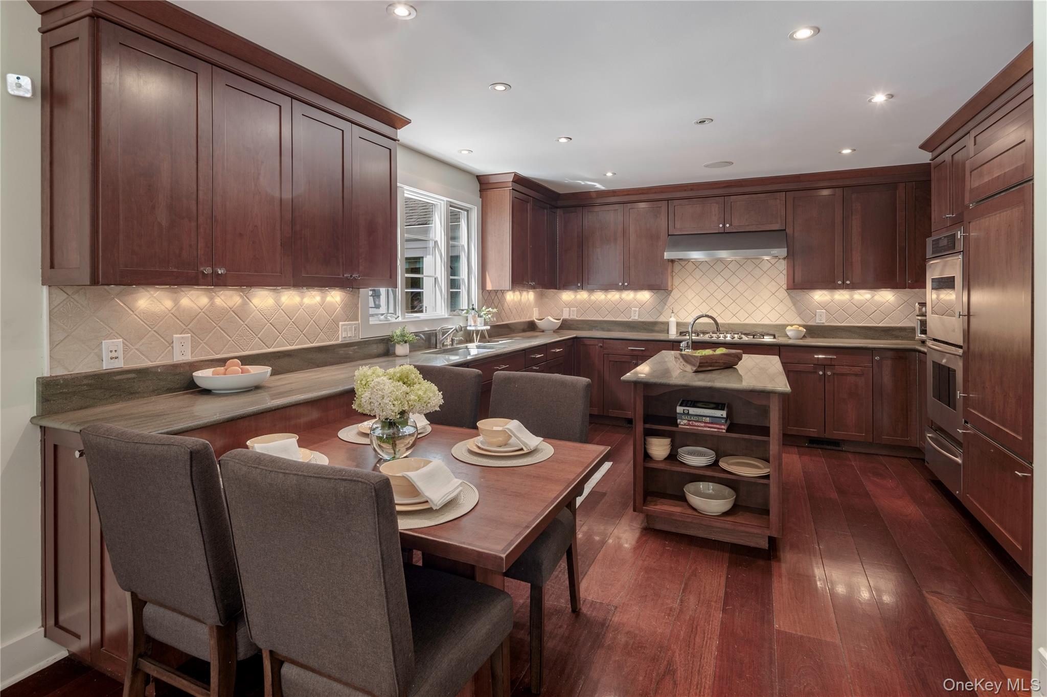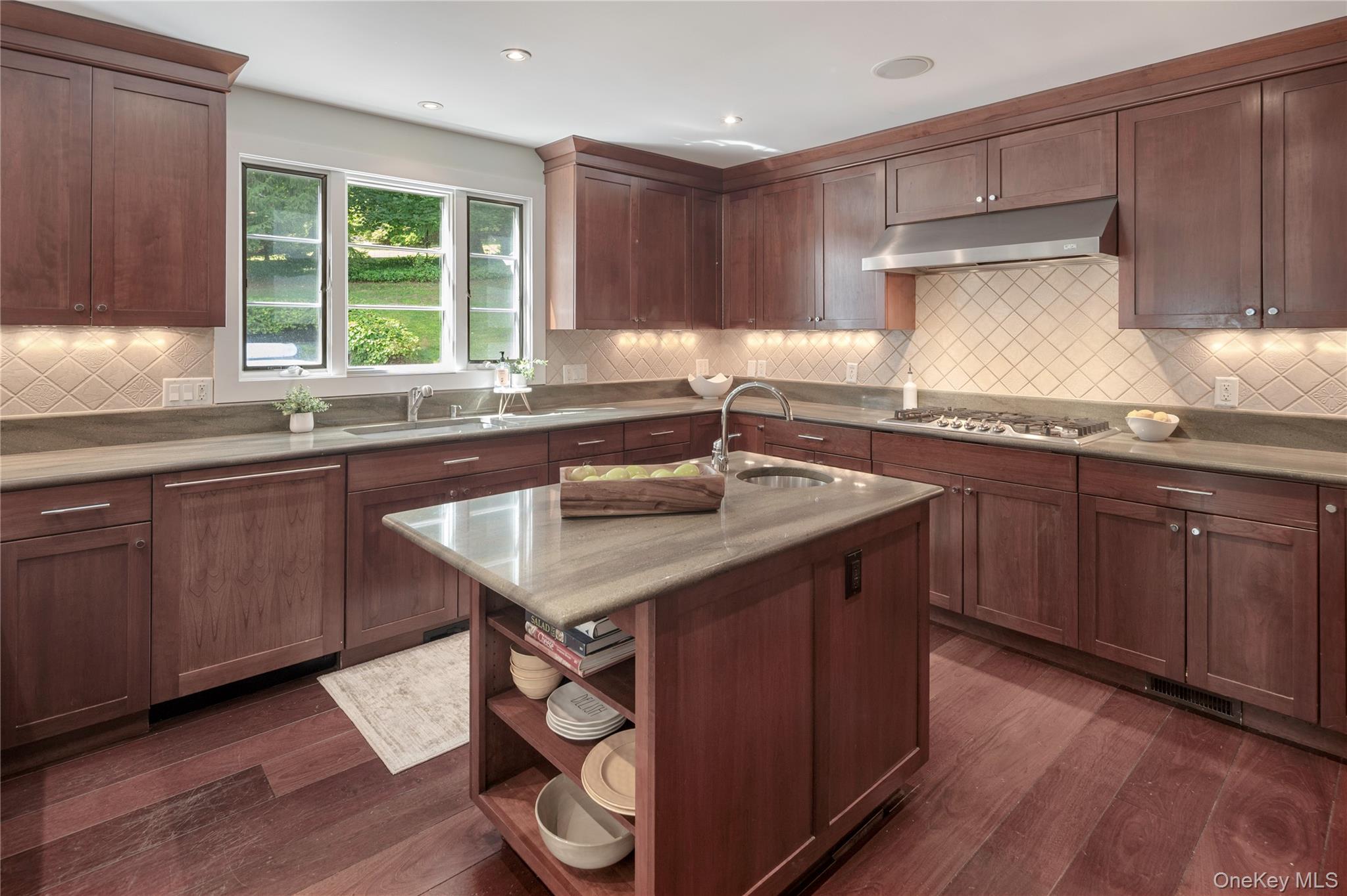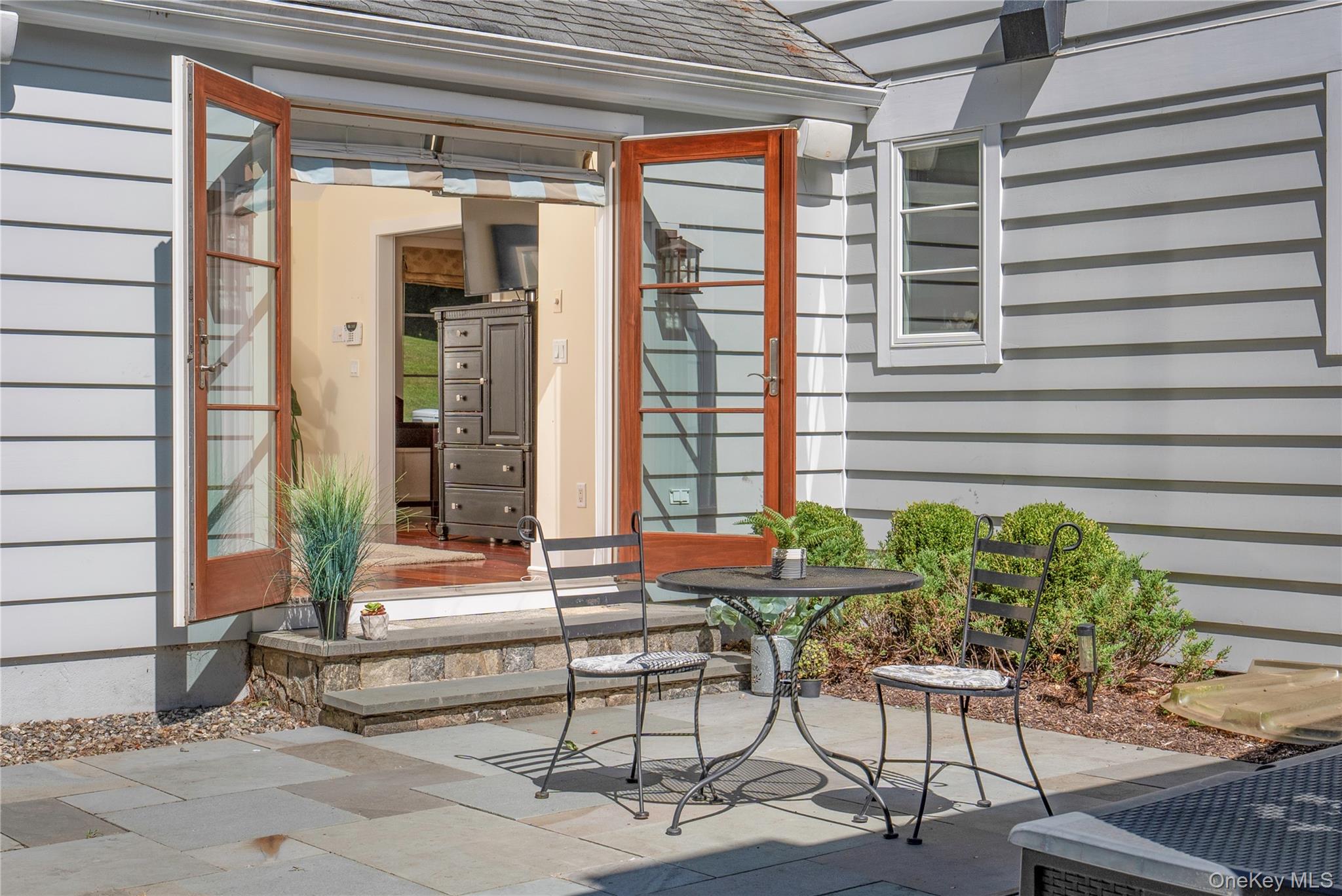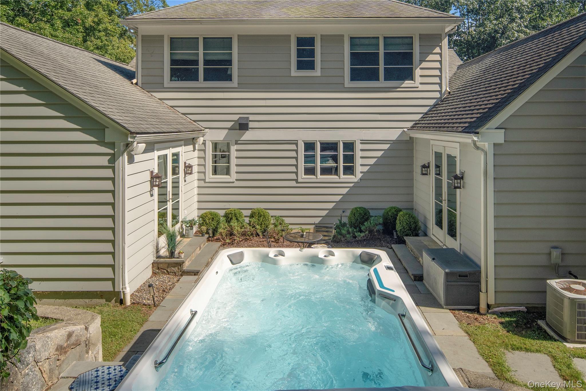 Welcome to 56 Annandale Drive, Chappaqua, a capacious and captivating Cape Cod commandingly set on 1. 4 acres in sought-after Lawrence Farms East within walking distance to Mount Kisco Country Club, Kittle House, Chappaqua Crossing, Horace Greeley High School and the town of Mount Kisco. Built for entertaining, every day is a holiday to celebrate in the open, spacious interiors, starting with the inviting front-facing living room with wood-burning fireplace. The gourmet kitchen is equipped with solid wood cabinetry with pull-out shelving, tile backsplash, stone countertops, center island with prep sink, 5-burner cooktop, dual Thermador in-wall ovens, GE microwave, Sub-Zero refrigerator/freezer, and a Viking dishwasher. Host feasts or fests in the dramatic formal dining room with wood burning fireplace and opposing sets of French doors to opposing patios. BBQ on the built-in grill and dine alfresco on the patio. The party continues in the extra-spacious family room with large windows on three sides. Main-level private quarters include a front-facing in-law or guest suite with private, ensuite bath; and the king-sized primary suite endowed with its own sitting/dressing area, a sumptuous, private, resort-worthy ensuite bath, and French doors to the patio with swim spa for rejuvenation or relaxation. Completing the main-level are the entry foyer with two separate coat closets, broom closet and powder room; and a front-to-back mud room with front- and rear- facing French doors and garage access. Upstairs houses a wide, front-facing lounge or play space adjoining two rear-facing bedrooms with built-ins, outfitted, dormered closets with attic access, and sharing a “Jack-n-Jill” bath with double vanity, linen closet and tiled shower with in-wall jets and regular and handheld showerheads. Downstairs sit two generously sized recreation rooms; a full bath with shower; a laundry room equipped with Whirlpool front-loading washer and dryer, sink, ironing board and built-in cabinetry; storage; mechanicals; and access to the attached 3-car garage with electric car charger. An alarm system and a standby, backup, whole house generator help protect it all. A sweeping drive provides plenty of off-street parking. Lovely lawns and landscaping add colorful accents, and mature and established trees ring the perimeter of the property. A distinctive residence in a notable location.