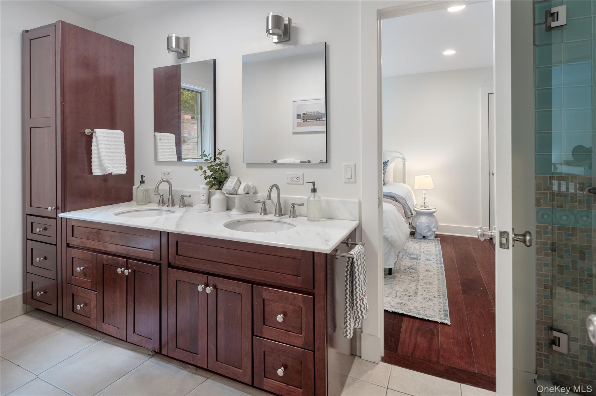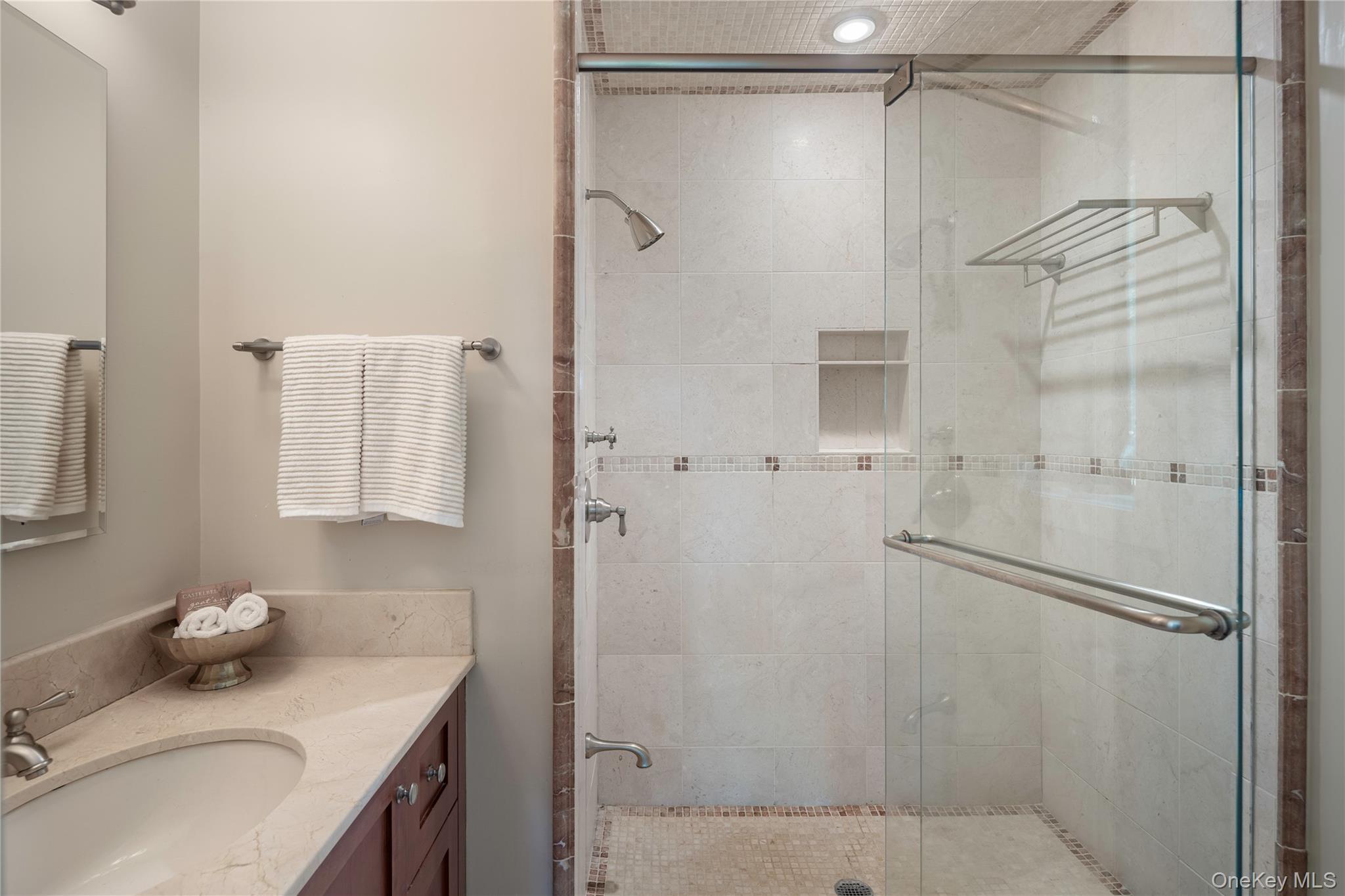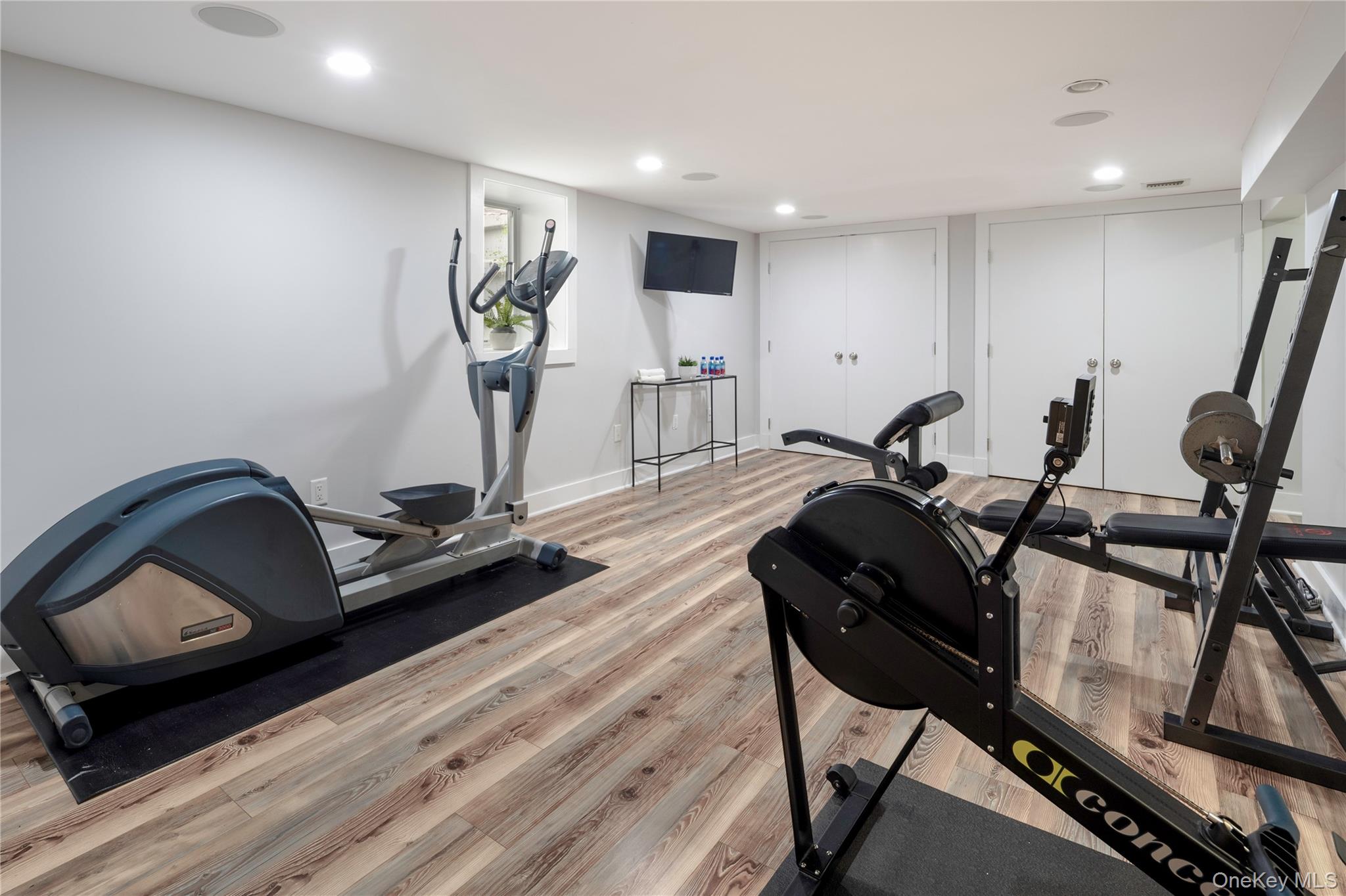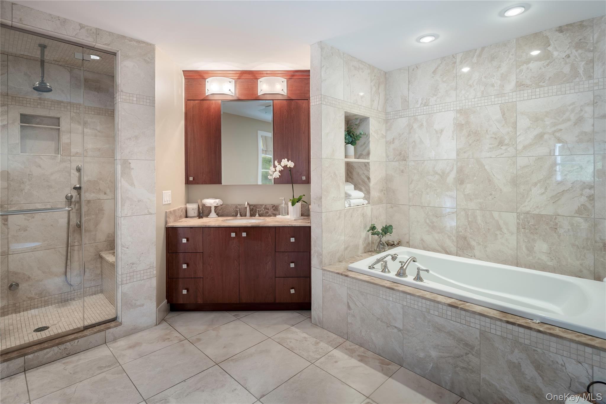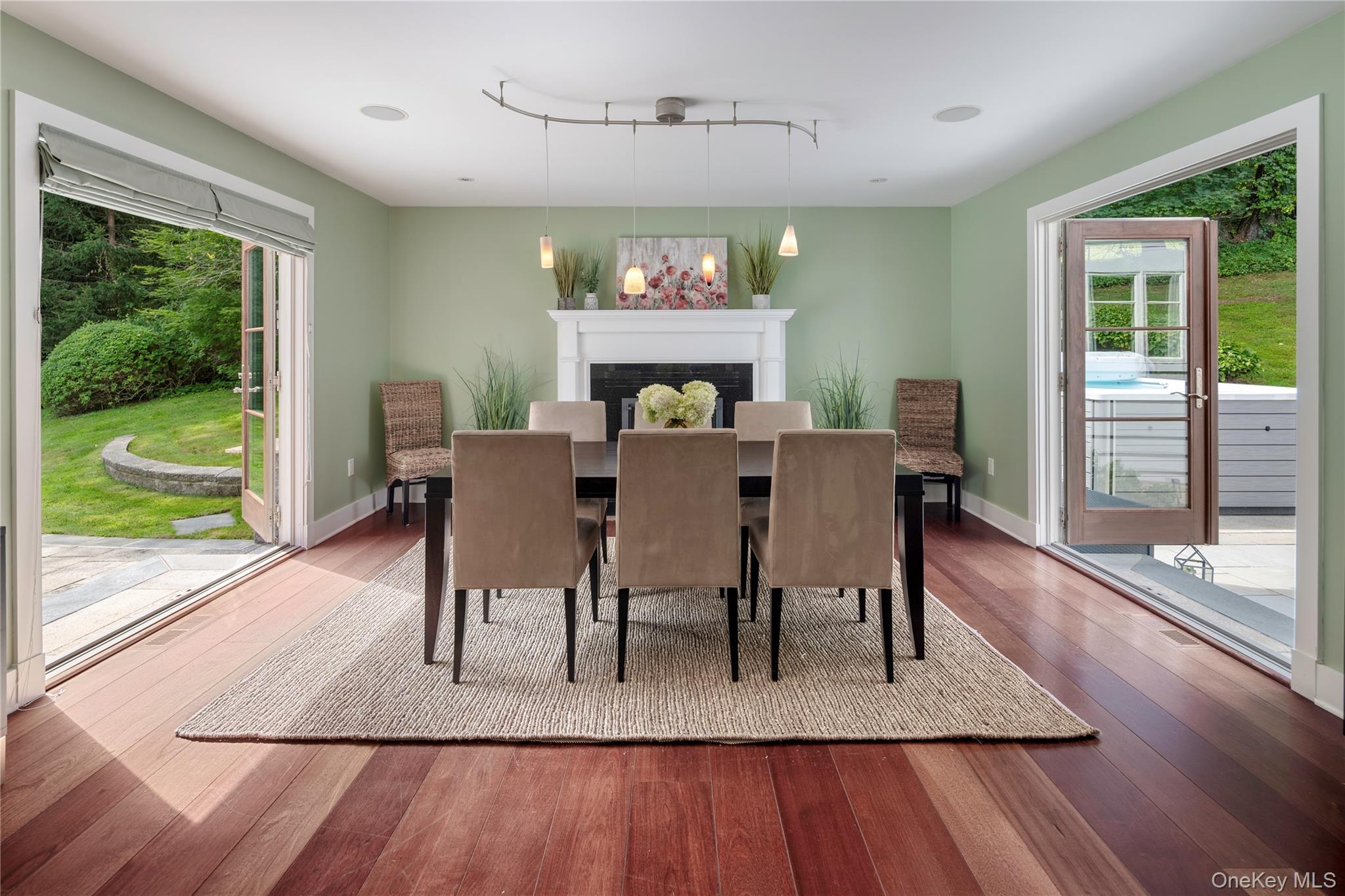 Welcome to 56 Annandale Drive, Chappaqua, a capacious and captivating Cape Cod commandingly set on 1. 4 acres in sought-after Lawrence Farms East within walking distance to Mount Kisco Country Club, Kittle House, Chappaqua Crossing, Horace Greeley High School and the town of Mount Kisco. Built for entertaining, every day is a holiday to celebrate in the open, spacious interiors, starting with the inviting front-facing living room with wood-burning fireplace. The gourmet kitchen is equipped with solid wood cabinetry with pull-out shelving, tile backsplash, stone countertops, center island with prep sink, 5-burner cooktop, dual Thermador in-wall ovens, GE microwave, Sub-Zero refrigerator/freezer, and a Viking dishwasher. Host feasts or fests in the dramatic formal dining room with wood burning fireplace and opposing sets of French doors to opposing patios. BBQ on the built-in grill and dine alfresco on the patio. The party continues in the extra-spacious family room with large windows on three sides. Main-level private quarters include a front-facing in-law or guest suite with private, ensuite bath; and the king-sized primary suite endowed with its own sitting/dressing area, a sumptuous, private, resort-worthy ensuite bath, and French doors to the patio with swim spa for rejuvenation or relaxation. Completing the main-level are the entry foyer with two separate coat closets, broom closet and powder room; and a front-to-back mud room with front- and rear- facing French doors and garage access. Upstairs houses a wide, front-facing lounge or play space adjoining two rear-facing bedrooms with built-ins, outfitted, dormered closets with attic access, and sharing a “Jack-n-Jill” bath with double vanity, linen closet and tiled shower with in-wall jets and regular and handheld showerheads. Downstairs sit two generously sized recreation rooms; a full bath with shower; a laundry room equipped with Whirlpool front-loading washer and dryer, sink, ironing board and built-in cabinetry; storage; mechanicals; and access to the attached 3-car garage with electric car charger. An alarm system and a standby, backup, whole house generator help protect it all. A sweeping drive provides plenty of off-street parking. Lovely lawns and landscaping add colorful accents, and mature and established trees ring the perimeter of the property. A distinctive residence in a notable location.