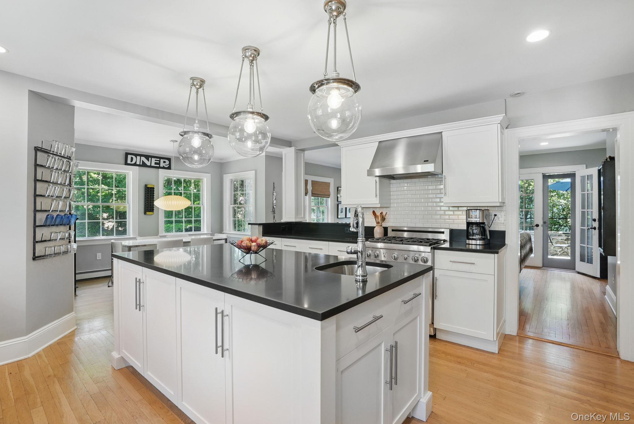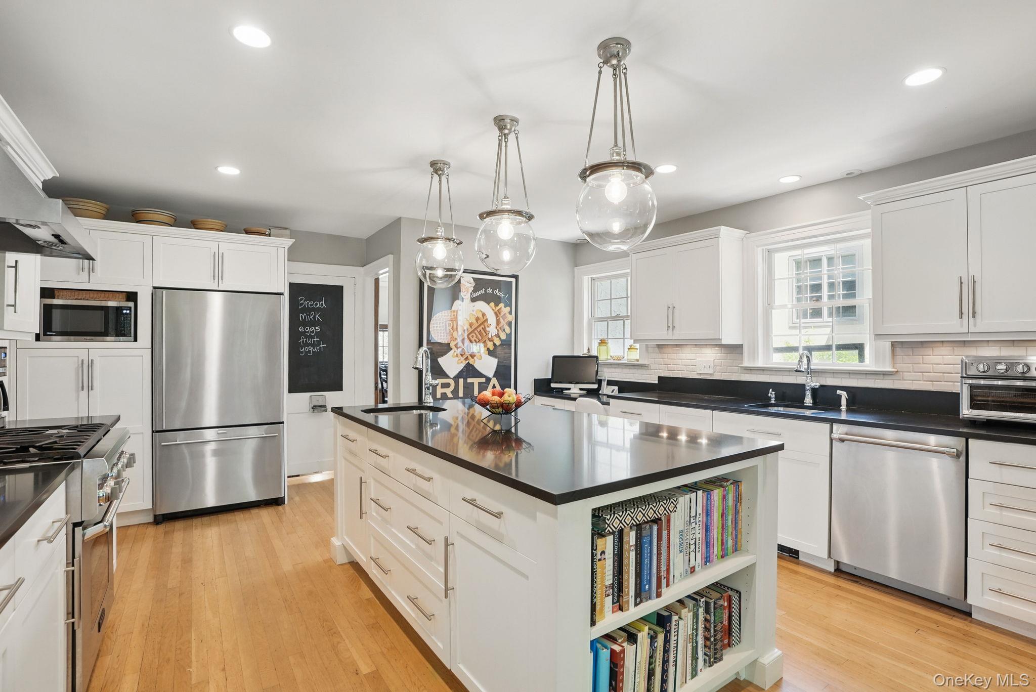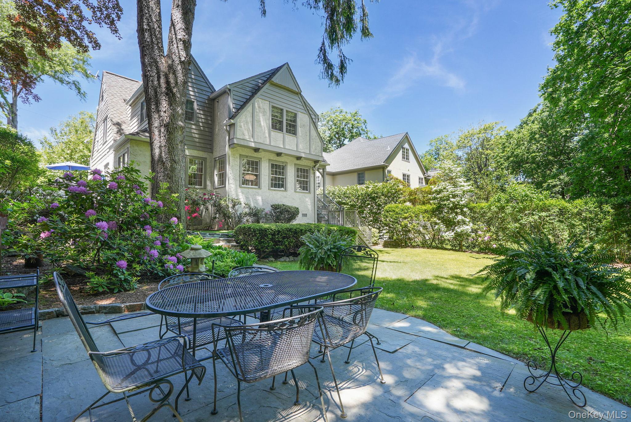 Welcome to this bright and beautifully expanded Tudor in Scarsdale’s sought-after Quaker Ridge neighborhood. The first floor greets you with an inviting living room featuring a wood-burning fireplace, and French doors that open to a private stone patio. Host memorable gatherings in the elegant formal dining room, or enjoy everyday living in the heart of the home—the stunning open eat in kitchen with tucked away private office space and family room. This chef’s space boasts an oversized granite-topped center island, premium stainless-steel appliances, and a seamless flow into the sun-filled family room, perfect for both entertaining and relaxation. Upstairs, enjoy the spacious primary suite with vaulted ceiling, luxurious bath and generous closet space, joined by three additional light-filled bedrooms and a full hall bath. The conveniently located second-floor laundry makes daily routines effortless. The finished lower level features a full bath and flexible space ideal for a home gym, playroom, or guest accommodations. Outside, the level, expansive yard and bluestone patio with stone firepit invites outdoor dining, games, and leisurely afternoons. Meticulously maintained and truly move-in ready, this home checks every box for today’s buyer!