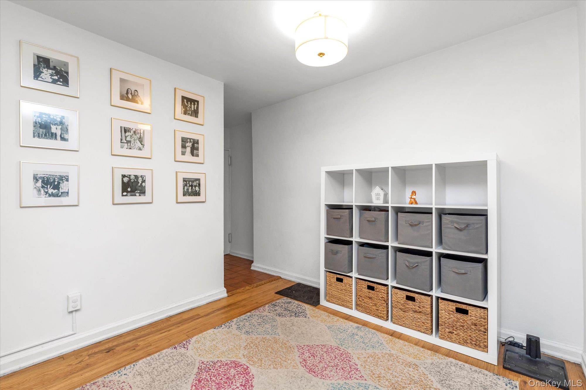 East Rockaway Gardens – Spacious First-Floor Co-op. This beautifully maintained first-floor unit features an updated bathroom, a galley kitchen, and a large living/dining room combination. The primary bedroom offers a walk-in closet, with additional hallway closets providing ample storage. Hardwood floors run throughout, adding warmth and charm. Set within a meticulously landscaped community in the heart of East Rockaway, this home is just moments from the Long Island Rail Road, shopping, dining, parks, and schools. No pets permitted. The complex offers a water filtration system and assigned parking in a private lot for an additional fee of $40.