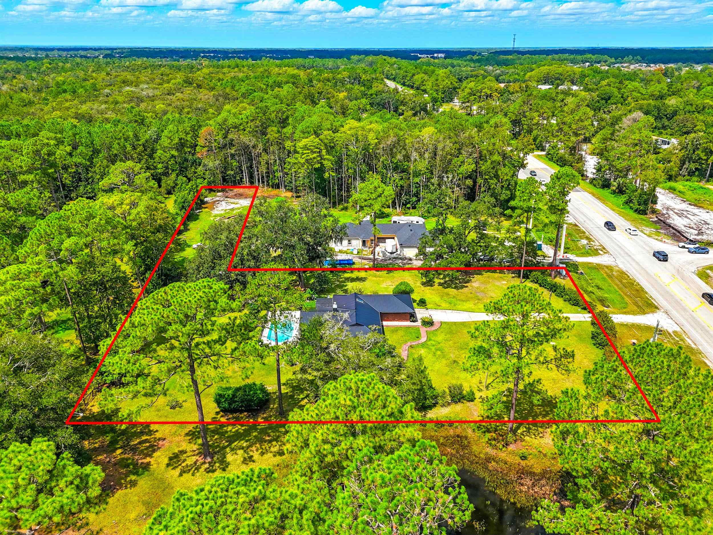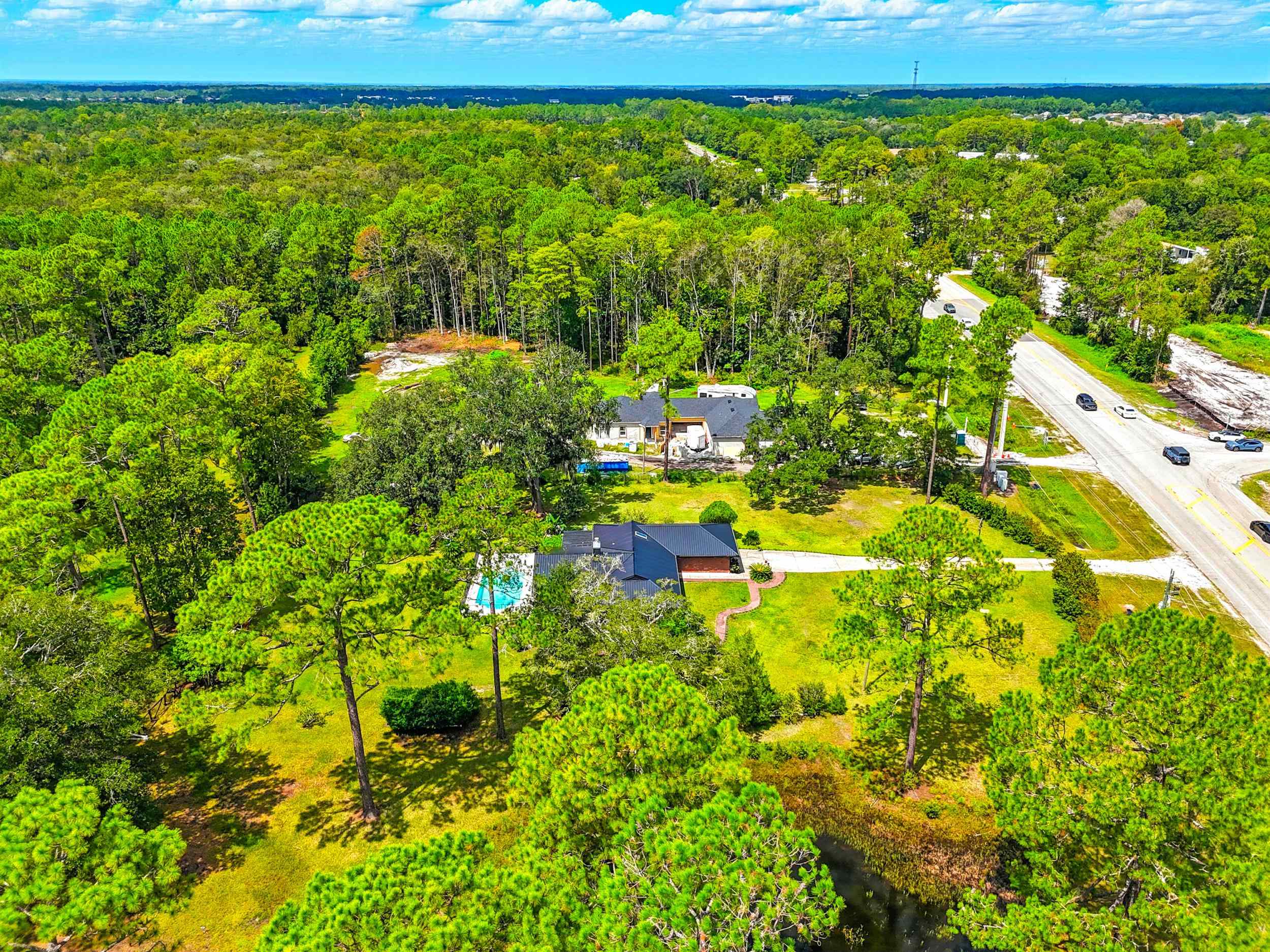 THIS OPEN RURAL ZONED PROPERTY CAN BE USED FOR A RESIDENTIAL HOMESTEAD OR FOR AGRICULTURAL USES AS WELL AS A HOME-BASED BUSINESS. SELLERS ARE MOTIVATED, BRING ALL OFFERS! Potential allowable uses include: plant nurseries, general stores and feed stores, special care housing, veterinary offices, animal hospitals, kennels and other animal boarding facilities, primitive campgrounds, retreats, private clubs, riding academy, hunting camp, wildlife preserve or church. Now offered at an exceptional new price — don’t miss this opportunity to own one of the best values in World Golf Village area. Tucked away in the peaceful countryside of historic Saint Augustine, this one-of-a-kind property combines rural charm with city convenience. Ideally located just 2 miles from the I-95 World Golf Village exit and only 11 miles from the ocean, this home offers a lifestyle that’s hard to find anywhere else in the area. The well-built brick residence has been fully remodeled into an open-concept floor plan and features a brand-new galvanized metal roof. A stunning Great Room addition, completed in 2024, expands the living space and makes this home truly exceptional. Step inside to find high-beamed ceilings, elegant chandeliers, rich hardwood floors, and spacious areas perfect for gatherings. The newly designed kitchen showcases luxurious granite countertops, Italian travertine flooring, stainless steel appliances, and a generous walk-in pantry. The show-stopping Great Room boasts a dramatic 16-foot cathedral ceiling with exposed beams, seven oversized 6x6 ft windows, gleaming hardwood ceilings, elegant chandeliers, rich hardwood floors, and spacious areas perfect for gatherings. The newly designed kitchen floors, and a striking two-way wood-burning fireplace crafted from natural Tennessee mountain stone. Bathed in natural light, this space offers tranquil views of the property and seamless access to the pool and covered patio. Opportunity awaits—the covered patio rests on a concrete slab, creating the potential for a future 4th bedroom or in-law suite with private access to both the Great Room and pool area. Set on 1. 99 acres of high and dry land (no flood zone), the property is surrounded by lush landscaping that includes majestic Florida live oaks, citrus trees, and year-round blooming botanicals. Local wildlife such as wild turkey, deer, and a variety of birds can often be spotted roaming the grounds, while the land also supports livestock, as many neighboring farms do. Three outbuildings add even more value: a small barn with three sections (ideal for livestock and storage) complete with a chicken coop and eight nesting boxes, plus two sheds—including one with a side carport. With endless possibilities for both living and lifestyle, this property offers a rare blend of elegance, functionality, and natural beauty. Don’t miss your chance to see it in person—schedule your showing today!