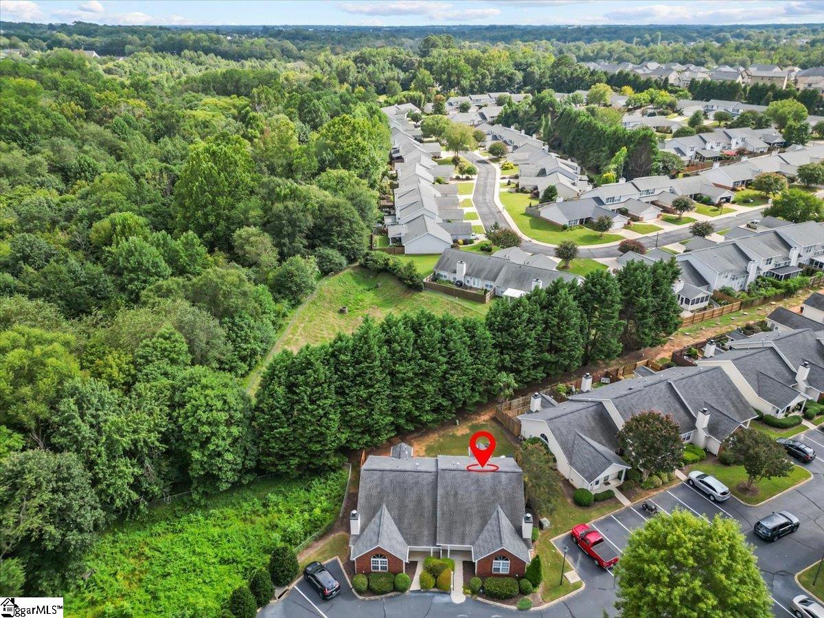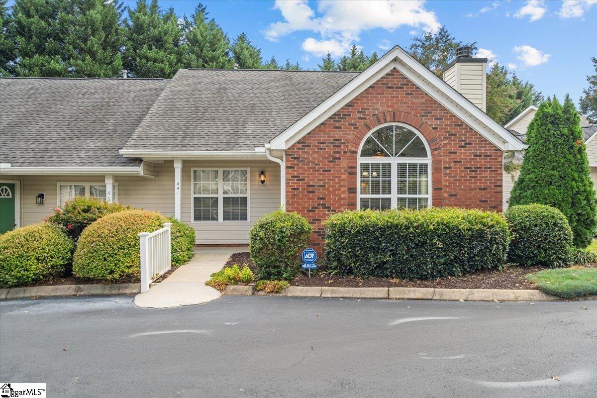 Located less than a mile from local coffee shops, restaurants, and grocery stores, this home blends comfort with an ideal location. Check out this single-story 2 bedroom, 2 bathroom end-unit townhome tucked away at the end of a cul-de-sac? This one is a must see. Step inside to a spacious living and dining area featuring vaulted ceilings and a cozy gas fireplace, perfect for relaxing or entertaining. Each bedroom is thoughtfully designed with its own adjoining bathroom, providing comfort and privacy. Enjoy mornings or evenings on the back patio overlooking green space, adding a peaceful touch and privacy. With no steps at the entry, this home offers easy accessibility and convenience.