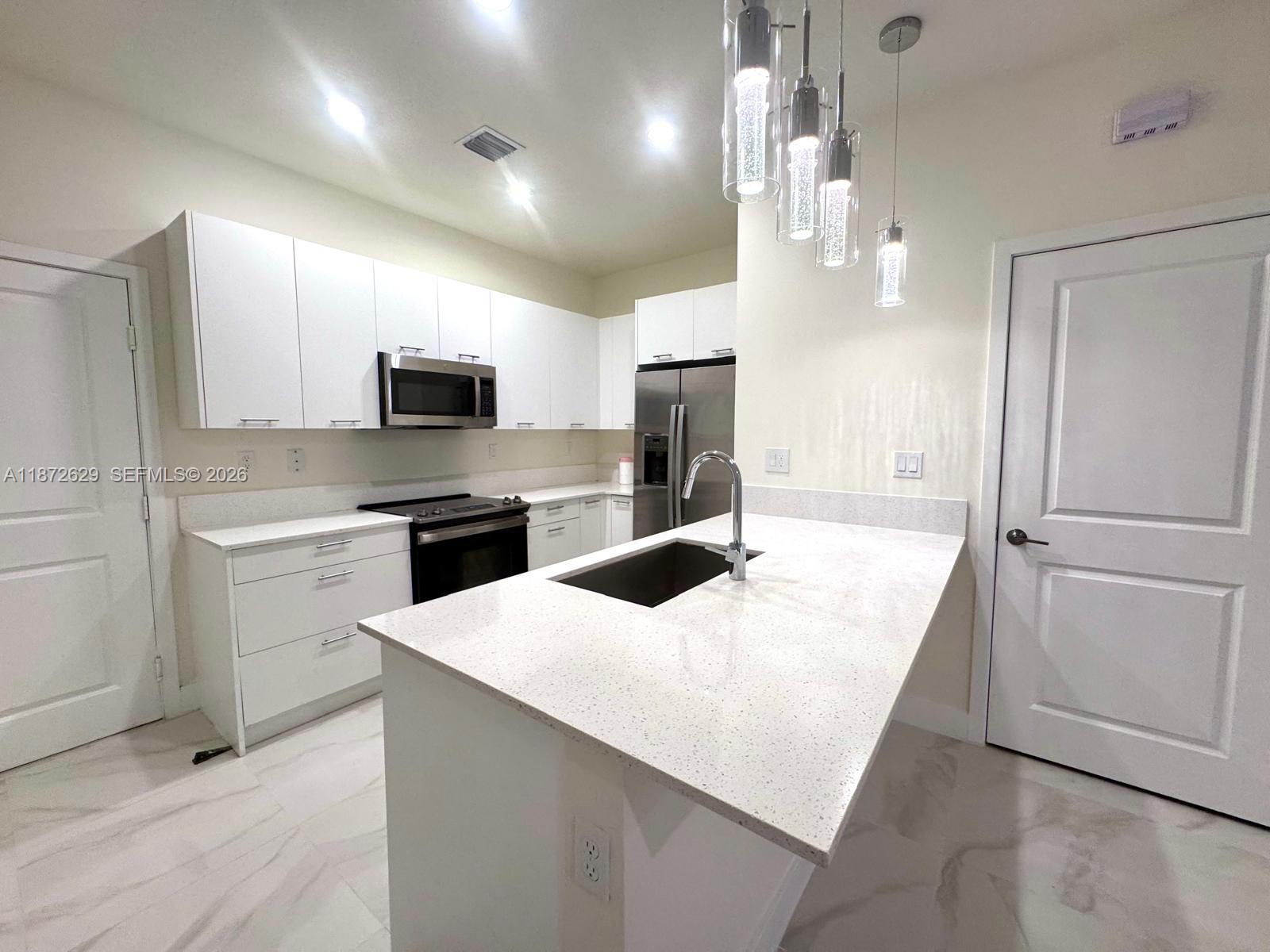 Move-in ready modern 3-story townhouse in URBANA at Downtown Doral, freshly painted and featuring brand-new ceramic floors throughout, offering a crisp and contemporary feel. The home features 3 bedrooms, 2. 5 bathrooms, an open kitchen with an island, and spacious dining and family areas ideal for comfortable everyday living and entertaining. The private rooftop terrace adds exceptional value—perfect for gatherings, sunsets, or a relaxed outdoor lifestyle. A 2-car garage and a versatile third-floor space ideal for a home office, media room, or playroom enhance functionality. Located on a quiet street just steps from Downtown Doral’s dining, shopping, golf courses, and top-rated schools. Residents enjoy a resort-style clubhouse with pool, fitness center, and social areas, plus quick access to major highways and Miami International Airport. Clean, turnkey, and available now—an excellent opportunity for tenants seeking quality, location, and lifestyle.