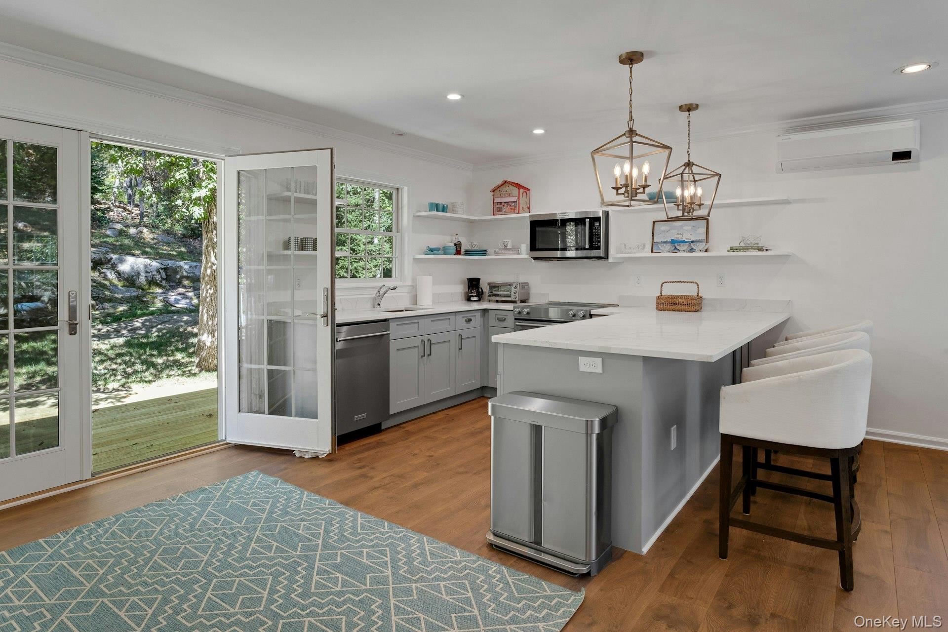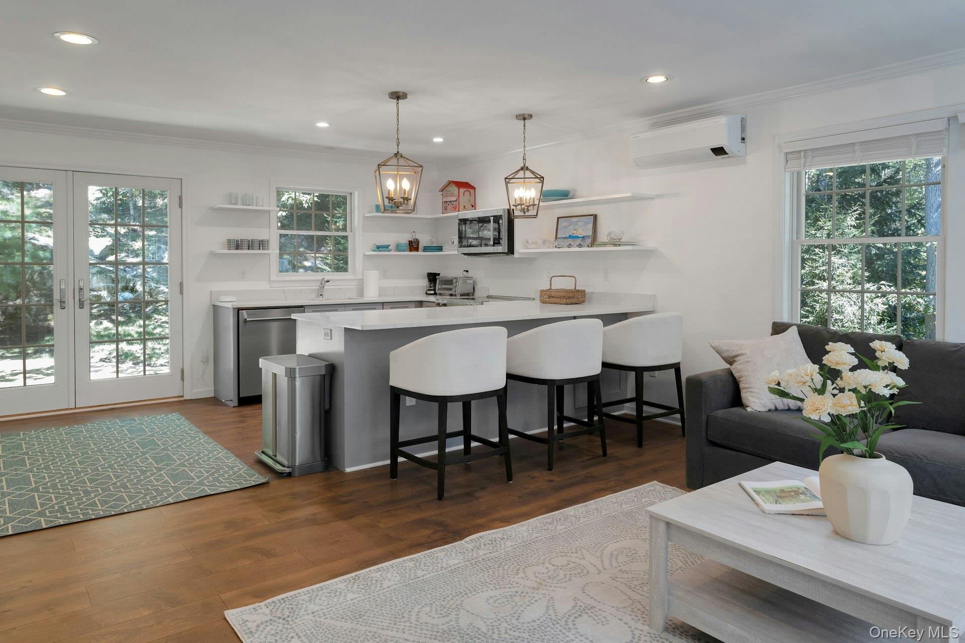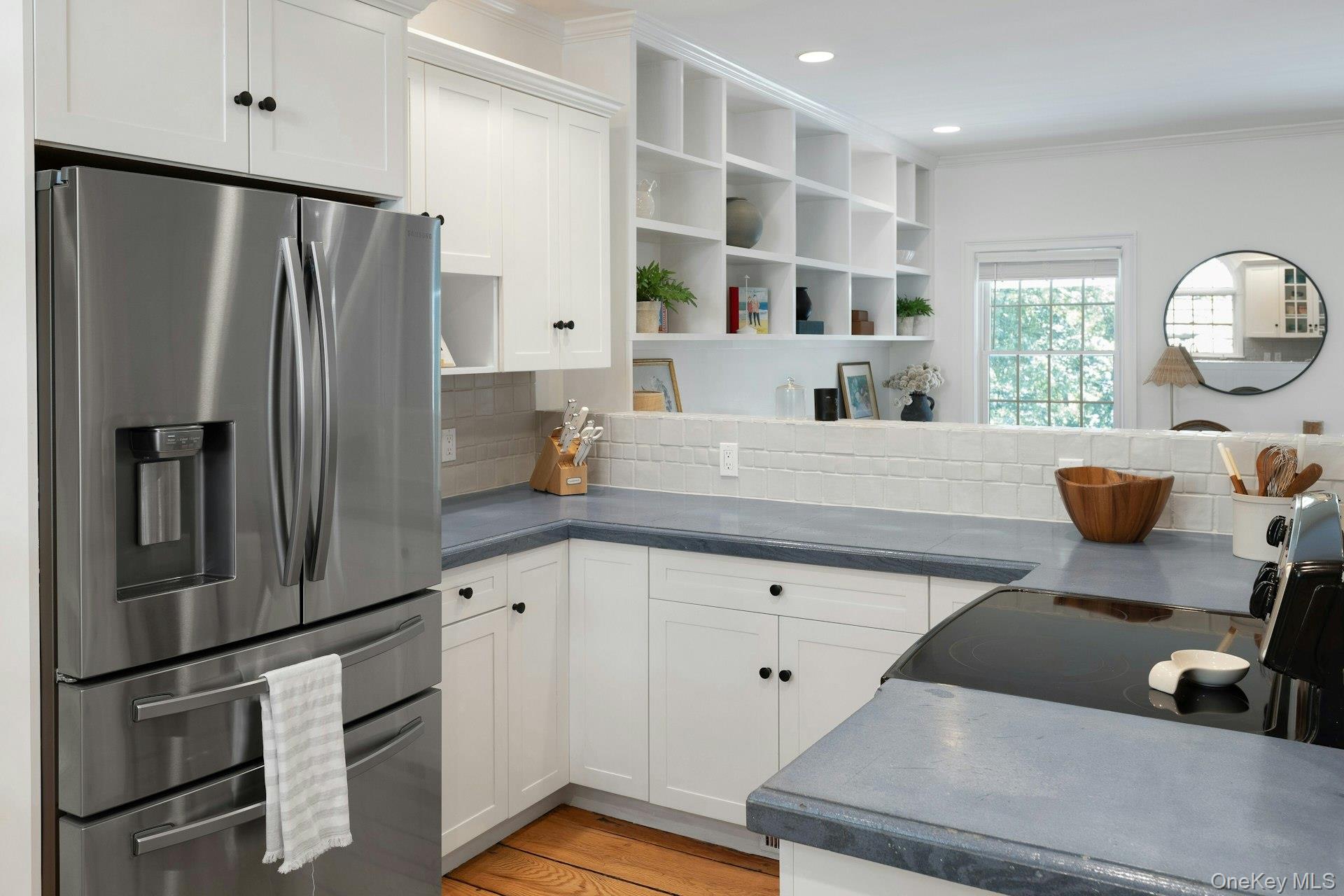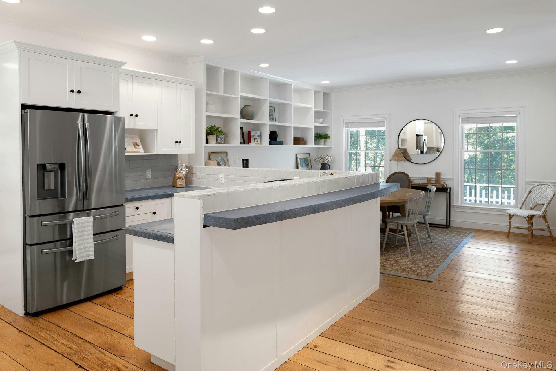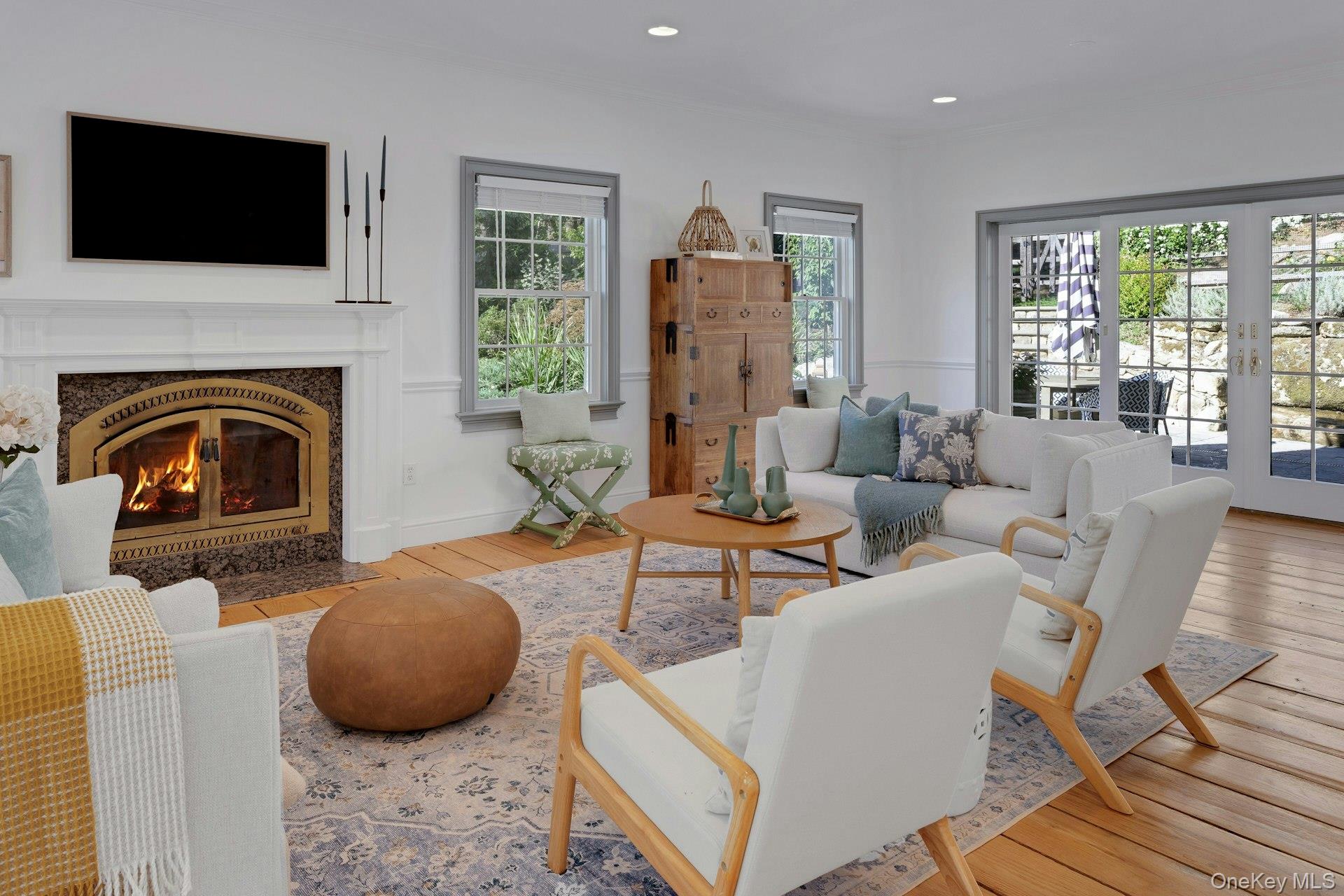 New to the market! This four bedroom, Colonial Farmhouse with a rocking chair porch features a classic layout of rooms. There is a private and quiet, newly built in-ground pool with a large built-in shelf for sunbathing/ kids/ pets and an electric cover. The pool is dramatically sited among large natural rocks. Vintage wide board flooring reclaimed from an antique Virginia barn is incorporated throughout the home and there is exceptional light in all the rooms due to glass French doors, over-sized windows and skylights. The primary suite has high ceilings, a walk-in closet and a generously sized Carrera marble bath. Includes a newly renovated guest suite/pool entertaining room with access to the pool and terraces. Beautiful landscaping, a 3 car garage and ample lower level storage add to this terrific property.