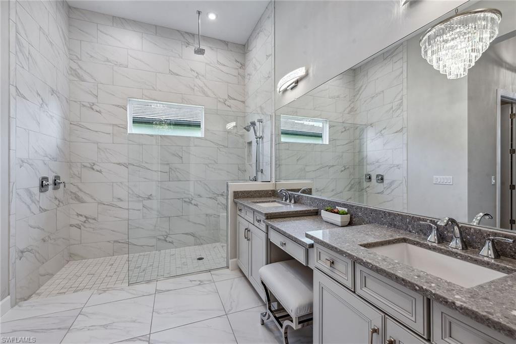 This stunning modern single-family home, showcasing the sought-after Lincoln floor plan, is better than new and offered turnkey with exquisite decorator furnishings, featured in TV commercials for the award-winning designer. Built in 2021, this fantastic 3-bedroom plus study, 3. 5-bath home with a 3-car garage showcases spectacular lakefront sunsets and includes all features on a buyer’s dream checklist, capturing serene western lake views and luxurious living in the highly desired Oyster Harbor neighborhood in Fiddler’s Creek. The open-concept design is filled with natural light from expansive windows, a double glass-door entry, and elegant custom lighting. Volume and tray ceilings enhance the sense of space, while rich hardwood floors underscore the home’s contemporary aesthetic. The gourmet kitchen is a showpiece with upgraded shaker cabinetry, quartz countertops, mosaic tile backsplash, under-cabinet lighting, a walk-in pantry, and a large center island with breakfast bar seating. Stainless steel appliances include a wall oven, wine cooler, and 5-burner natural gas cooktop with hood and pot filler. A living room wet bar, beverage refrigerator and wine cooler make entertaining seamless. The private owner’s suite is a retreat, with bay windows, custom drapery, dual walk-in closets with built-ins, and a spa-like bath, featuring a dual vanity with makeup counter, frameless walk-in shower with multiple rainfall showerheads, and floor-to-ceiling tile. Two spacious guest suites each offer en-suite baths with quartz vanities and frameless walk-in showers. A French-door den provides the ideal office or study, while the laundry room includes custom cabinetry, sink, and GE front-load appliances. The lanai is designed as an outdoor sanctuary, with a heated pool, spa, and sun deck accented by glass water bowls, all set against a travertine deck and panoramic screen enclosure for uninterrupted lake and sunset views. A covered living area with a fireplace, mounted TV, and seating transitions seamlessly to the outdoor kitchen with bar seating, grill and hood, refrigerator, ice maker, sink, and a dramatic mosaic backsplash extending to the ceiling. Additional highlights include a Generac generator, surround sound system, reverse osmosis filtration, tankless water heater, and storm protection with shutters and motorized screens. Residents enjoy world-class amenities, including a fitness center with trainers and classes, active tennis and pickleball, bocce, resort-style pool with waterfalls and slides, spa services, casual and fine dining, and a vibrant social calendar. Miles of sidewalks for walking, running, or bicycling. Optional golf memberships are available with no wait at the recently renovated championship course and impressive brand-new clubhouse, along with optional beach and marina memberships for the ultimate Southwest Florida lifestyle. Convenient to beaches, parks, yacht clubs, boutiques, grocery stores, executive airport, and all area amenities.
