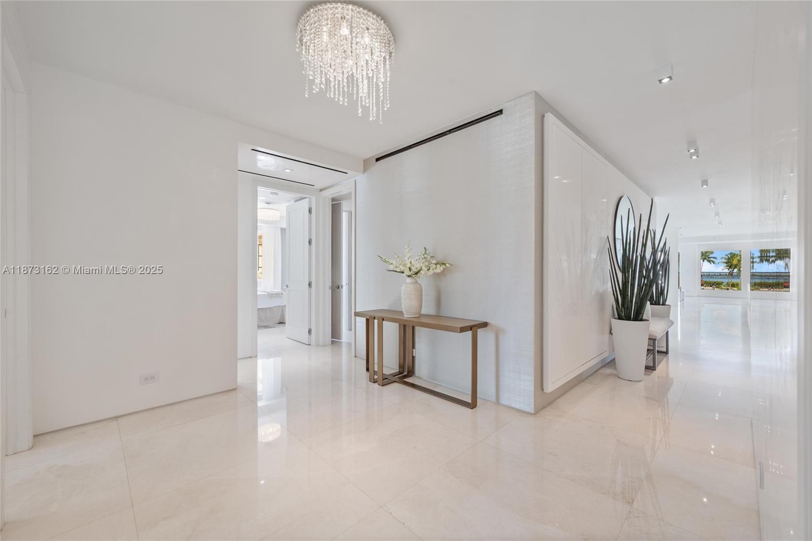 This stunning Oceanside unit on Fisher Island redefines luxury living at its finest. Completely renovated to perfection this masterpiece encompasses 3, 580 sq. ft. interior, 4 bedrooms + den, 3. 5 baths, wrap-around terraces overlooking the ocean, beach & golf course. Professionally designed with an open layout, state-of-the-art eat-in kitchen w/waterfall Calacatta marble counters & walls, Gaggenau & Miele appliances, separate kitchen room, custom built-in/entertainment, Osso marble floors and English oak wood floors, Venetian plastered walls, principal spa shower with chromo-light therapy, Ornare closets, impact glass doors, Savant Smart Home, Automation system w/audio-visual Stealth and more features. Live the Fisher Island lifestyle in this exceptional unit!
