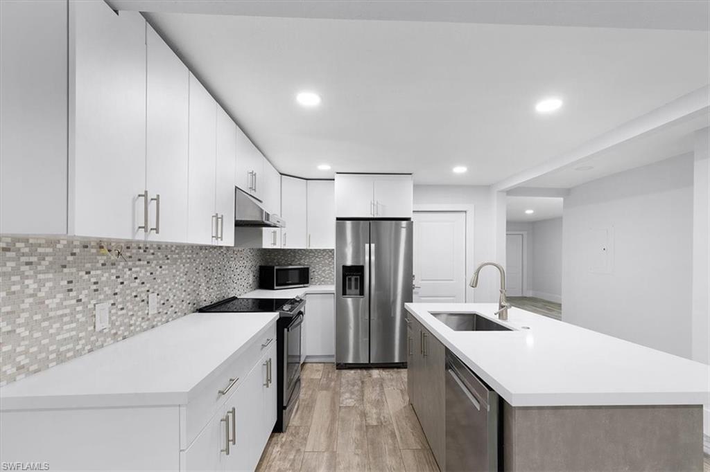 Price adjustment for quick sale. Waterfront Gem in Sought-After South Naples. Live the coastal lifestyle in this beautifully updated 3-bedroom, 2-bath canal-front home with indirect Gulf access—perfectly located just minutes from Naples’ world-famous beaches, shopping, dining, and vibrant downtown. Fully remodeled and move-in ready, this home offers peace of mind with a 2021 roof and hurricane-impact windows and doors. Inside, enjoy a light-filled, open layout featuring wood-look tile flooring throughout, a stylish island kitchen with granite countertops and wood cabinetry, stainless steel appliances and separate living and dining areas ideal for both relaxing and entertaining. The spacious primary suite includes an en-suite bathroom and access to an amazing, private backyard. Step outside to your private dock and oversized deck, perfect for morning coffee or sunset gatherings. The fully fenced yard provides privacy and plenty of space to add a pool, allowing you to create your own backyard retreat. A 1-car attached garage adds convenience, while the unbeatable location places you close to everything Naples has to offer. Ideal for the savvy investor looking for the perfect short or long term rental, or an owner wanting a chance to own a piece of paradise in Southwest Florida's highly desirable area of South Naples—Don’t miss it!