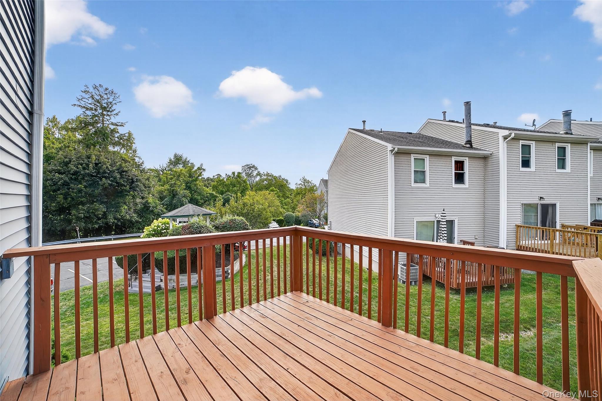 Welcome to this beautifully maintained and move-in-ready townhouse-style condo! The bright eat-in kitchen features granite countertops and a convenient pass-through window to the dining room - perfect for entertaining. The dining area flows seamlessly into the cozy living room, complete with a wood-burning fireplace and SGD that open to a private deck. A powder room on the main level adds convenience for guests. Upstairs, the primary bedroom boasts a primary bath with two spacious closets. The second bedroom also includes its own full bath with two closets, offering tons of storage. The finished lower level expands your living space and features SGD to the patio, a half bath, and the laundry area - ideal for a family room, home office, or guest space. Two assigned parking spaces plus visitor parking, Located in a desirable community with convenient access to local amenities: Metro North, tons of restaurants and shopping. This condo offers comfort, style, and functionality. Don’t miss your chance to call it home!