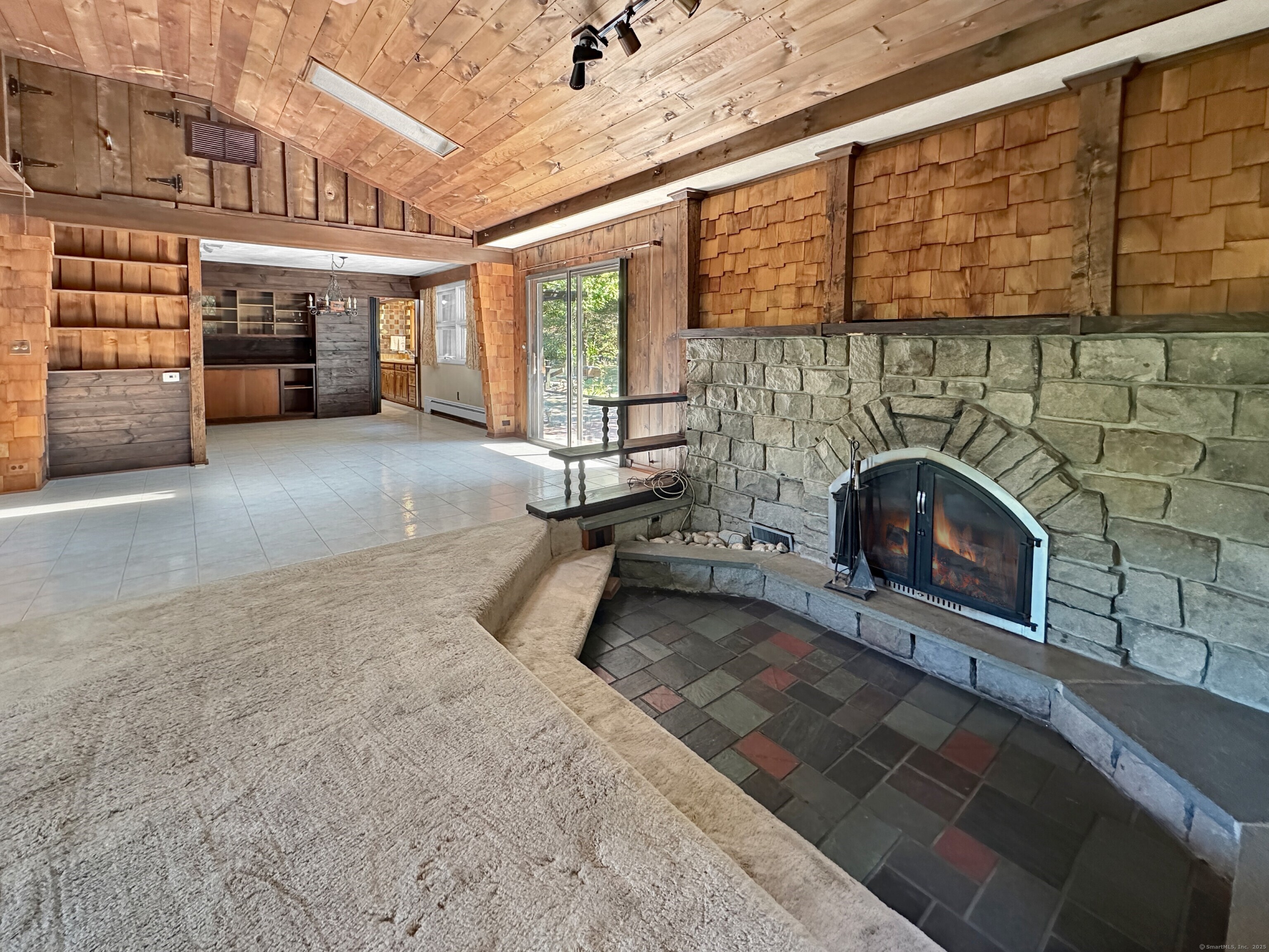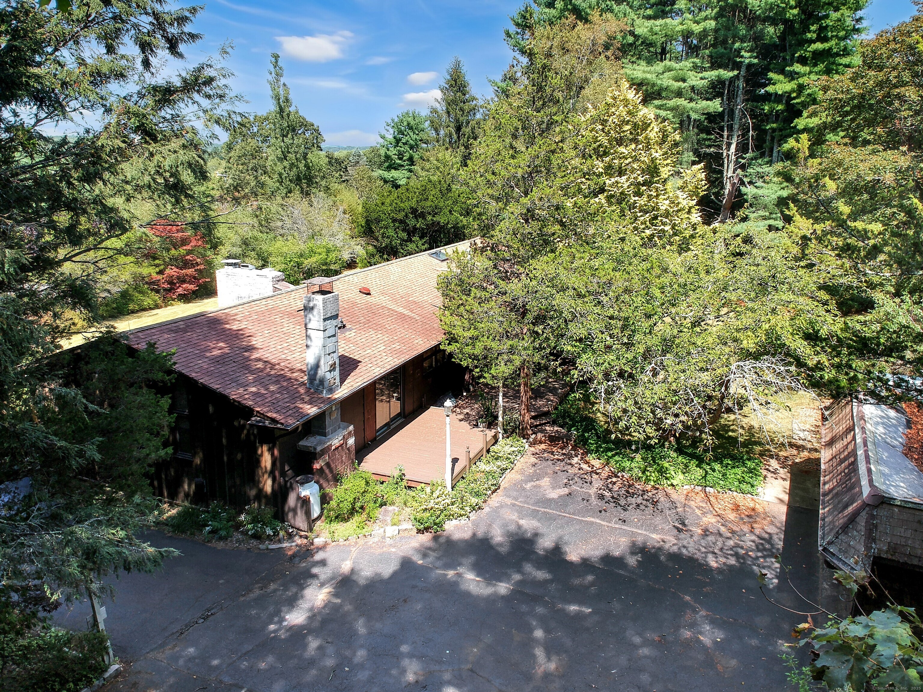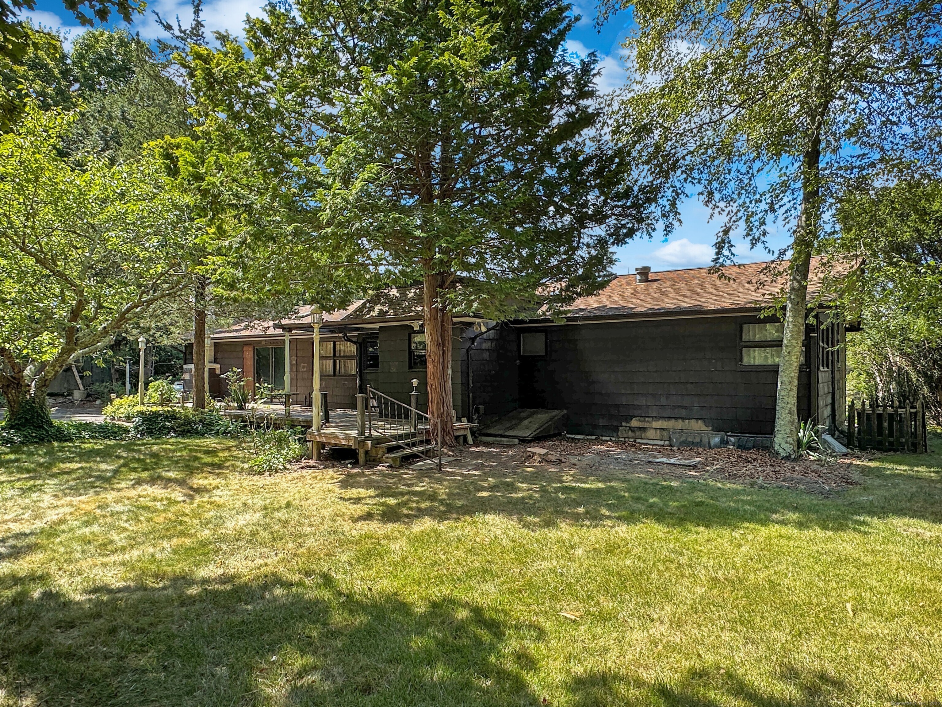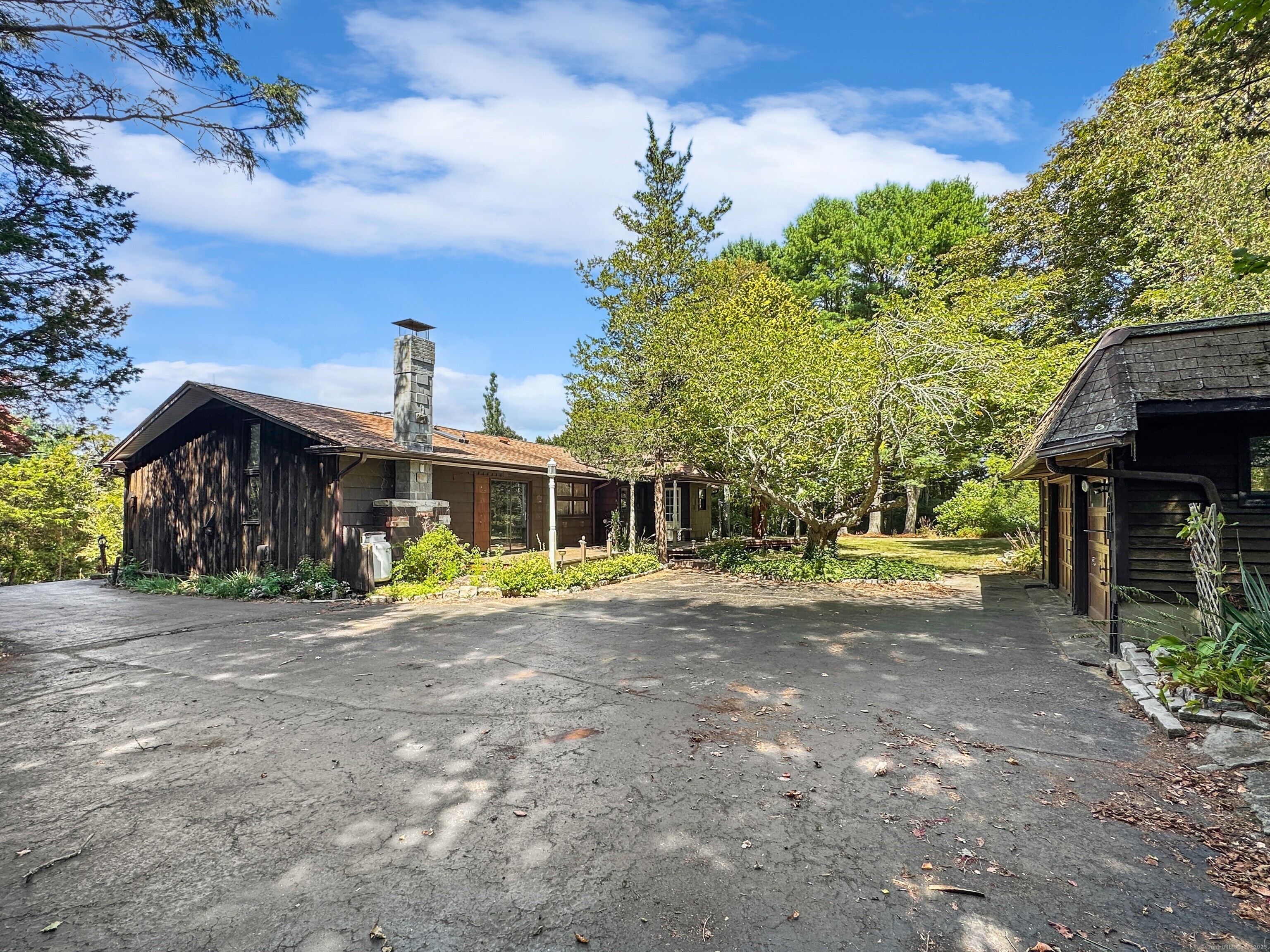 Take a 3D Tour 24/7 or Enjoy a Video Walkthrough 24/7! Nestled atop a private 1. 85-acre hilltop setting with no rear neighbors in sight, this 3 BR, 2 Bath Ranch offers 1, 888 SF of main level living space plus 743 SF of heated, partially finished basement-perfect for a future Rec Room or Home Gym. The spacious Family room features vaulted wood ceilings, exposed beams, and a floor-to-ceiling stone fireplace that anchors the open-concept layout, flowing seamlessly into the Dining room. The Kitchen offers ample cabinetry and a retro vibe ready for your HGTV updates. The primary Bedroom and two additional Bedrooms share the 1st floor Bathroom. Bath 2 is in the Lower Level. This home features central air and oil-fired BBHW heating, as well as a surprisingly dry basement for a home of its vintage. The detached 2-car garage/workshop provides bonus space for hobbyists, storage, or a home-based business. A dedicated mudroom with Laundry adds convenience. Enjoy the peaceful rural setting while benefiting from quick access to I-95, I-395, and Rte 2 via the nearby Flanders area and the schools and shopping nearby. This is a unique opportunity to own a well-built, character-rich home with room to modernize and build equity. Schedule your showing TODAY!
