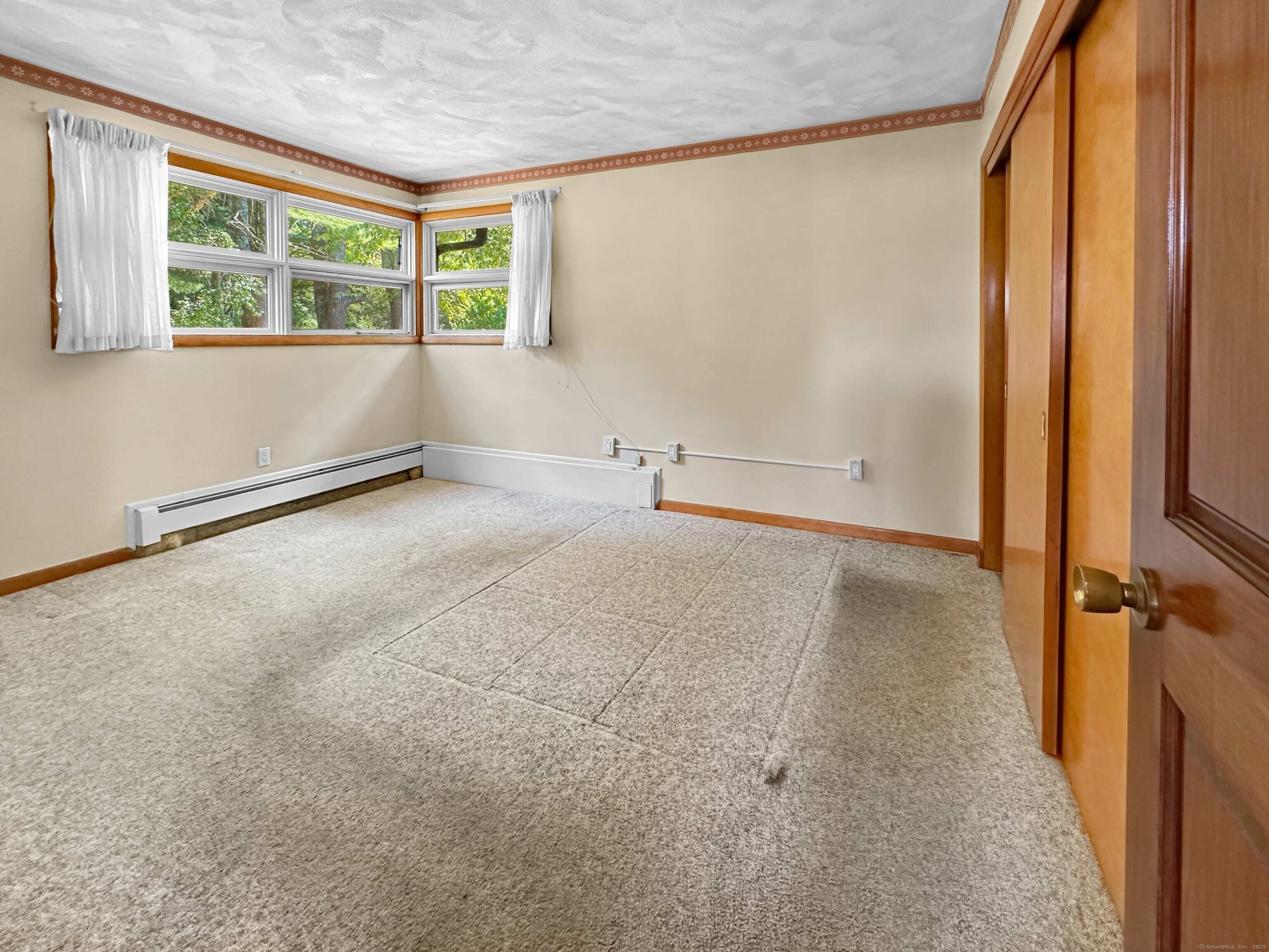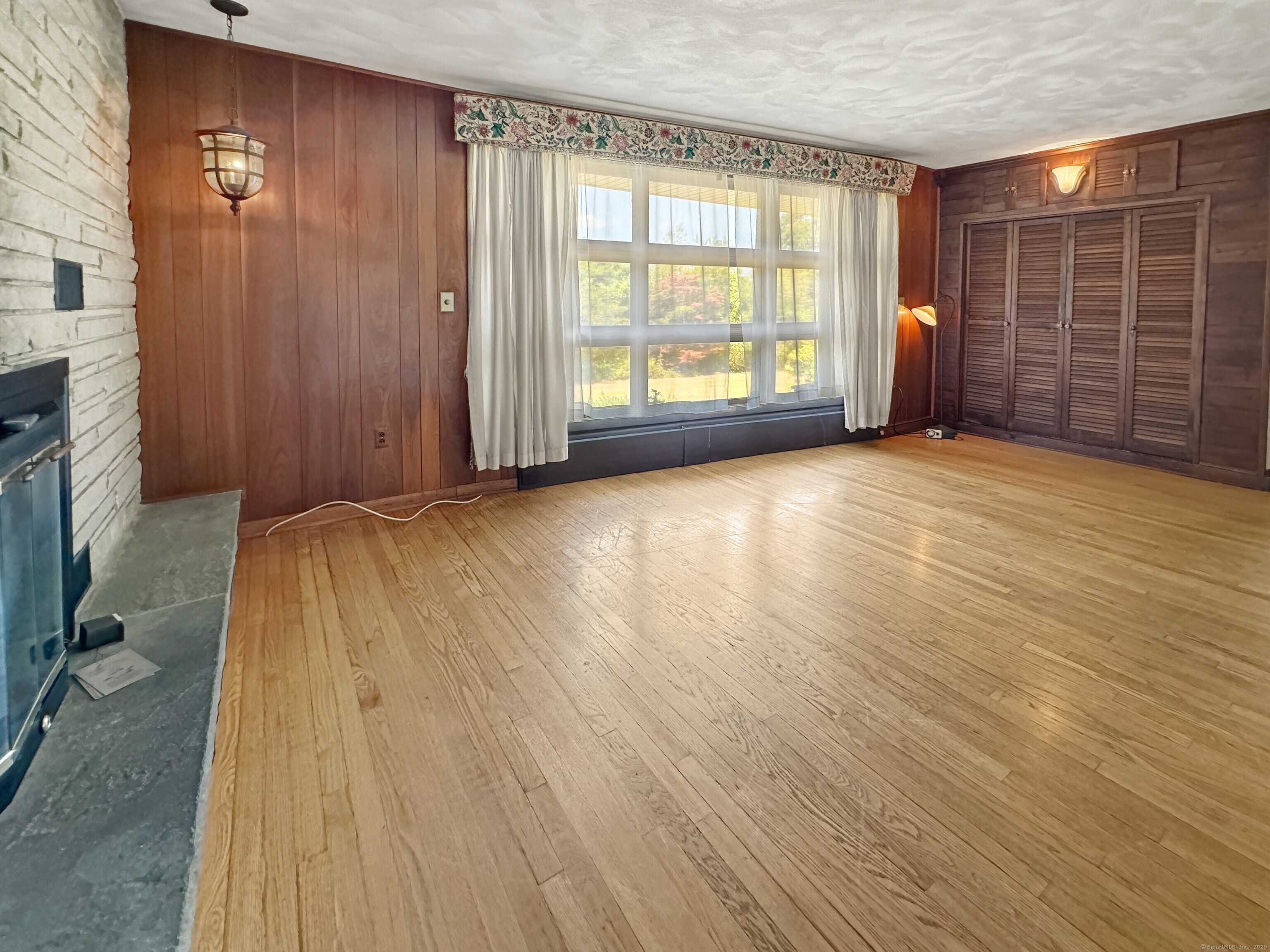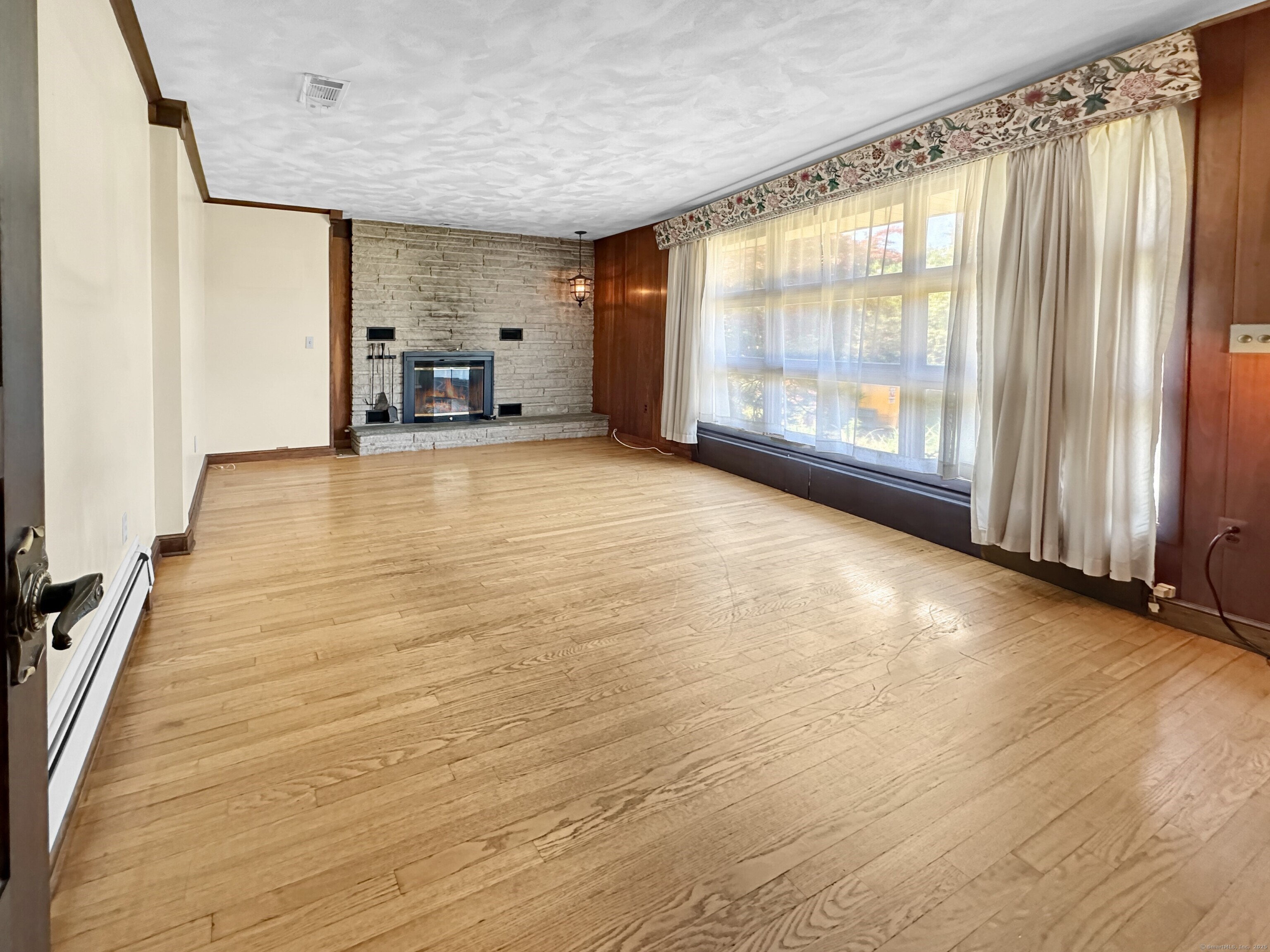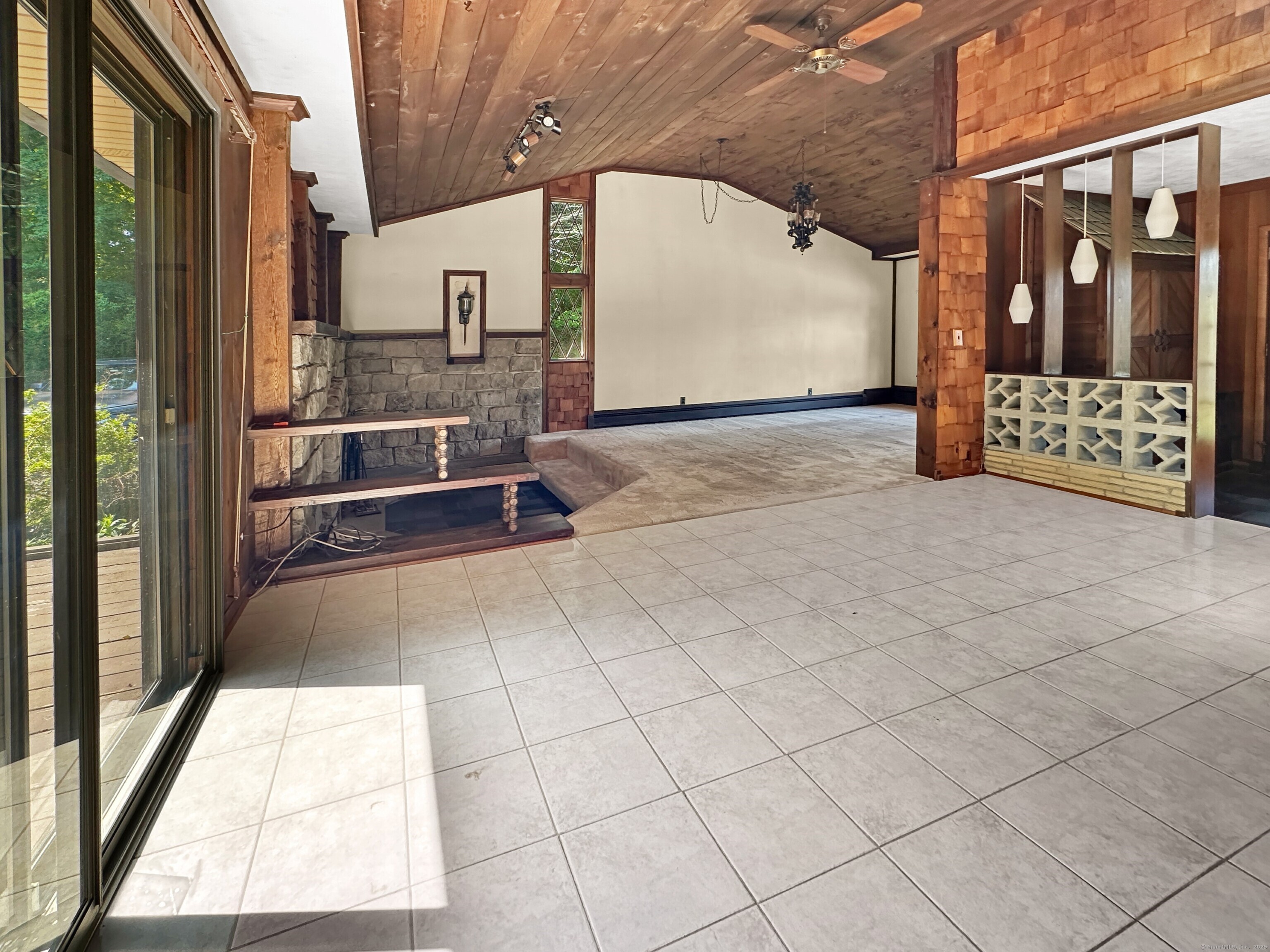 Take a 3D Tour 24/7 or Enjoy a Video Walkthrough 24/7! Nestled atop a private 1. 85-acre hilltop setting with no rear neighbors in sight, this 3 BR, 2 Bath Ranch offers 1, 888 SF of main level living space plus 743 SF of heated, partially finished basement-perfect for a future Rec Room or Home Gym. The spacious Family room features vaulted wood ceilings, exposed beams, and a floor-to-ceiling stone fireplace that anchors the open-concept layout, flowing seamlessly into the Dining room. The Kitchen offers ample cabinetry and a retro vibe ready for your HGTV updates. The primary Bedroom and two additional Bedrooms share the 1st floor Bathroom. Bath 2 is in the Lower Level. This home features central air and oil-fired BBHW heating, as well as a surprisingly dry basement for a home of its vintage. The detached 2-car garage/workshop provides bonus space for hobbyists, storage, or a home-based business. A dedicated mudroom with Laundry adds convenience. Enjoy the peaceful rural setting while benefiting from quick access to I-95, I-395, and Rte 2 via the nearby Flanders area and the schools and shopping nearby. This is a unique opportunity to own a well-built, character-rich home with room to modernize and build equity. Schedule your showing TODAY!