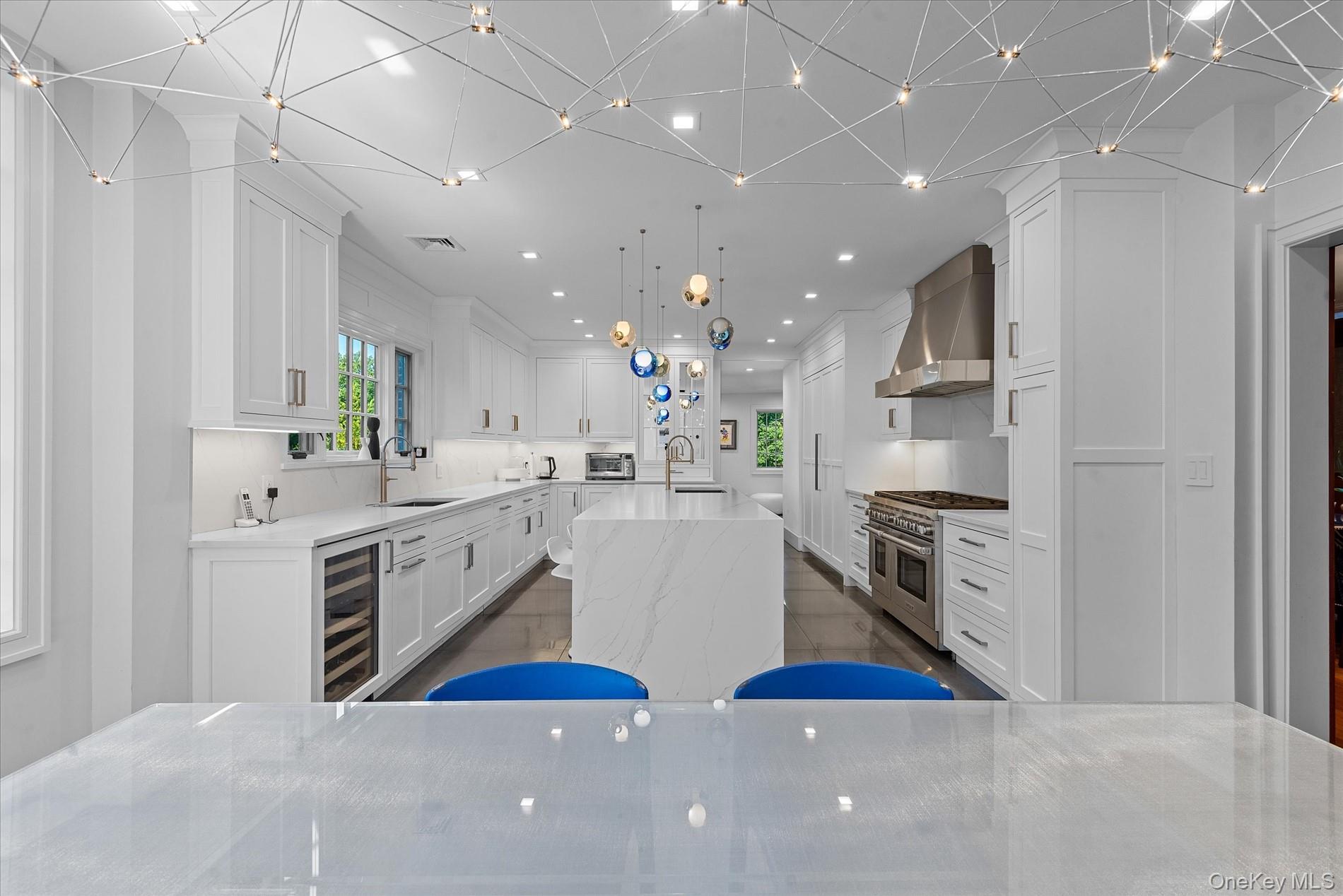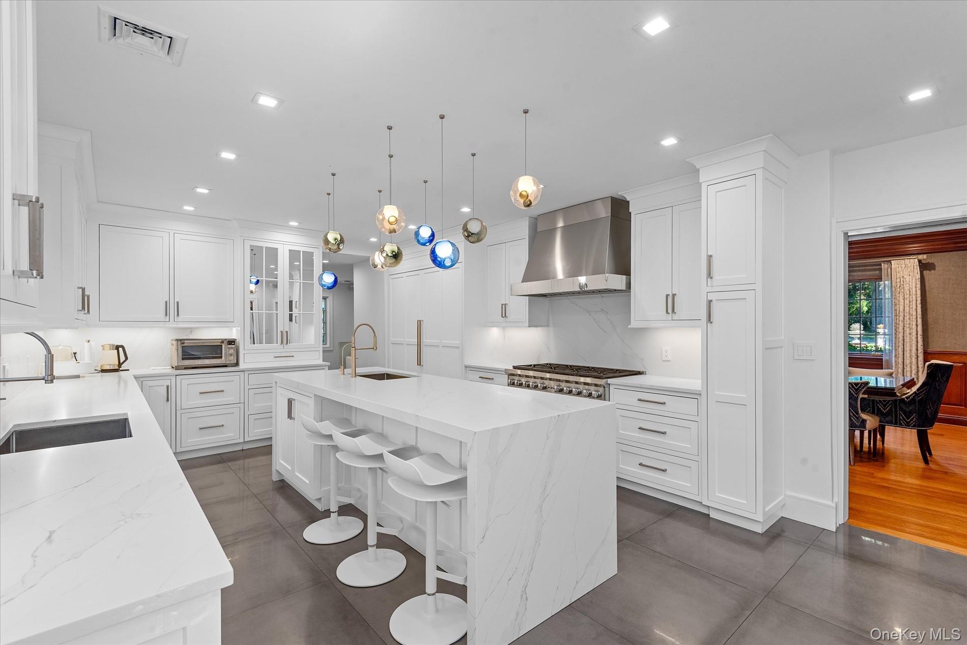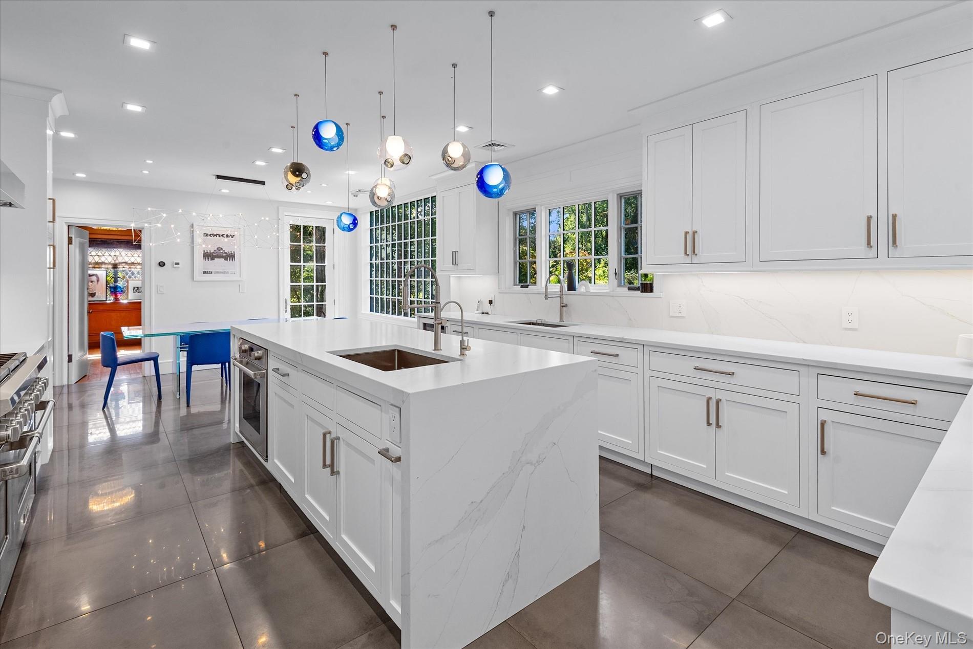 Step into timeless elegance with this one-of-a-kind Tudor residence, perfectly situated in the highly coveted gated community of Kennilworth in Kings Point. This home has been thoughtfully and meticulously restored and renovated, combining the architectural charm and craftsmanship of a bygone era with today’s most sought-after modern luxuries. The first floor showcases a grand entry foyer, expansive entertaining rooms, including an oversized living room bathed in natural light, a formal dining room ideal for gatherings, and a grand family room anchored by a striking stone fireplace and a wood panelled library. The centerpiece of the main level is the brand-new, state-of-the-art chef’s kitchen, designed with premium finishes, high-end appliances, and abundant workspace—truly a dream for any culinary enthusiast. A private office/bedroom with full bath and an elegant powder room complete the main floor. Upstairs, the home continues to impress with its airy and spacious layout. The oversized primary suite offers a serene retreat with a luxurious en-suite bath. Three additional bedrooms, each generously sized, are accompanied by two more full baths, ensuring comfort and privacy for family and guests alike. The full finished lower level extends the living space, featuring a large playroom, maid’s quarters with full bath, laundry room, and ample storage. Outdoors, the lushly landscaped backyard provides a tranquil escape, with a verdant lawn and mature plantings creating the perfect setting for gatherings, al fresco dining, or quiet relaxation. Kennilworth residents enjoy access to a private waterfront pool and a manned security gate.