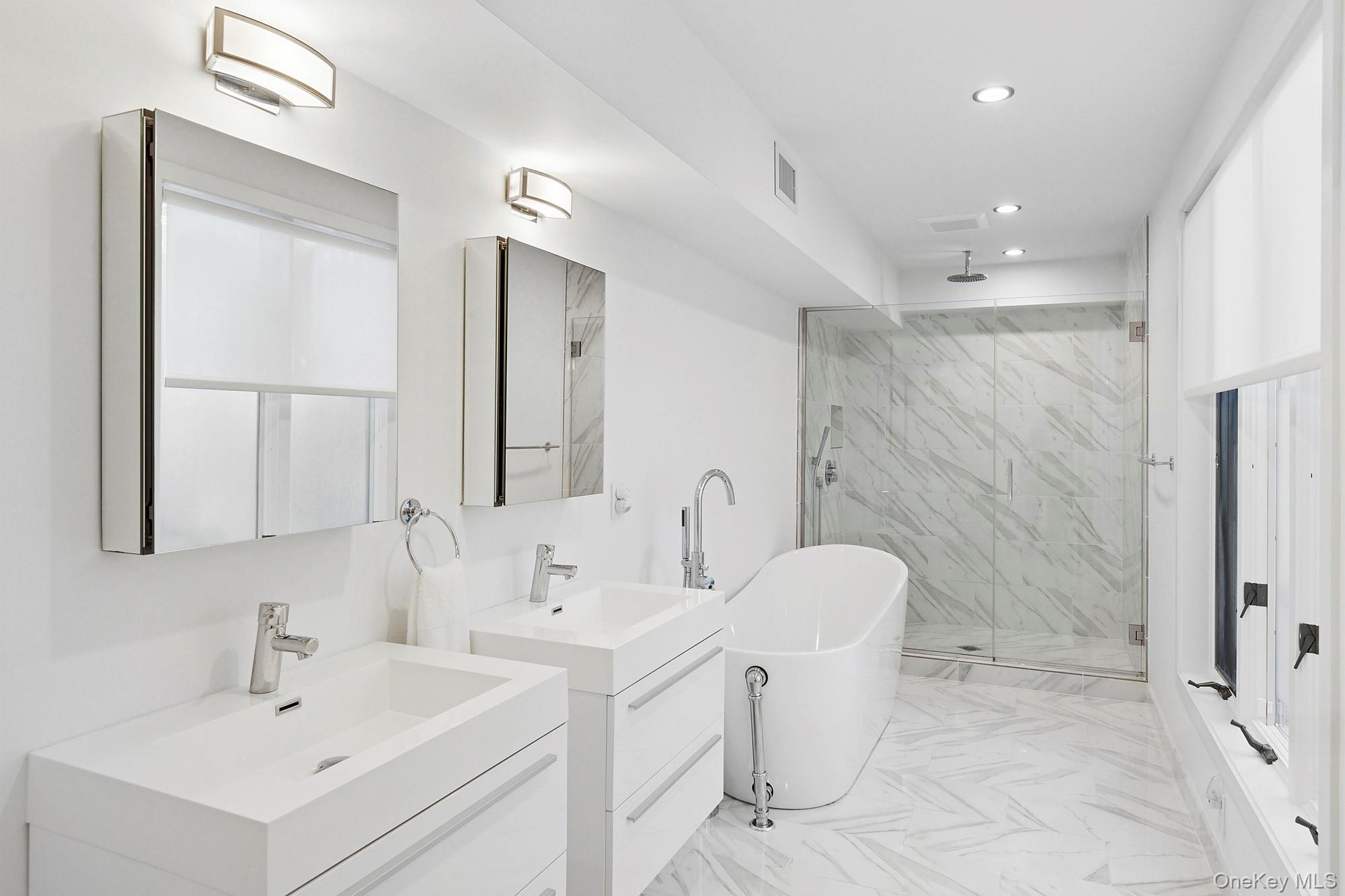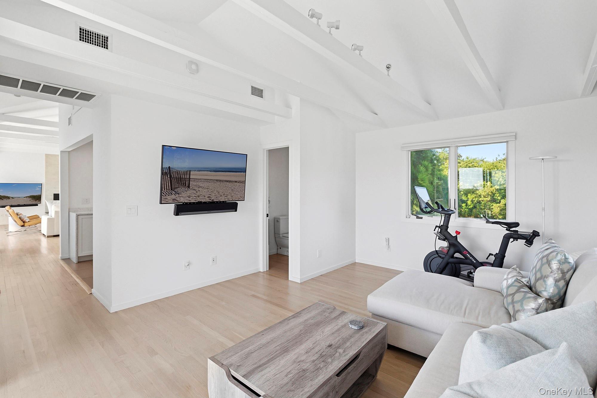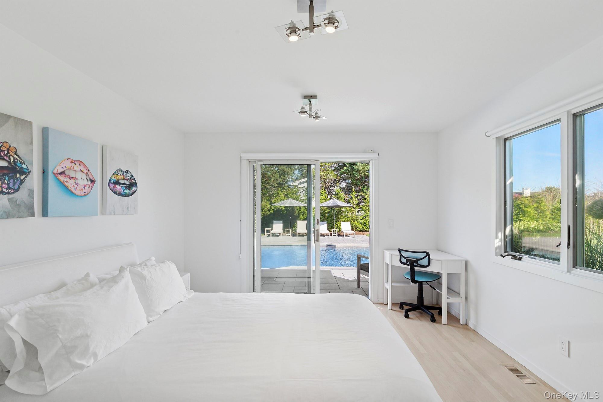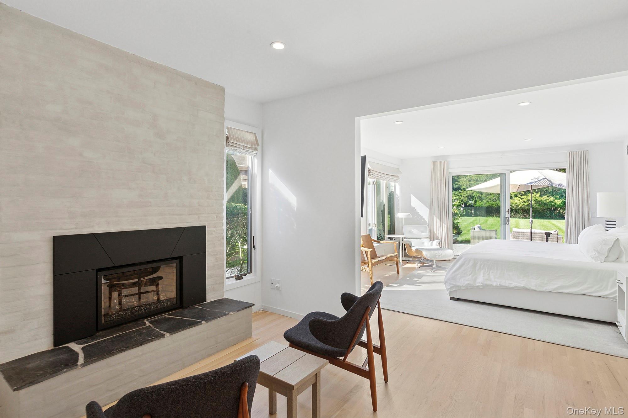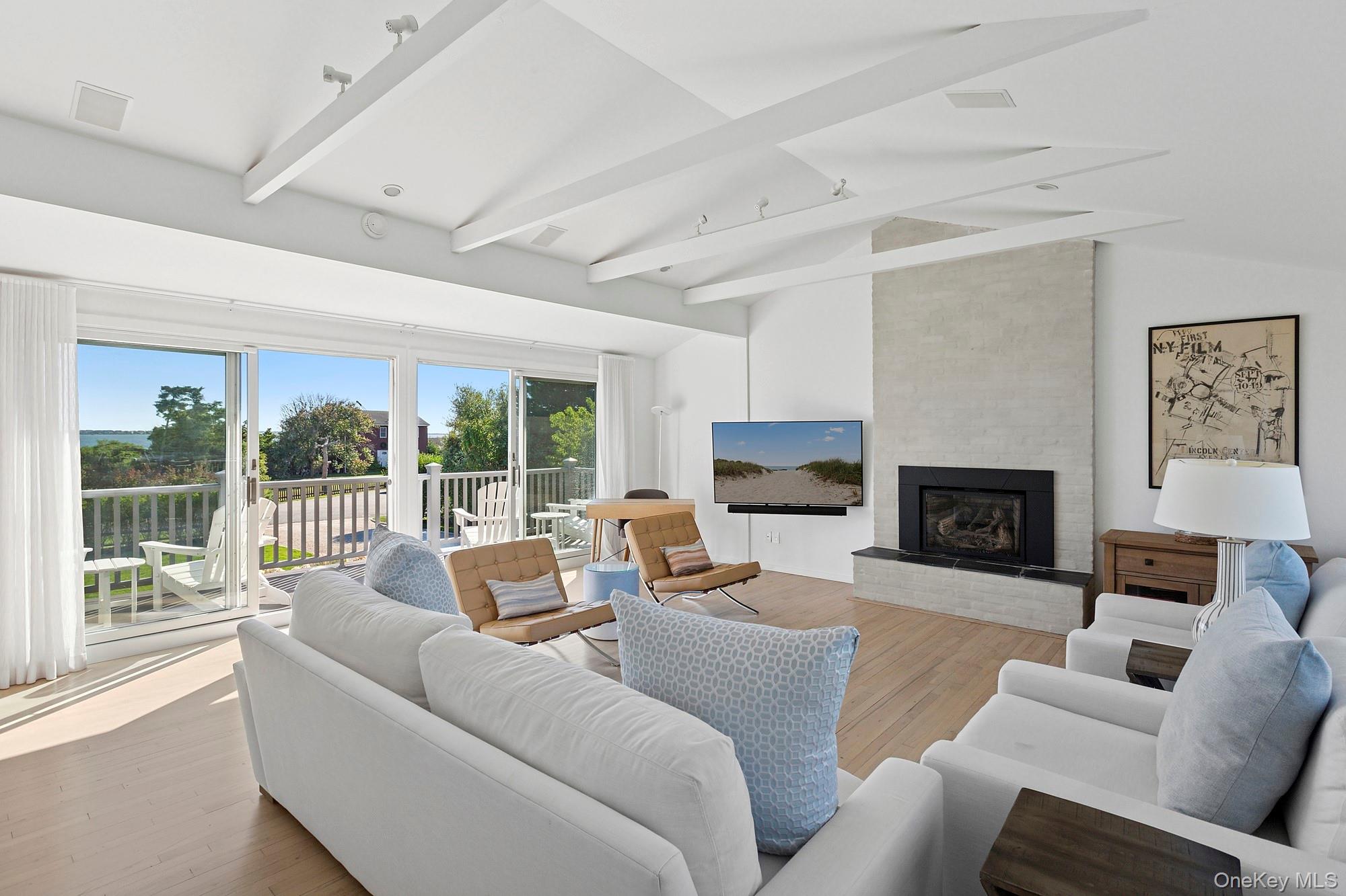 Nestled on a quiet cul-de-sac, south of the highway in the hamlet of Remsenburg, 4 Bayberry Lane offers the perfect balance of modern luxury and old-school Hamptons charm. Thoughtfully renovated in 2014-2015, this 4-bedroom, 3. 5-bath home spans 2, 410 square feet on just under an acre of beautifully landscaped grounds designed by Dragonfly Landscape Design. Inside, hardwood floors, recessed LED lighting, and smart features create a sophisticated yet comfortable atmosphere. In the aptly named "Upside Down House, " the first level hosts a serene primary suite complete with a gas fireplace, three closets, a spa-like bathroom with soaking tub, oversized glass shower, and double vanity, plus sliding glass doors leading to a private patio. Two additional bedrooms are ensuite, each with access to the pool patio through sliding glass doors, while the fourth bedroom-currently used as an office-shares a hall bath. Upstairs, the open living and dining spaces showcase water views, a gas-burning fireplace and access to two balconies and a rear deck. The renovated kitchen is replete with quartz countertops, Bosch stainless steel appliances, induction cooking, and a walk-in pantry. Outdoors, the freshly reimagined backyard is a rarely found oasis with a heated, 20' x 40' gunite pool, new pool heater and filter (2025), room for a pickle ball court, a built-in firepit with surrounding benches, and dedicated gas and electric lines for a future outdoor kitchen. Additional highlights include a detached two-car garage, gravel driveway with EV charger, new HVAC system (2025) with smart Honeywell thermostats, hardwired security system with cameras, and full irrigation. With beach rights to Rogers Beach and Lashley (Jetty 4) in Westhampton Beach Village and just 75 miles from Manhattan, this property offers access to all in a serene Hamptons setting.