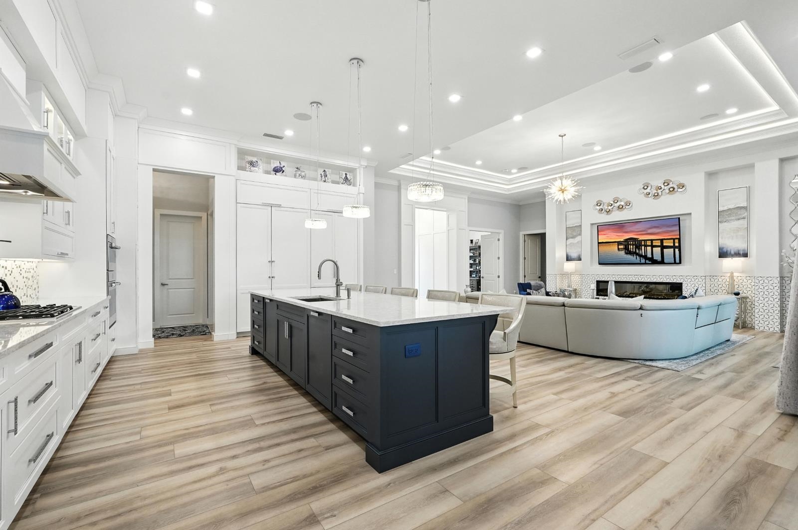 Step into the most exclusive community in Flagler County — Island Estates at Hammock Dunes! This private island enclave is a rare sanctuary where luxury, privacy, and the ultimate Florida lifestyle converge. Completed in 2022, this extraordinary estate is designed for those who dream of boating from their backyard, practicing golf on their own greens, and hosting unforgettable gatherings against a breathtaking waterfront backdrop. From the moment you pass through the double entry doors, sweeping views of the Intracoastal Waterway set the tone for the home's elegance. Every detail has been thoughtfully curated, and brought to life by master builder Charles Rinek. The open-concept floor plan showcases five bedrooms, four and a half baths, an office, and a private casita, blending expansive entertaining areas with serene private retreats.
